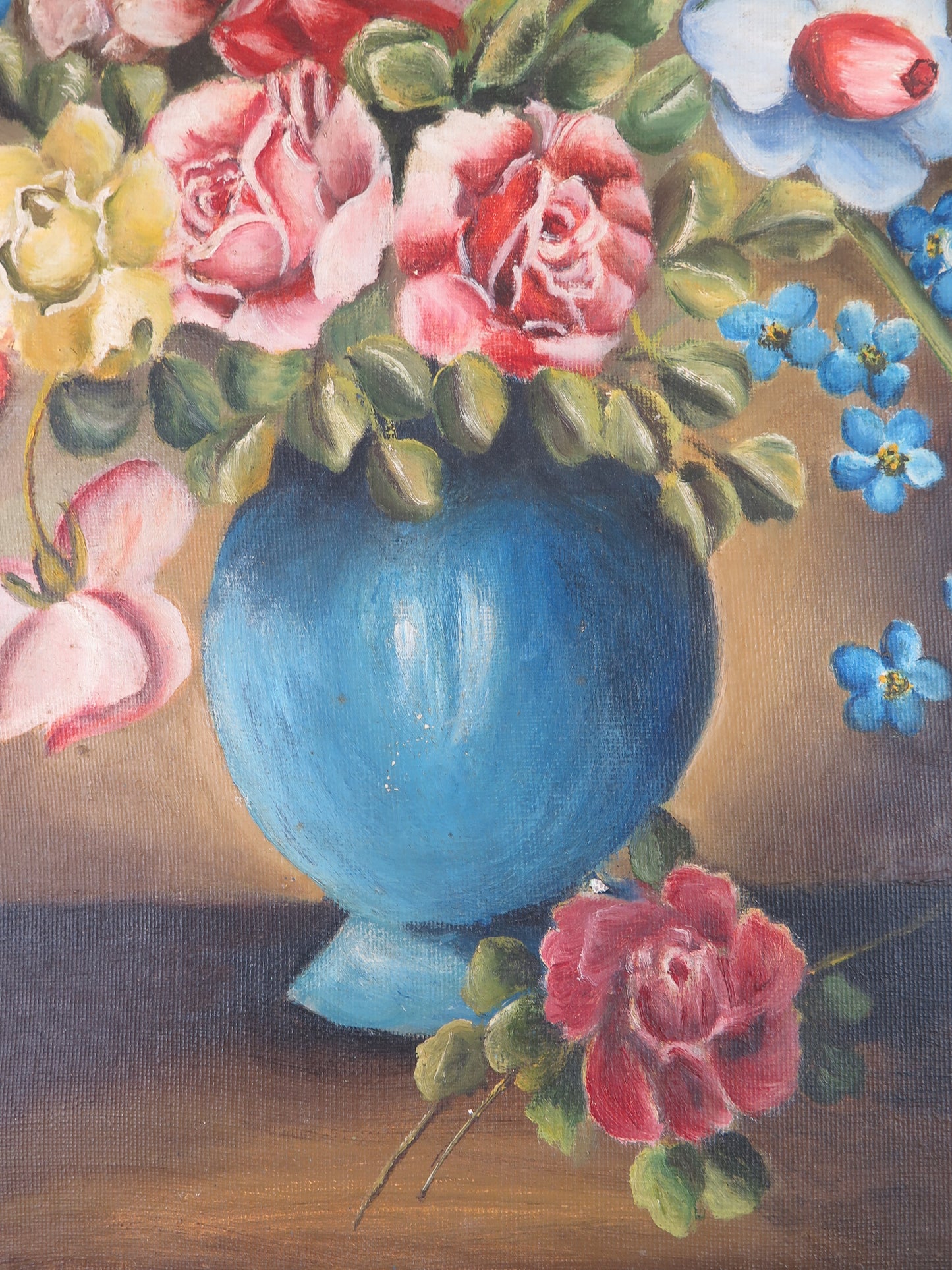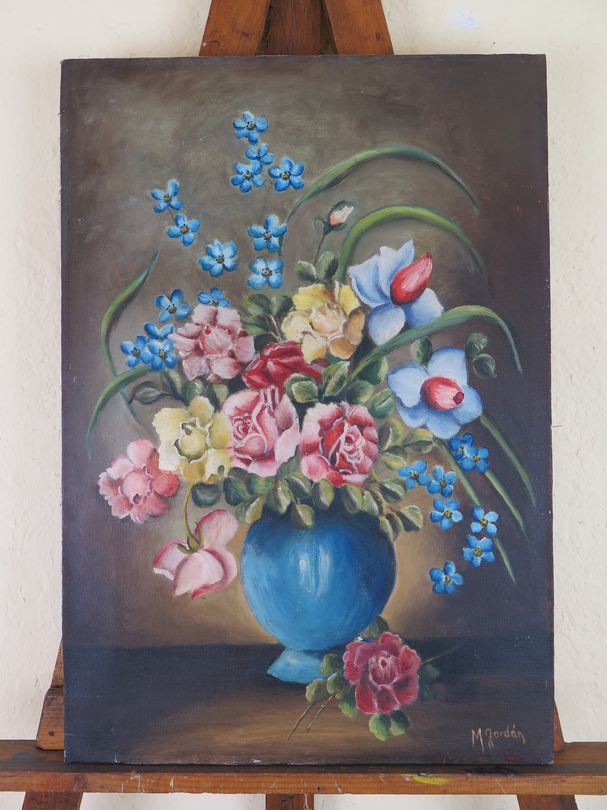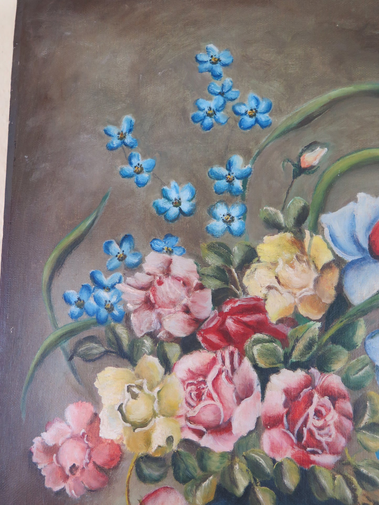 VECCHIO DIPINTO OLIO SU TELA FLOREALE FIORI FIRMATO SPAGNA METÀ 900 QUADRO MD13