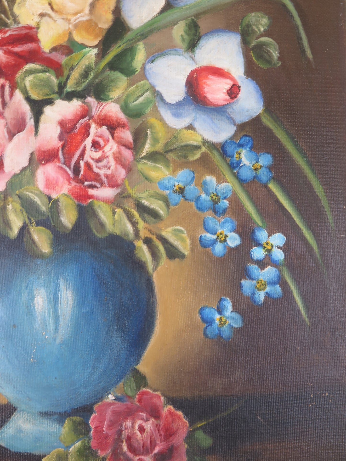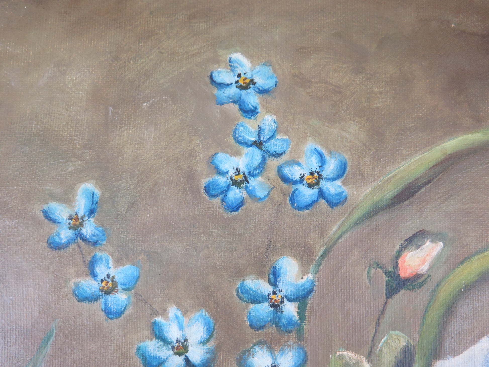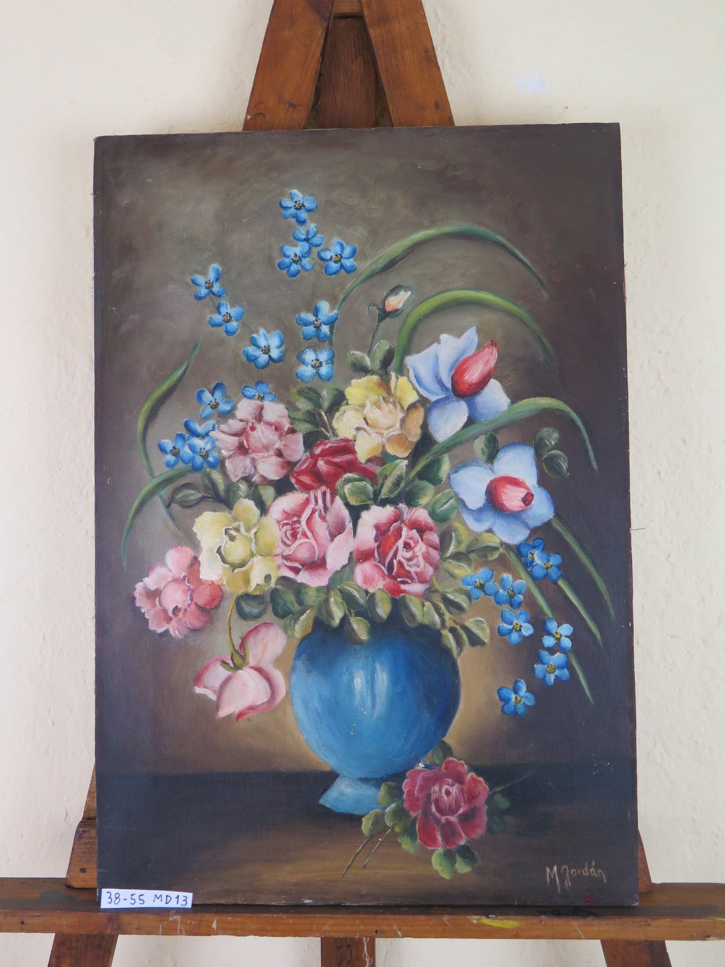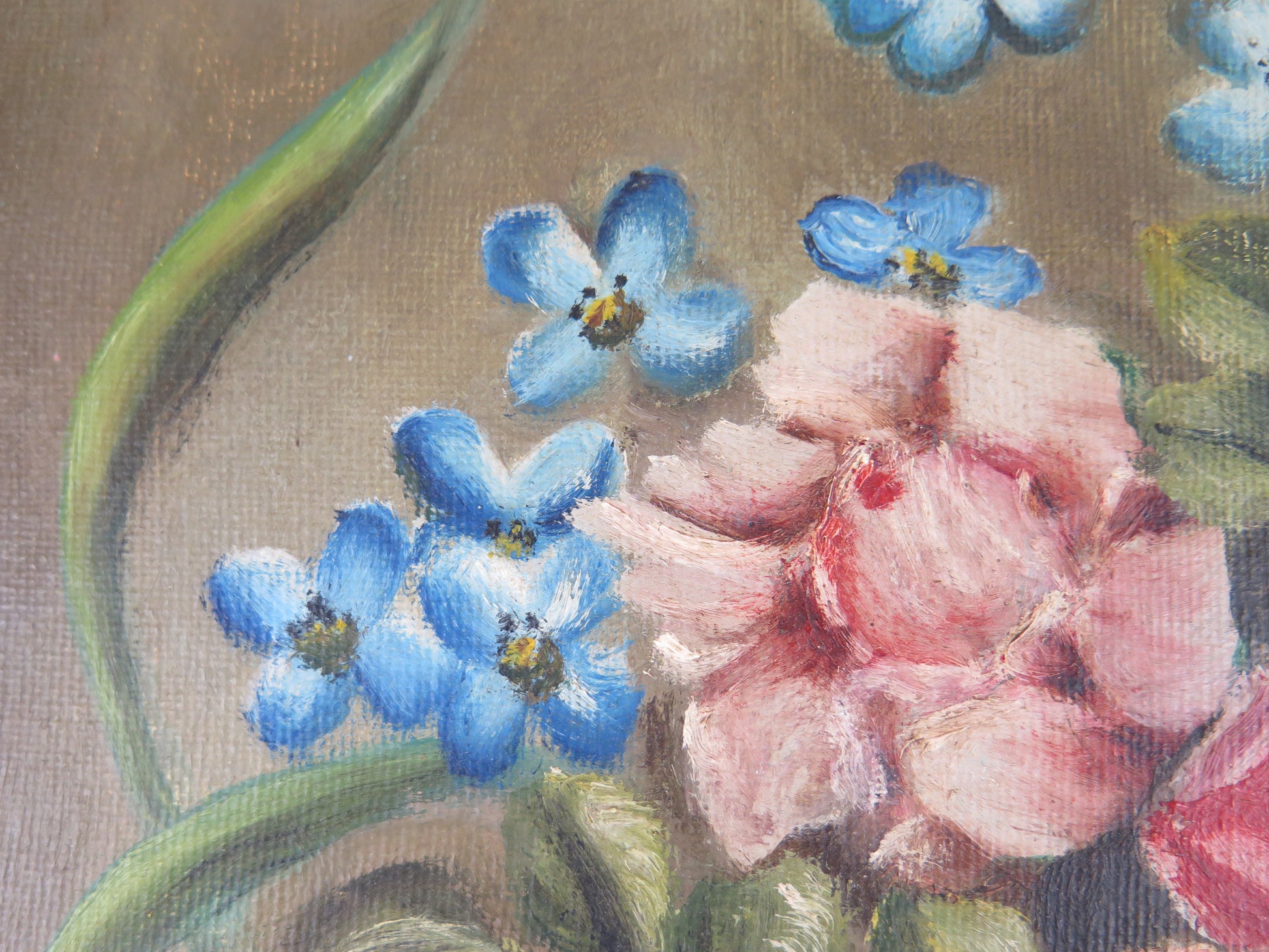 VECCHIO DIPINTO OLIO SU TELA FLOREALE FIORI FIRMATO SPAGNA METÀ 900 QUADRO MD13