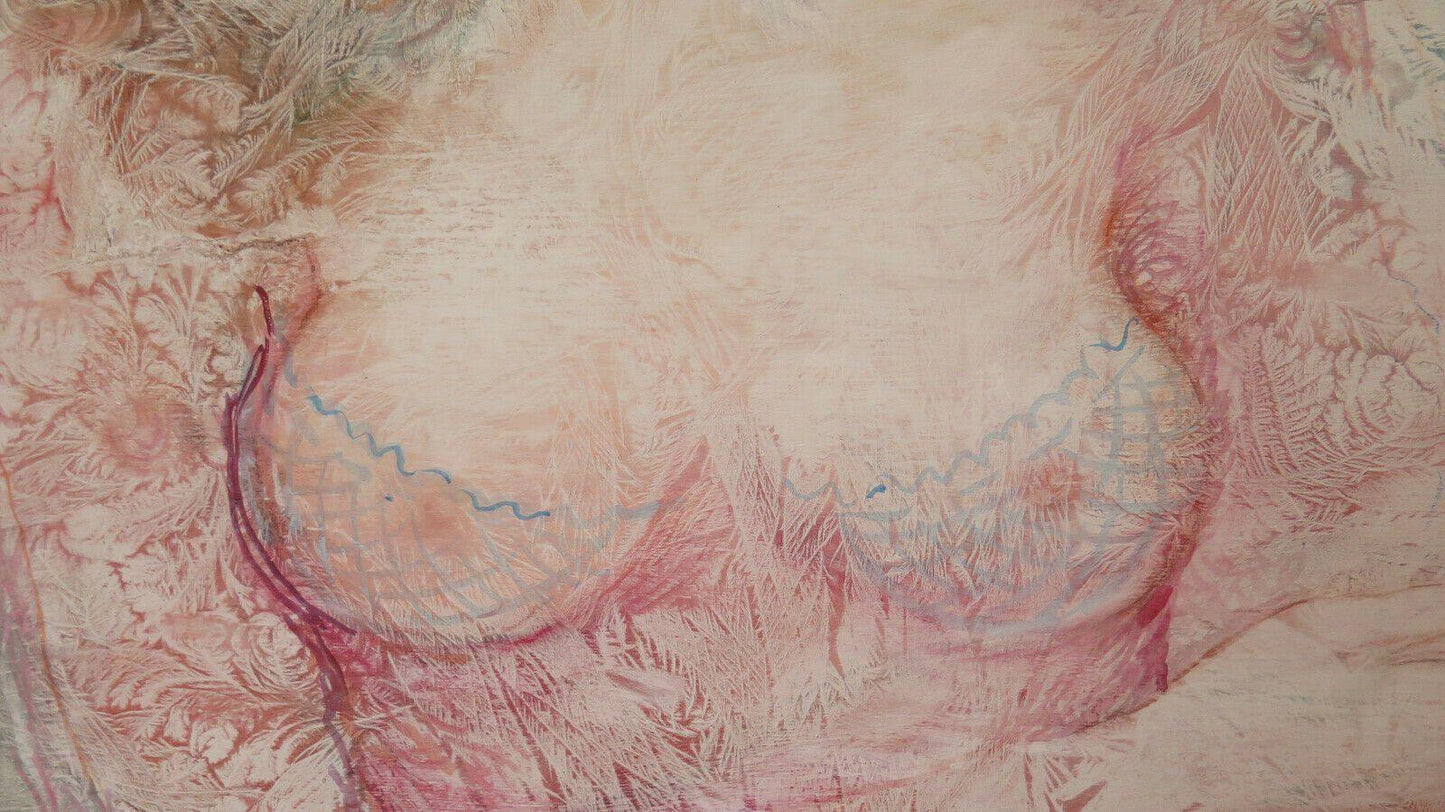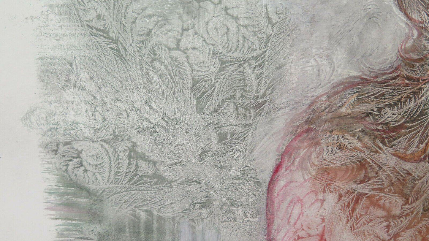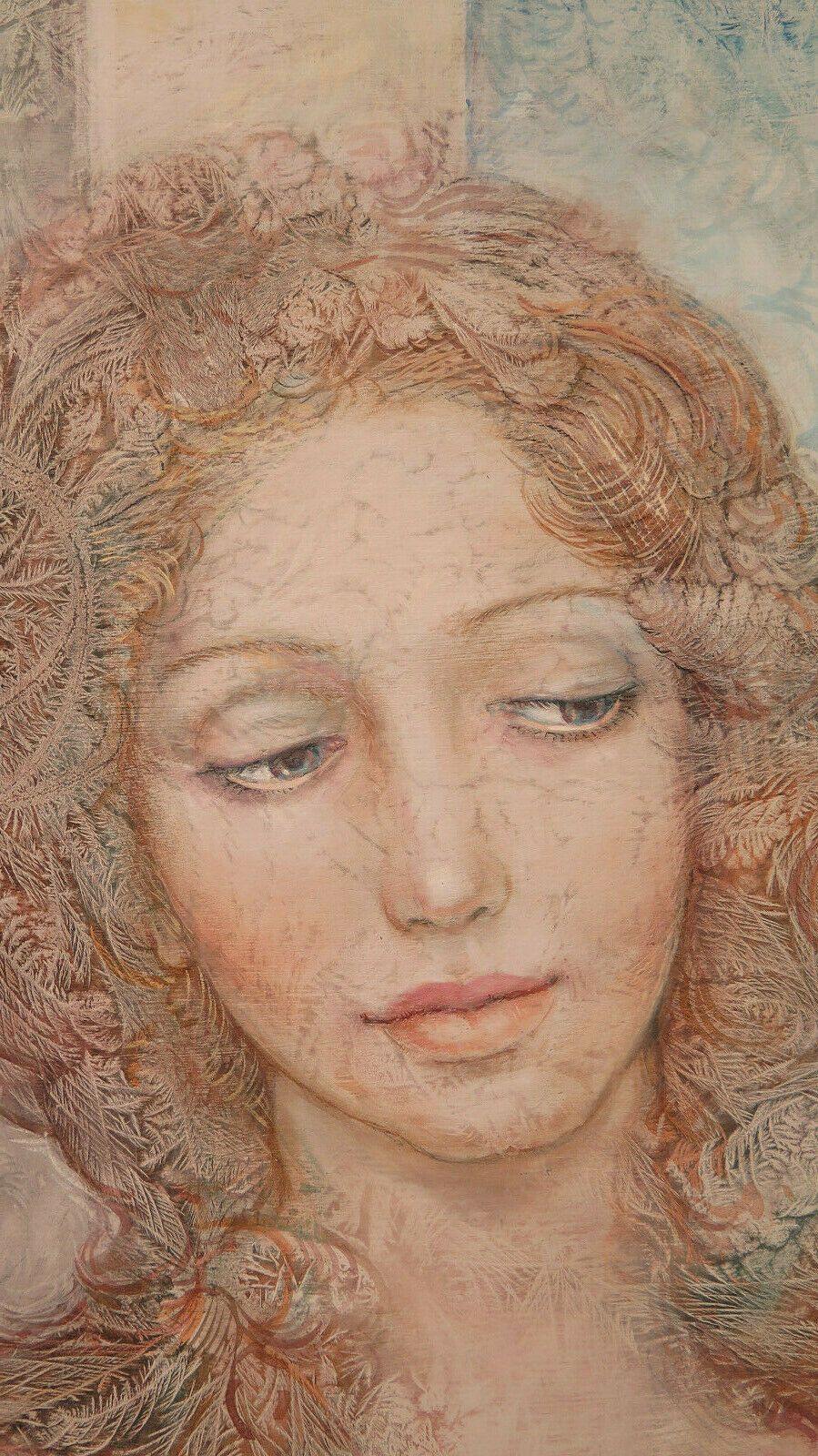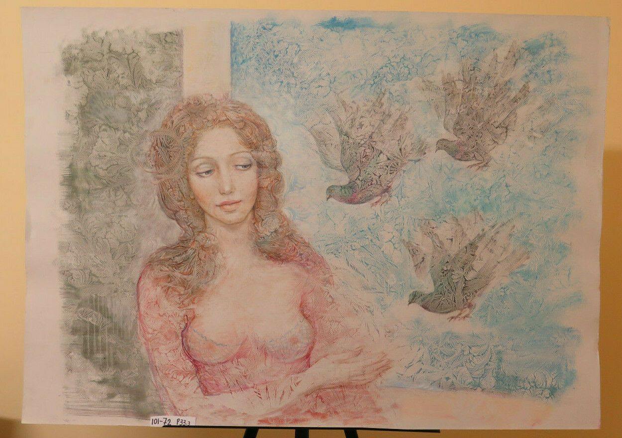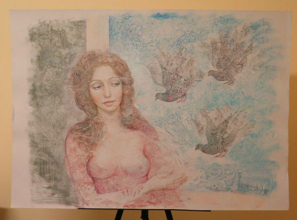 101x72 cm QUADRO DIPINTO AD ACQUERELLO CON TECNICA DEL GELO NUDO FEMMINILE P33.3