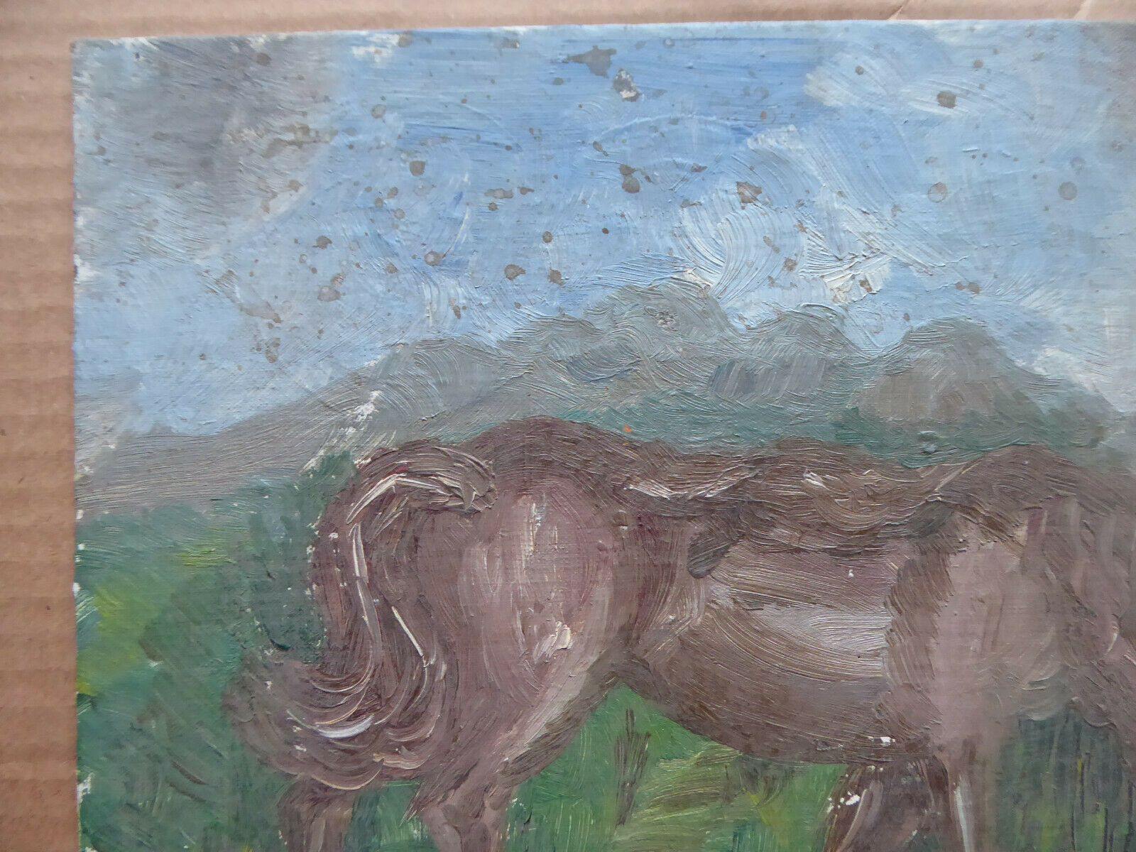 24x19cm QUADRO ANTICO PICCOLA MISURA CON CAVALLO SPAGNA PRIMA METÀ DEL 900 MD10
