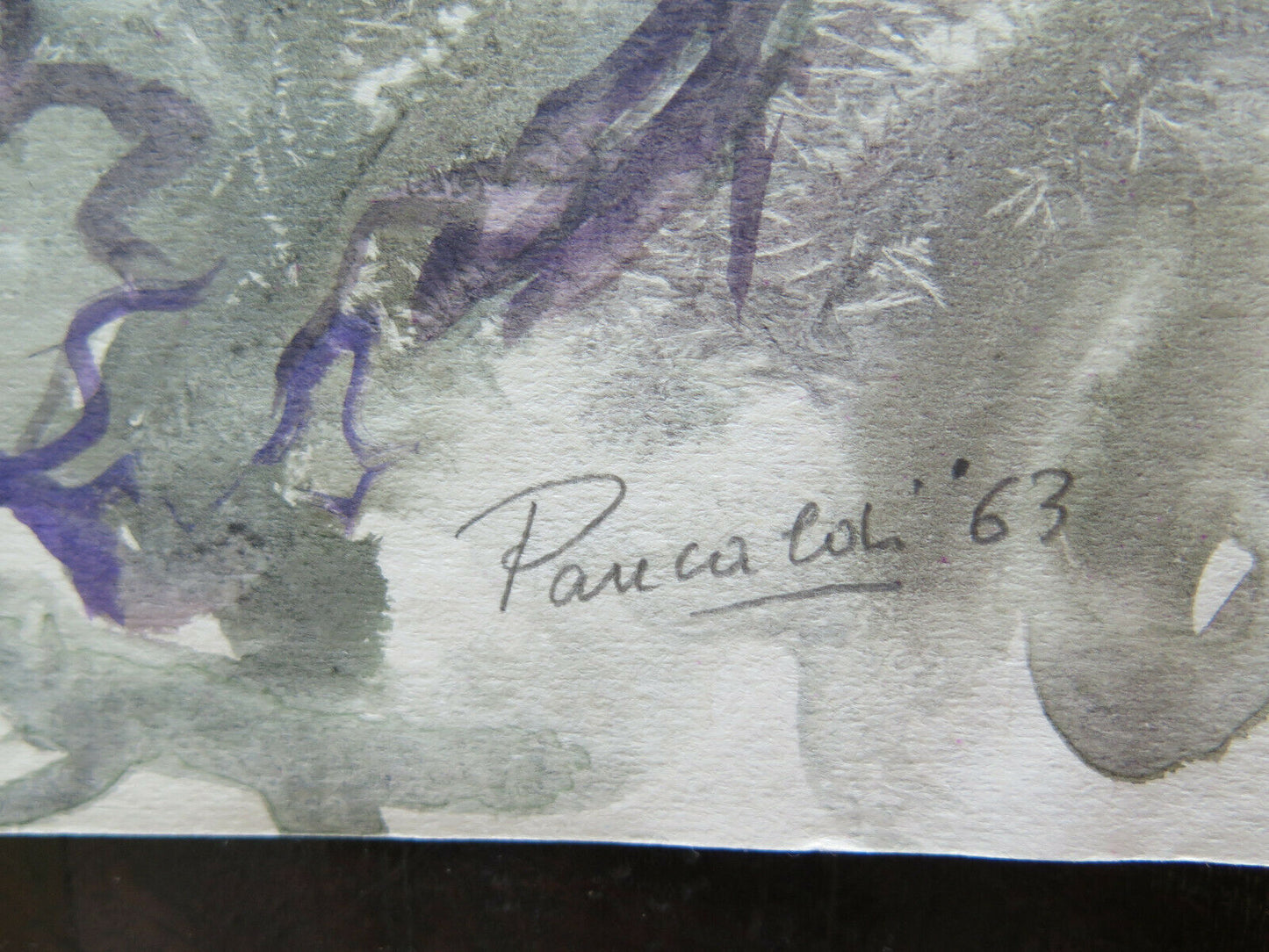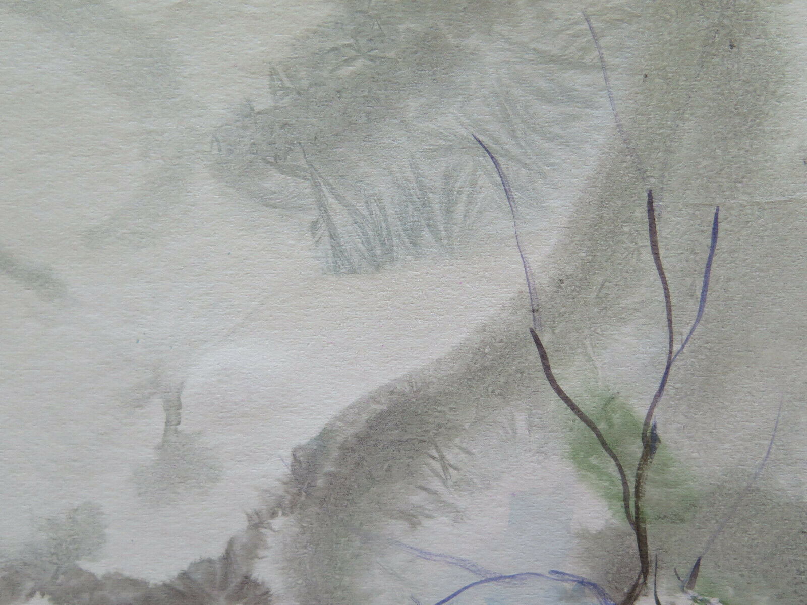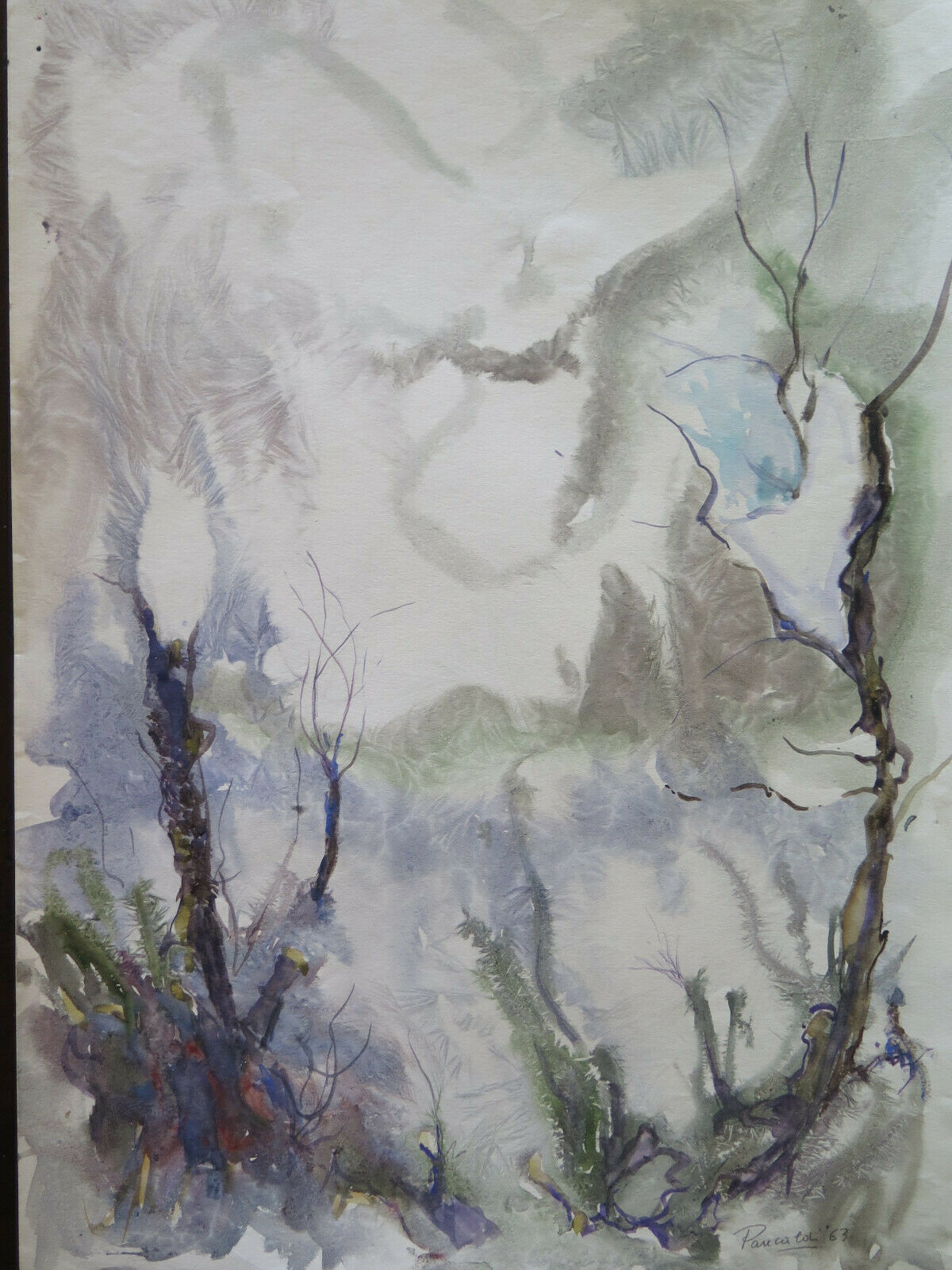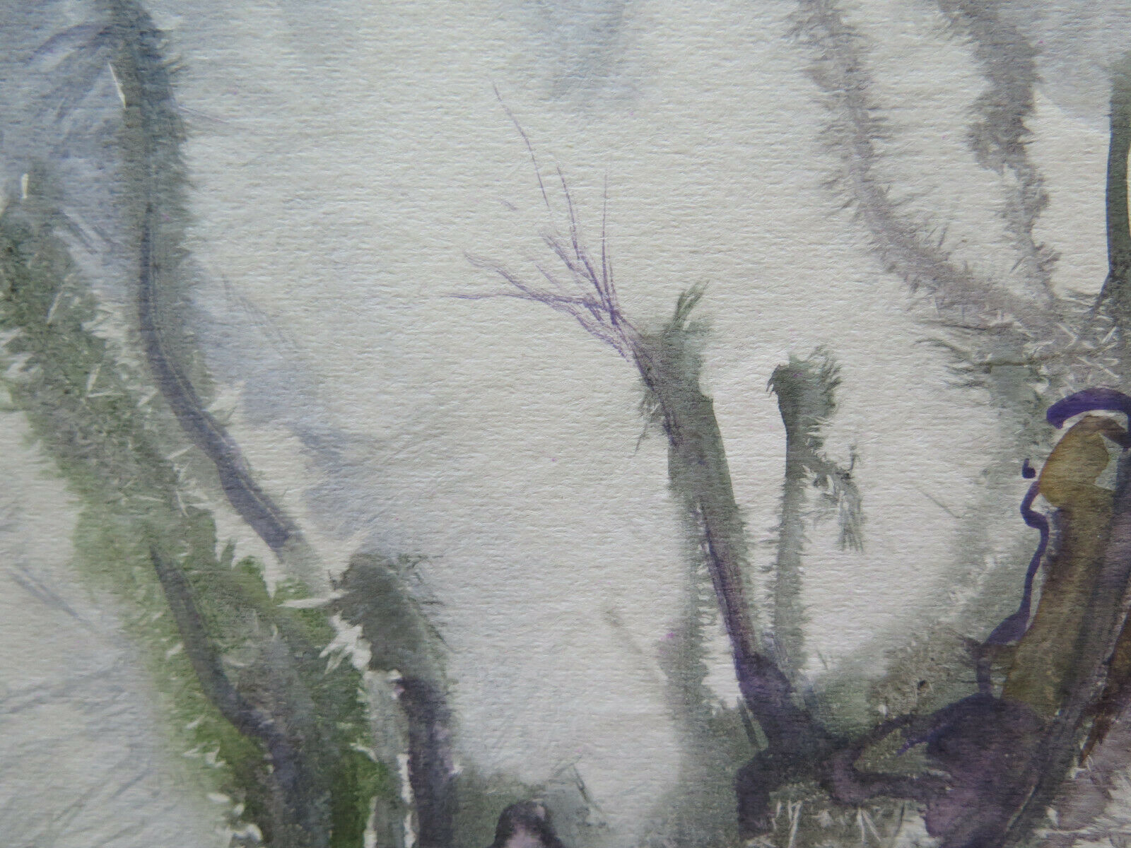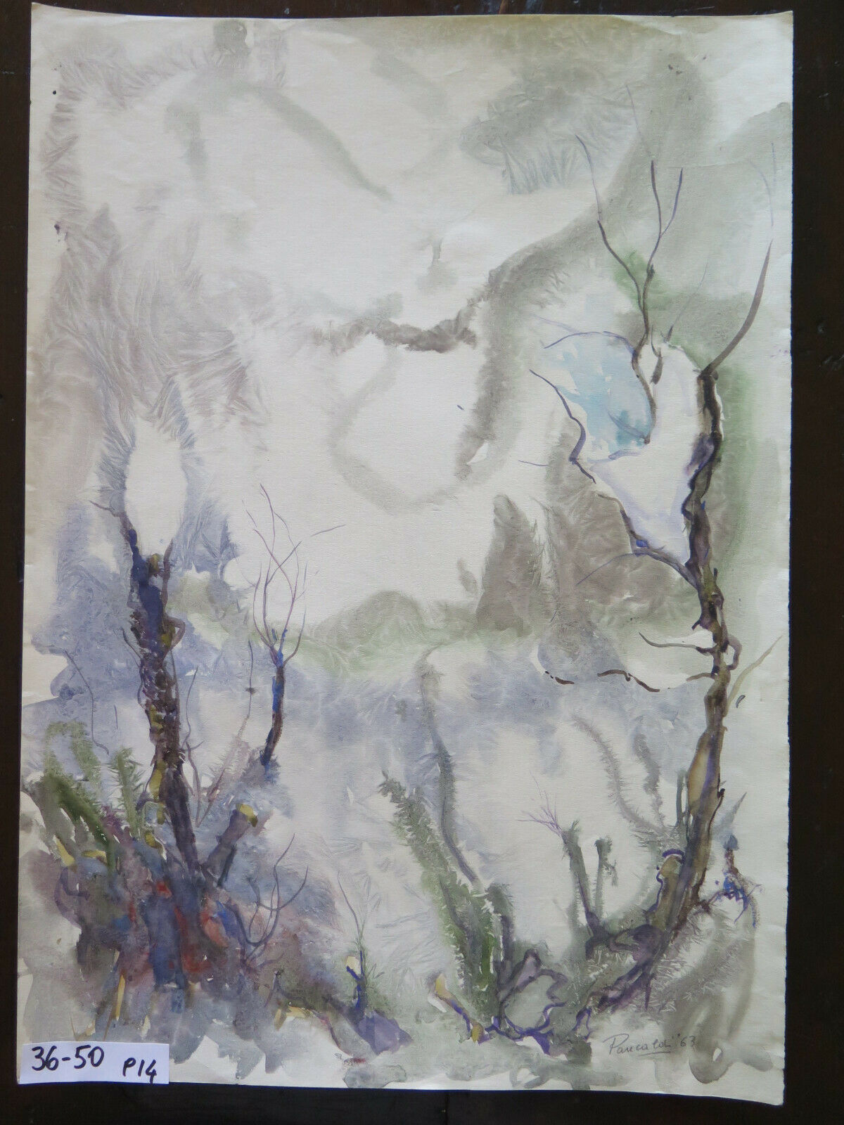 36x50 cm QUADRO PAESAGGIO ASTRATTO INNEVATO NEVE INVERNO DIPINTO ACQUERELLO P14
