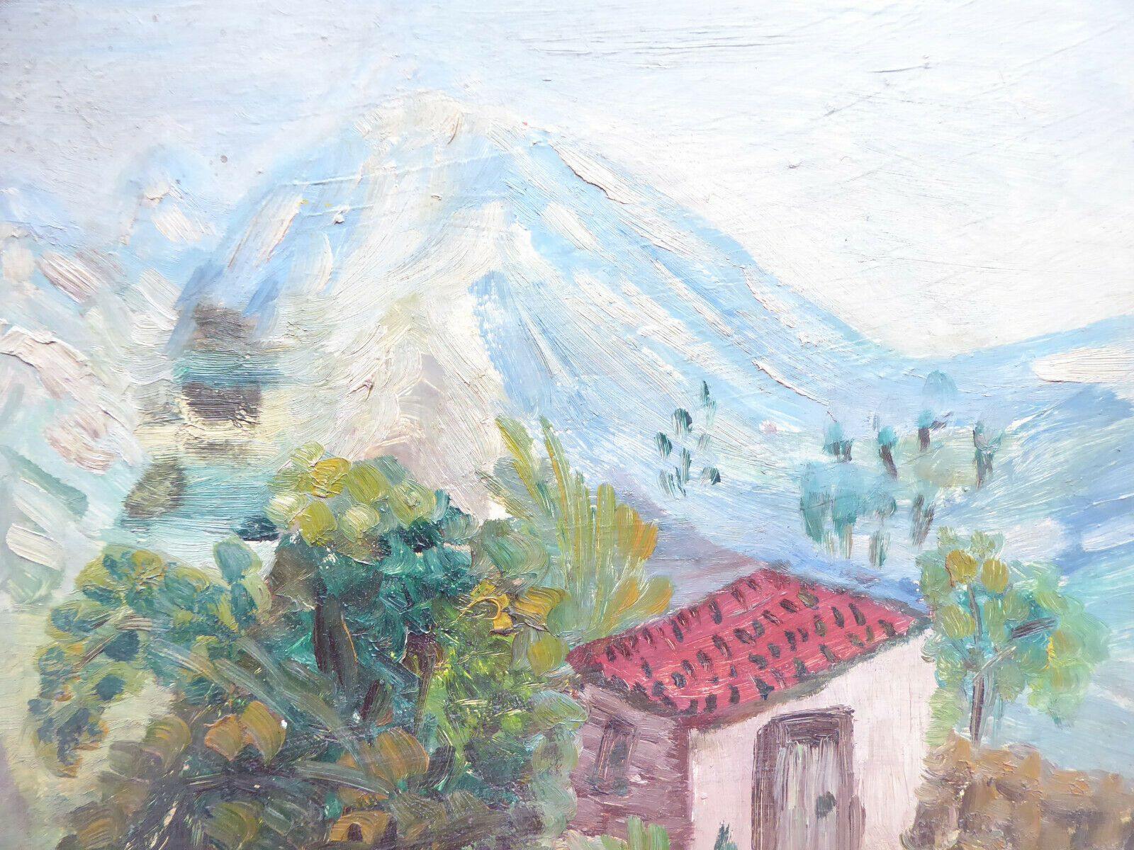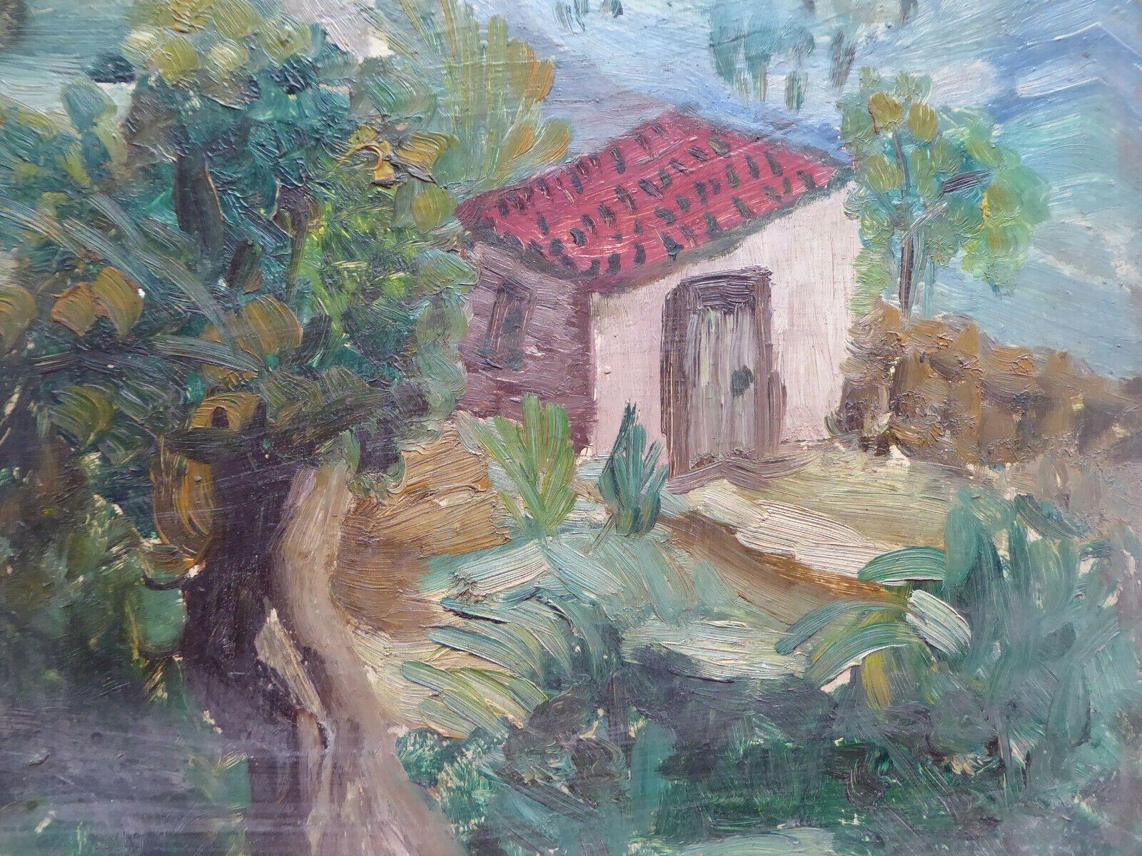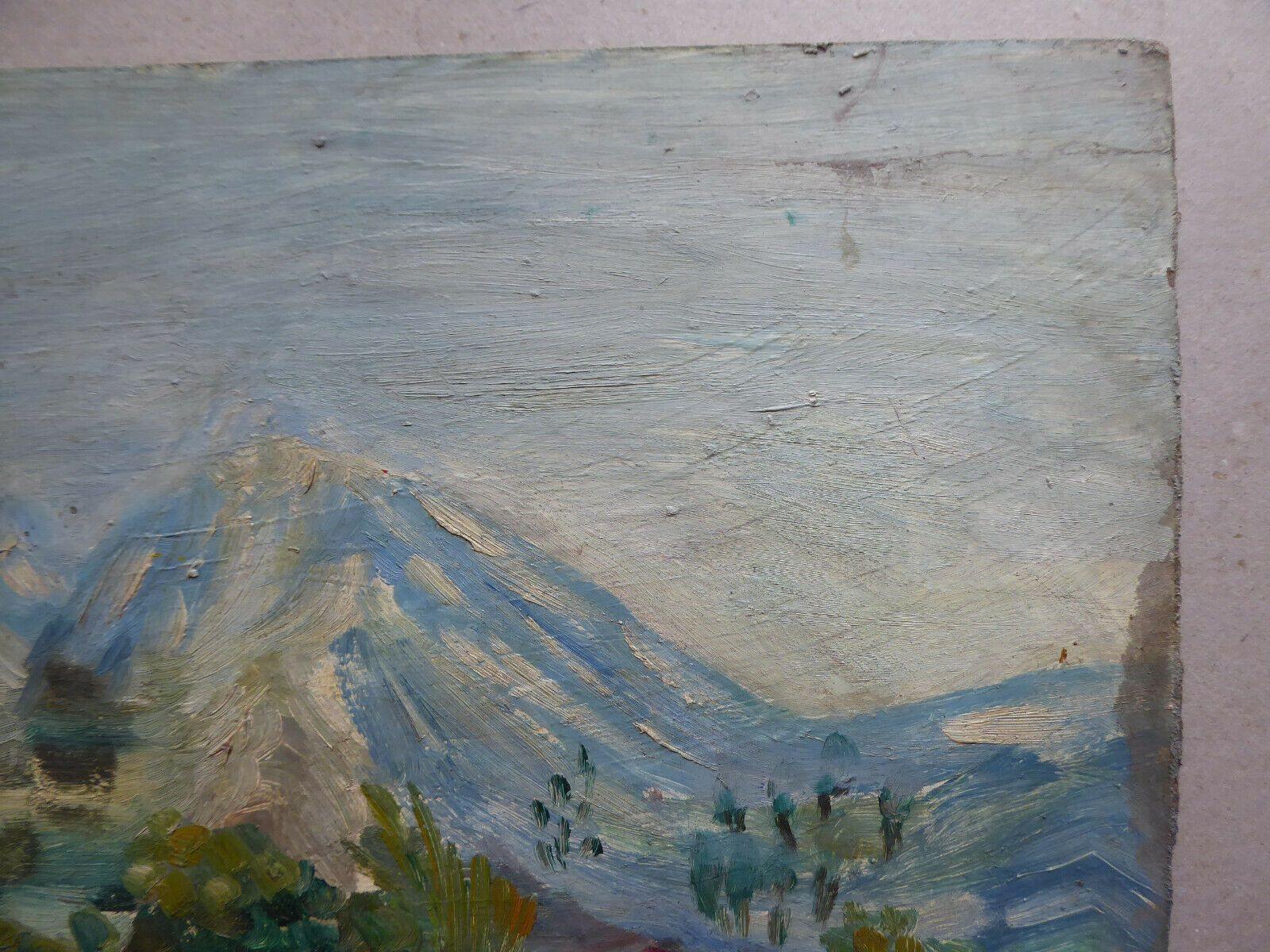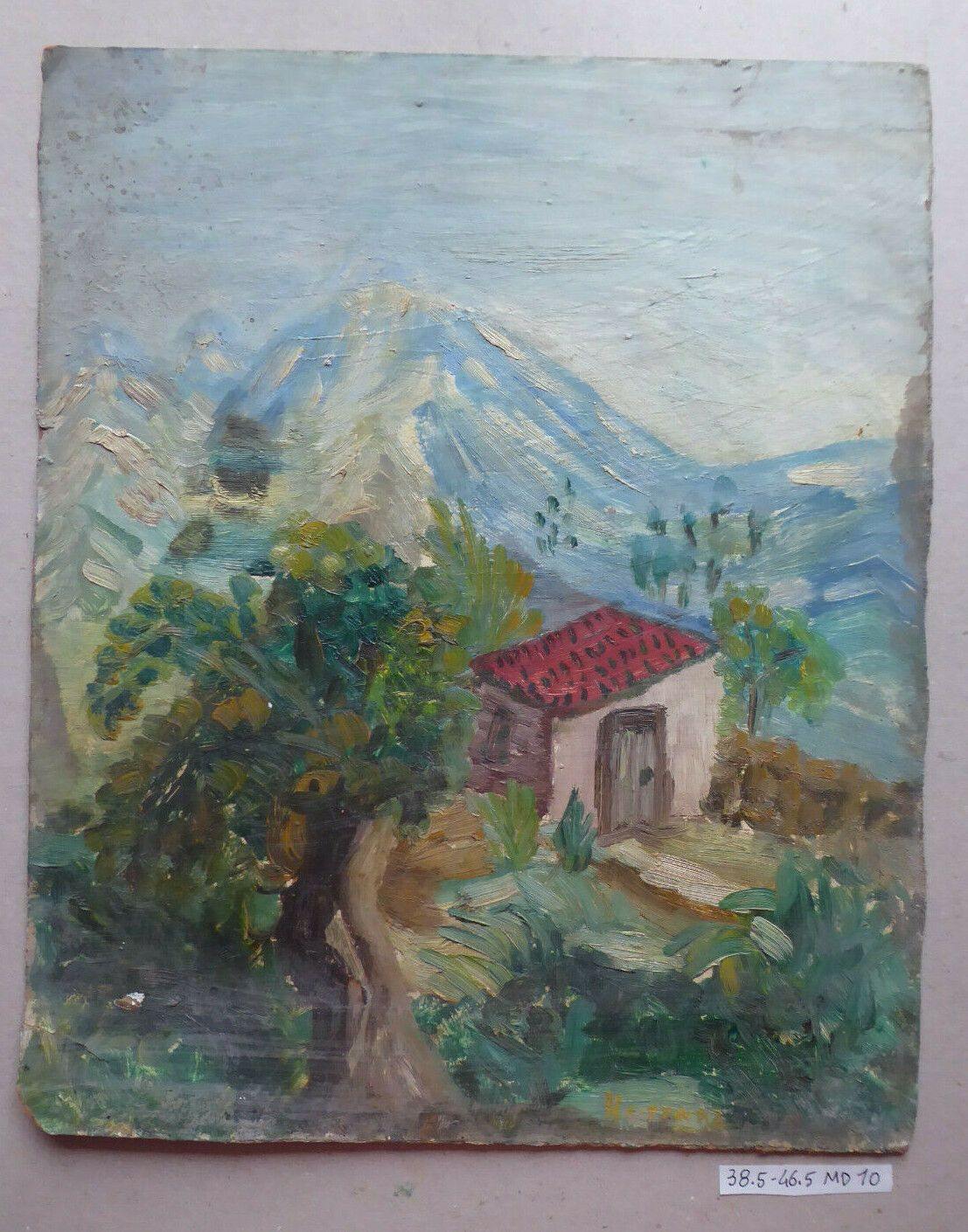 38x46cm QUADRO OLIO TAVOLA VINTAGE PAESAGGIO BOZZETTO PITTORE SPAGNOLO MD10
