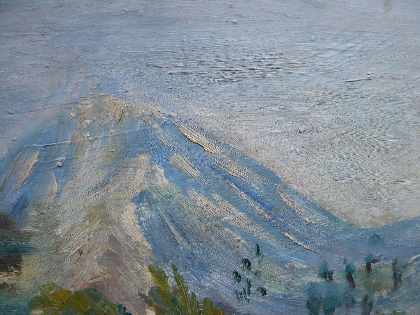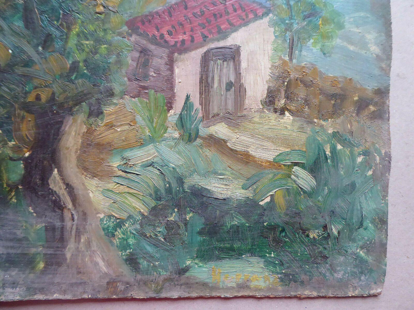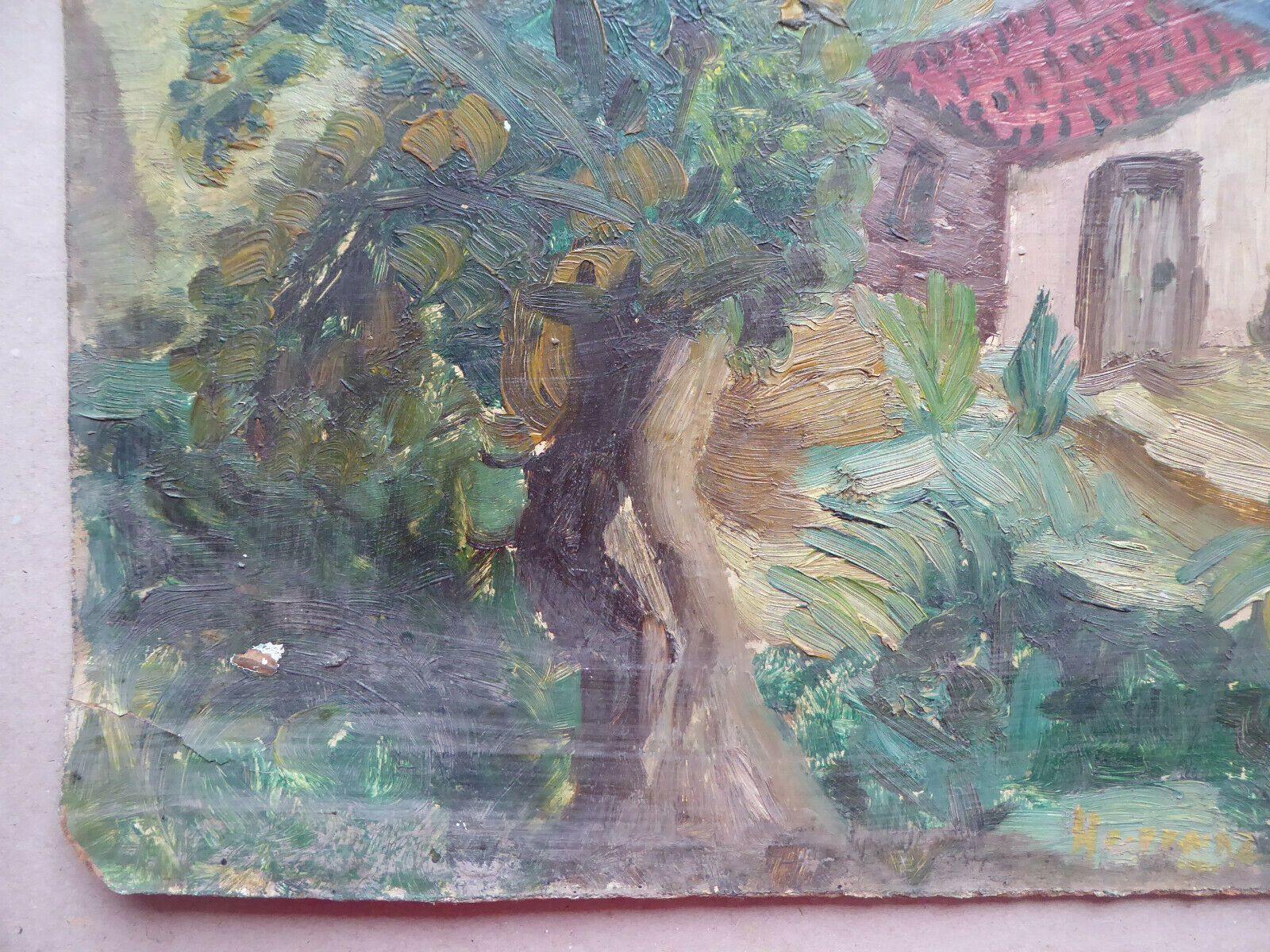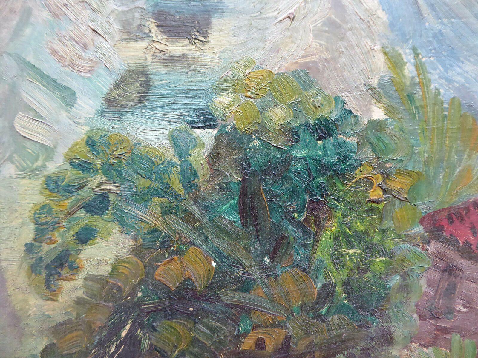 38x46cm QUADRO OLIO TAVOLA VINTAGE PAESAGGIO BOZZETTO PITTORE SPAGNOLO MD10