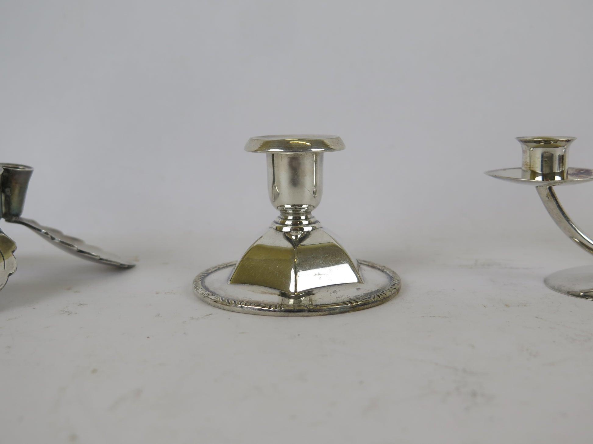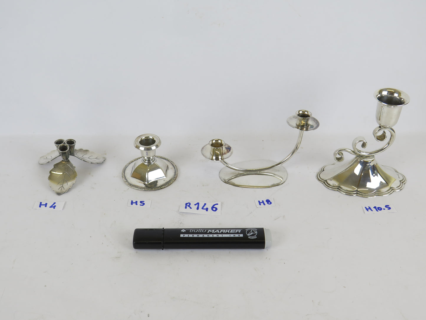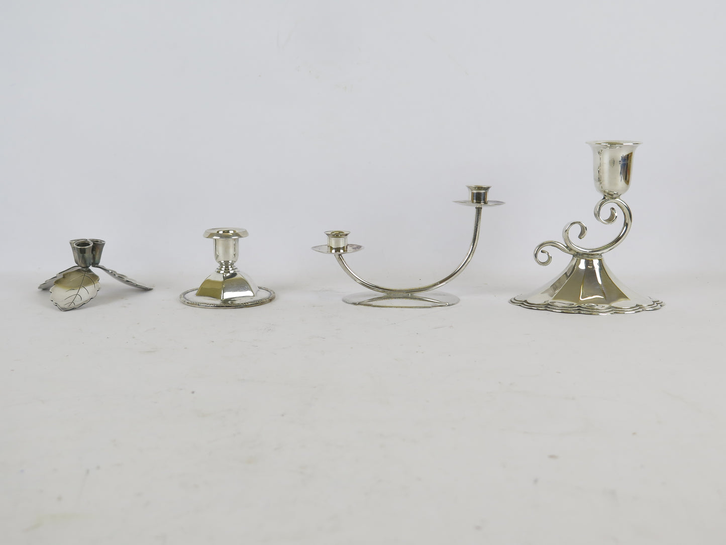 4 portacandela antichi in metallo argentato di cui due marchiati sul fondo.