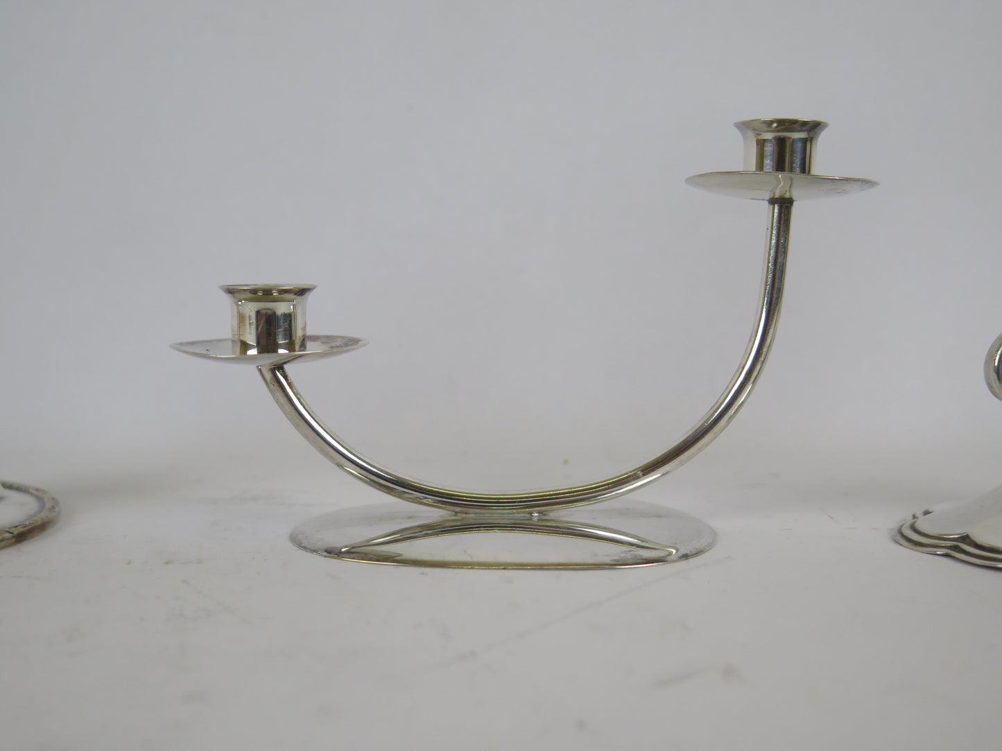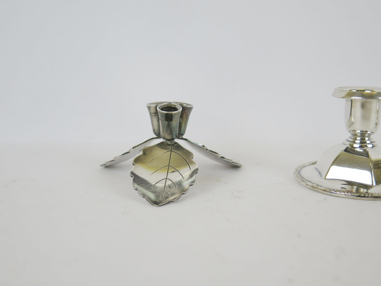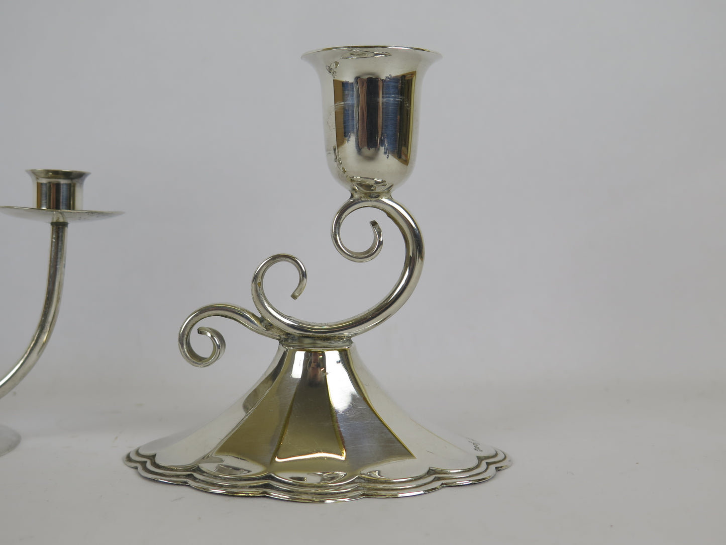 4 portacandela antichi in metallo argentato di cui due marchiati sul fondo.