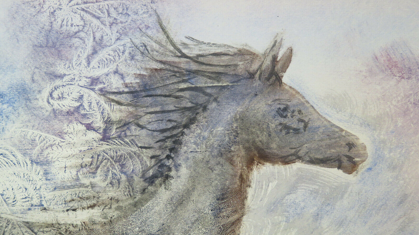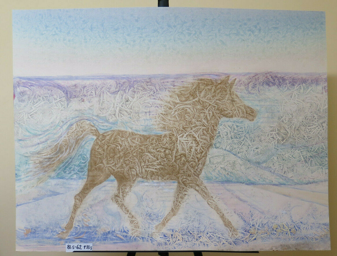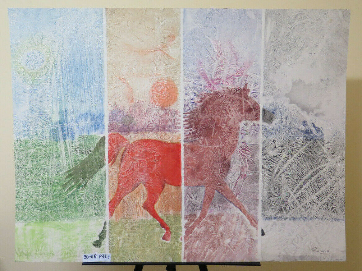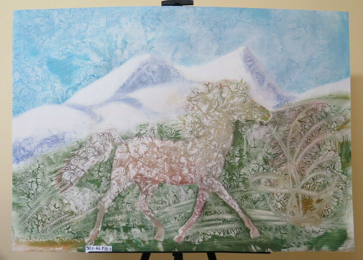 4 QUADRI EQUESTRI VINTAGE CON CAVALLO DIPINTI CON TECNICA DEL GELO ANNI 80 P33.5