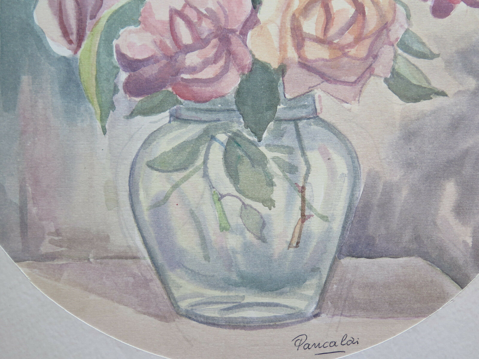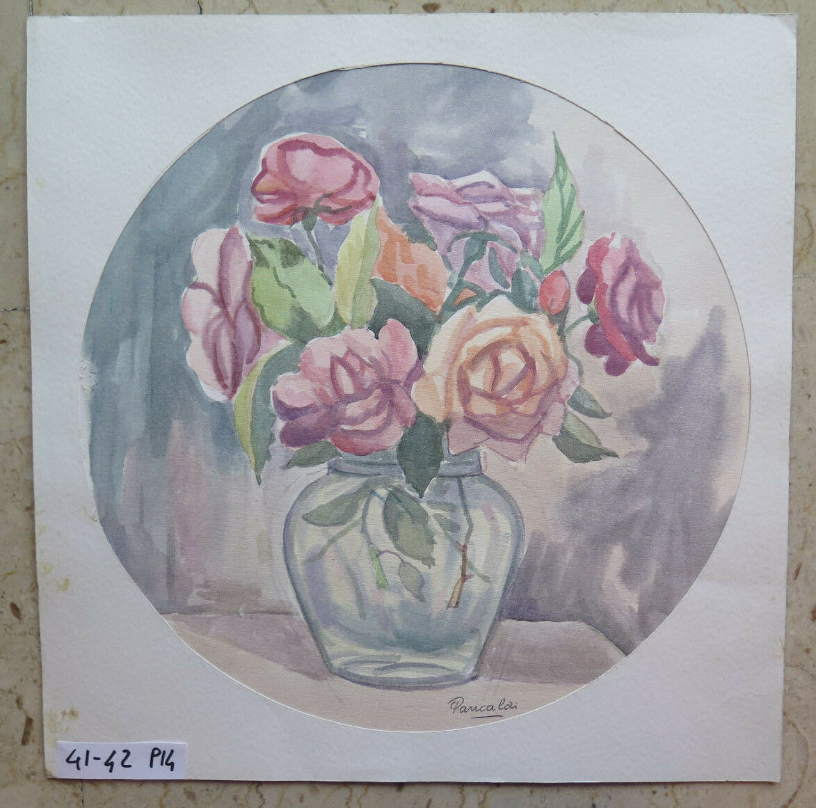41x42cm QUADRO FIRMATO VINTAGE FLOREALE OPERA D'ARTE DEL PITTORE G. PANCALDI P14