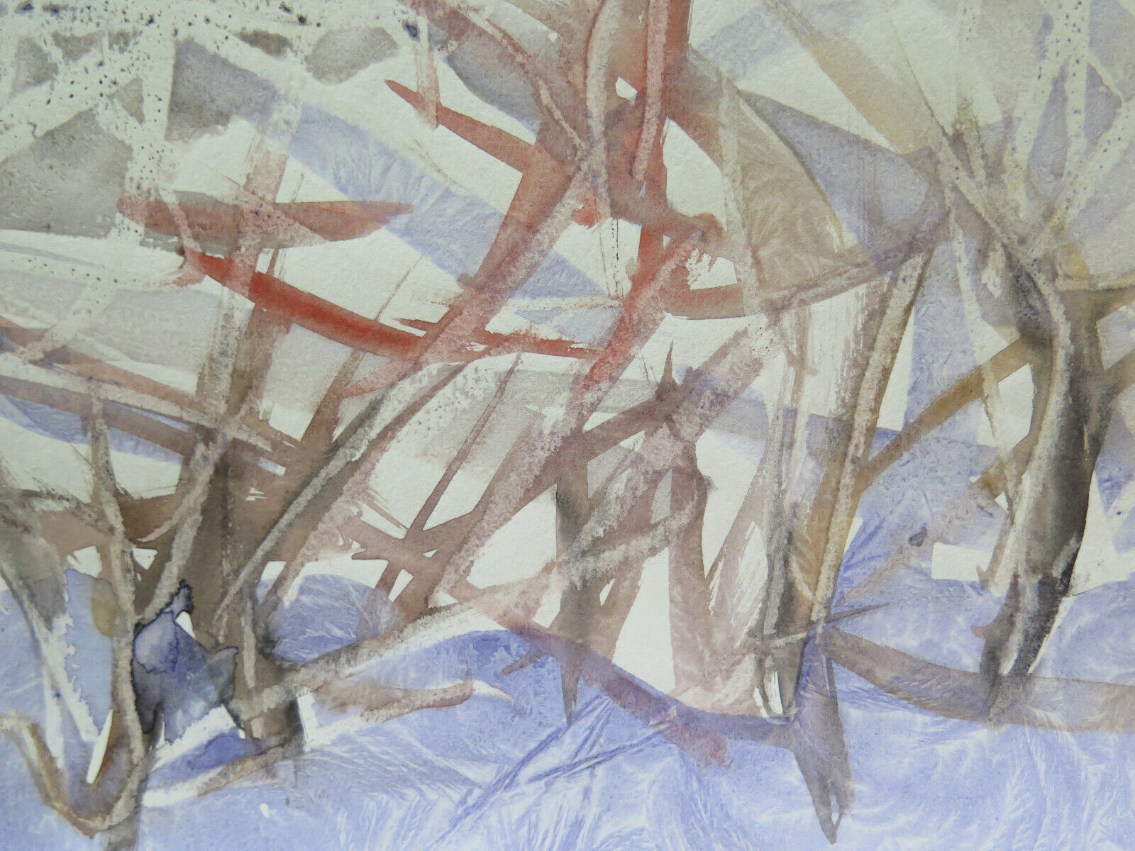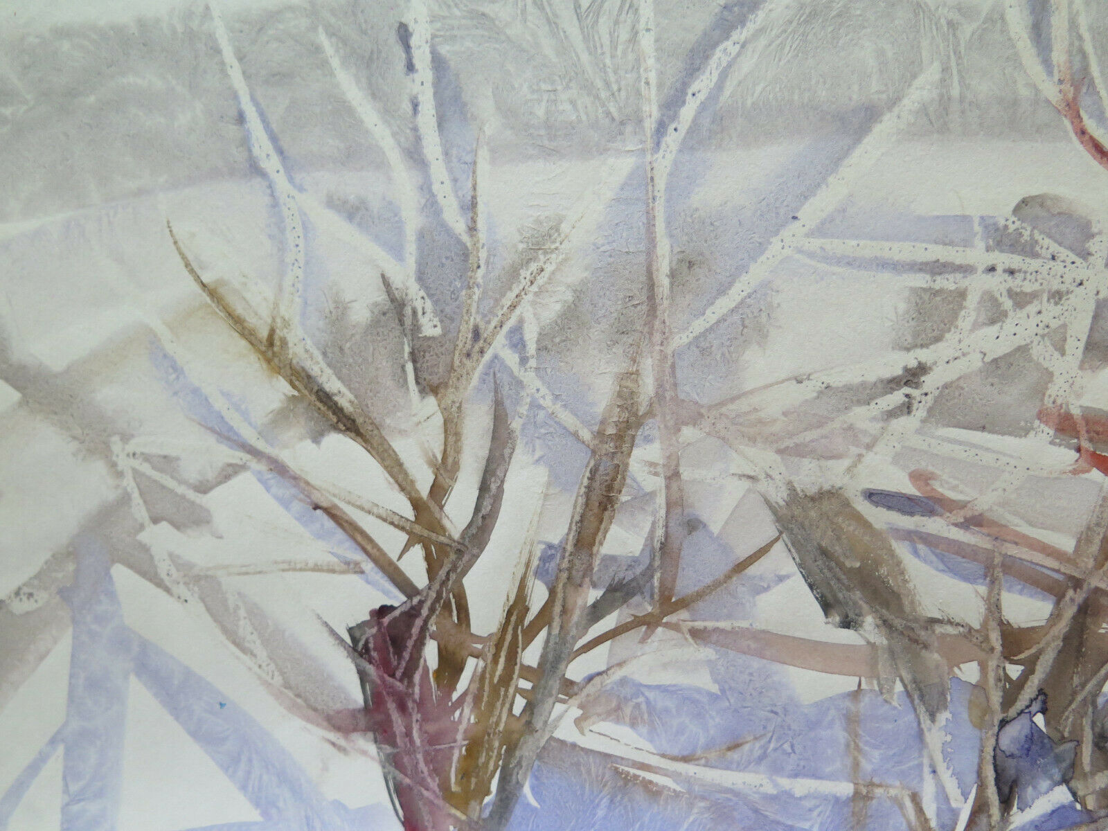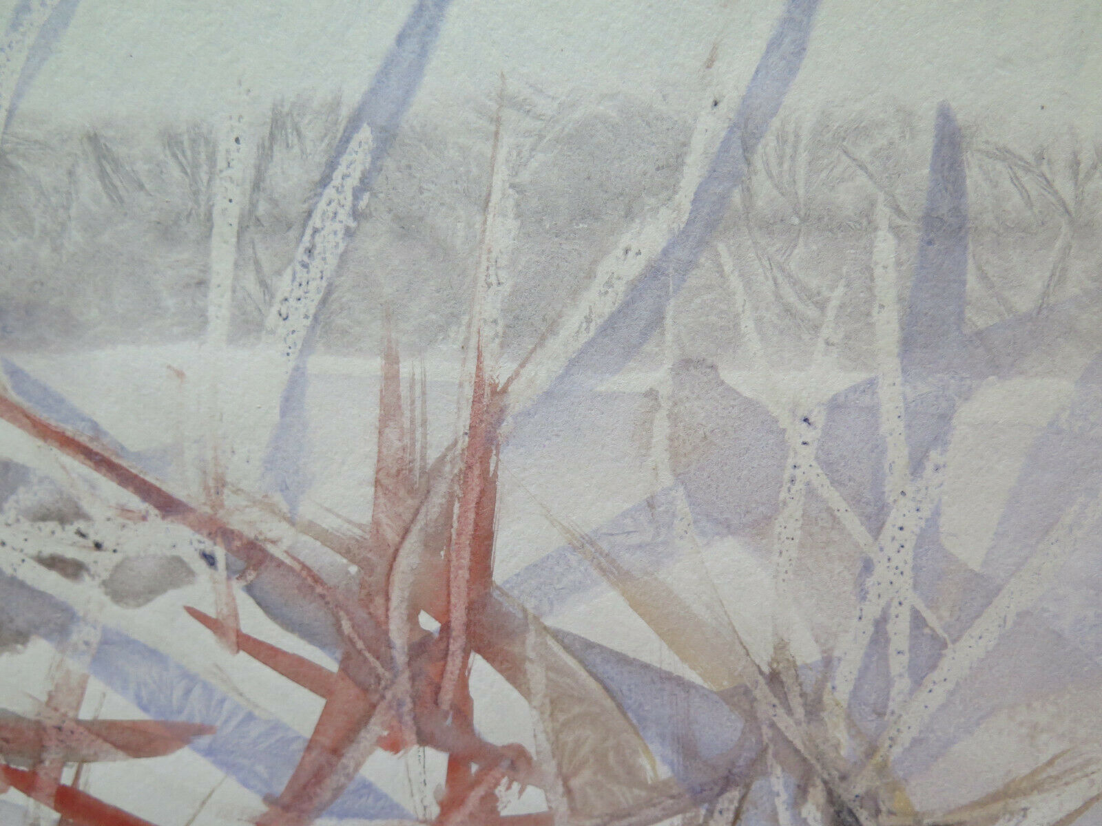 Supporto e tecnica: acquerello su cartoncino. Realizzato con la "tecnica del gelo" per ottenere l'effetto ghiaccio in alcuni aree della superficie pittorica, tale tecnica consisteva nel porre al freddo vero e proprio il dipinto ancora fresco per poi lavorarlo successivamente. Questo effetto è stato creato dal pittore Pancaldi e ricorre in molti suoi lavori soprattutto nella fase della maturità. Autore: Gaetano Pancaldi (Piumazzo di Castelfranco Emilia, 1922-2014).