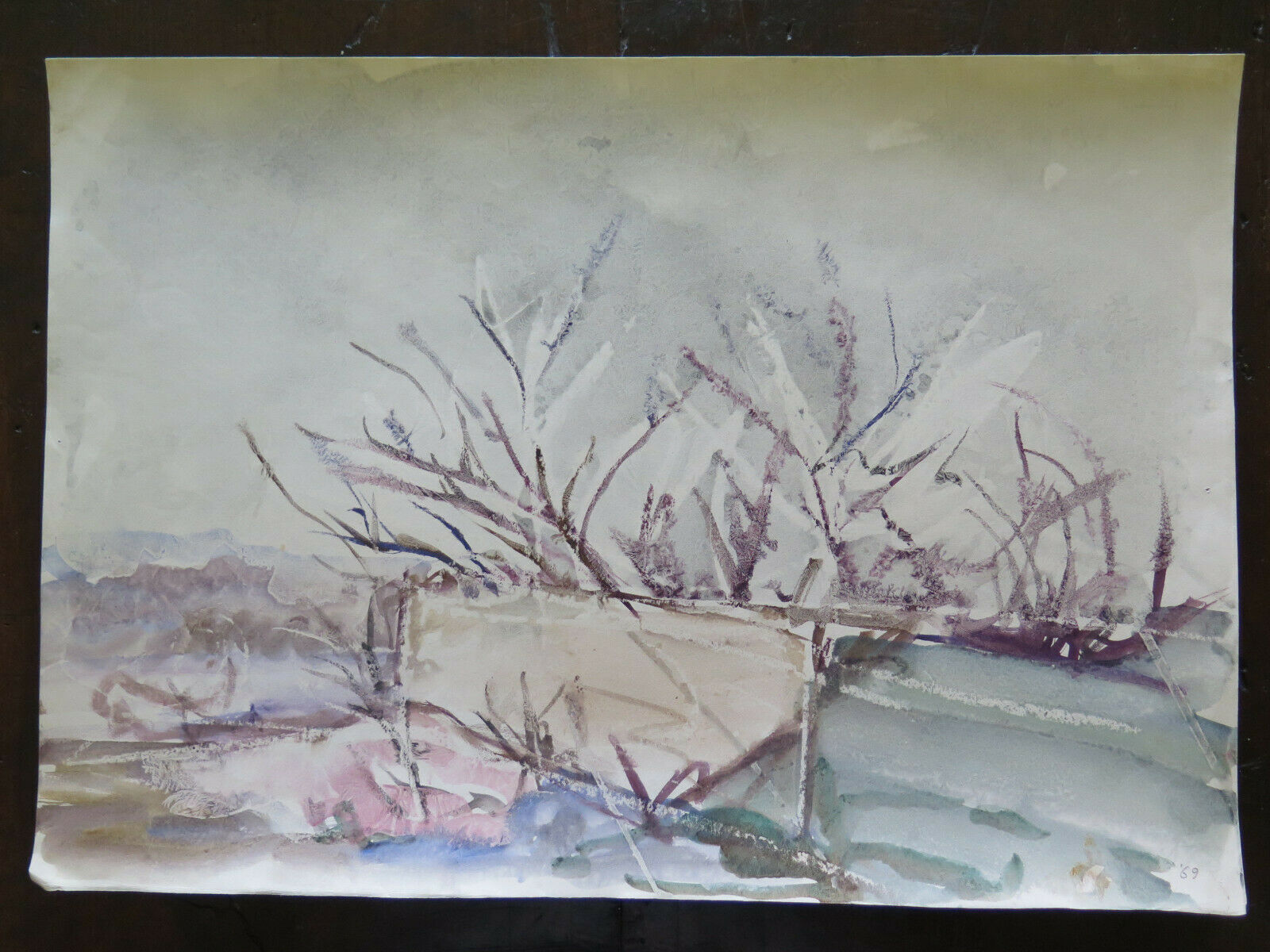 Medium and painting surface: watercolor on paper painted with "Ice technique" that was invented by Pancaldi to obtain the ice effect in some part of the painting surface, this technique consist to literally freeze the fresh wet painting and subsequently work on it again. He used this tecnique starting from the early '60's and kept working on it for all his life until the extraordinary results of the 80's and 90's ice paintings.