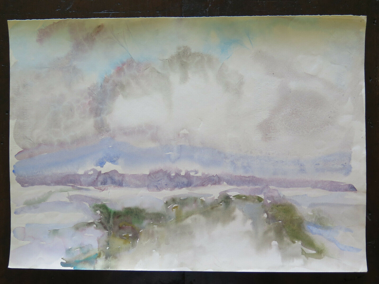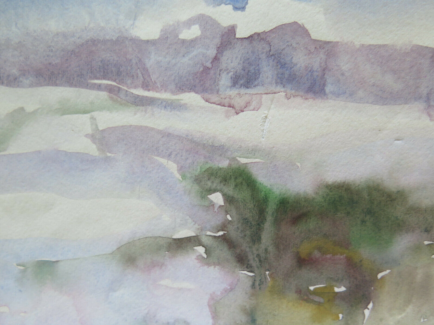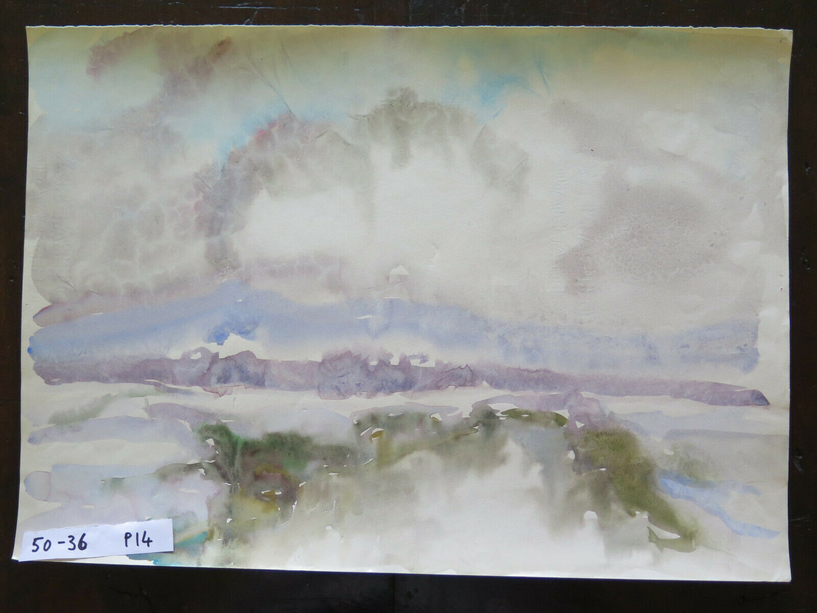 50x36 cm QUADRO DIPINTO VINTAGE ASTRATTO ACQUERELLO TECNICA MISTA DEL GELO P14