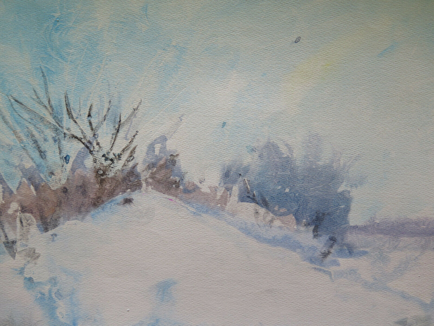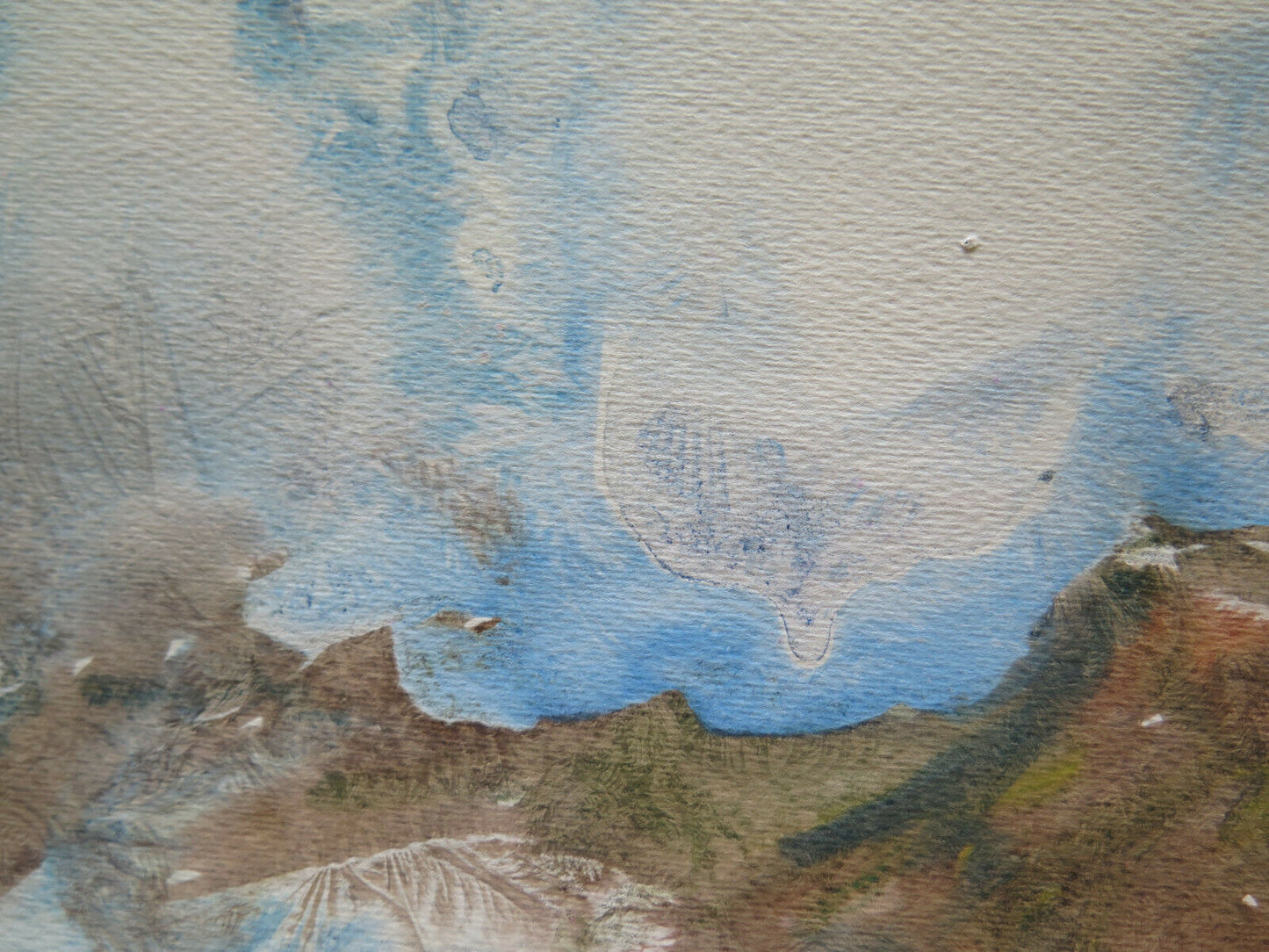 Medium and painting surface: watercolor on paper painted with "Ice technique" that was invented by Pancaldi to obtain the ice effect in some part of the painting surface, this technique consist to literally freeze the fresh wet painting and subsequently work on it again. He used this tecnique starting from the early '60's and kept working on it for all his life until the extraordinary results of the 80's and 90's ice paintings.
