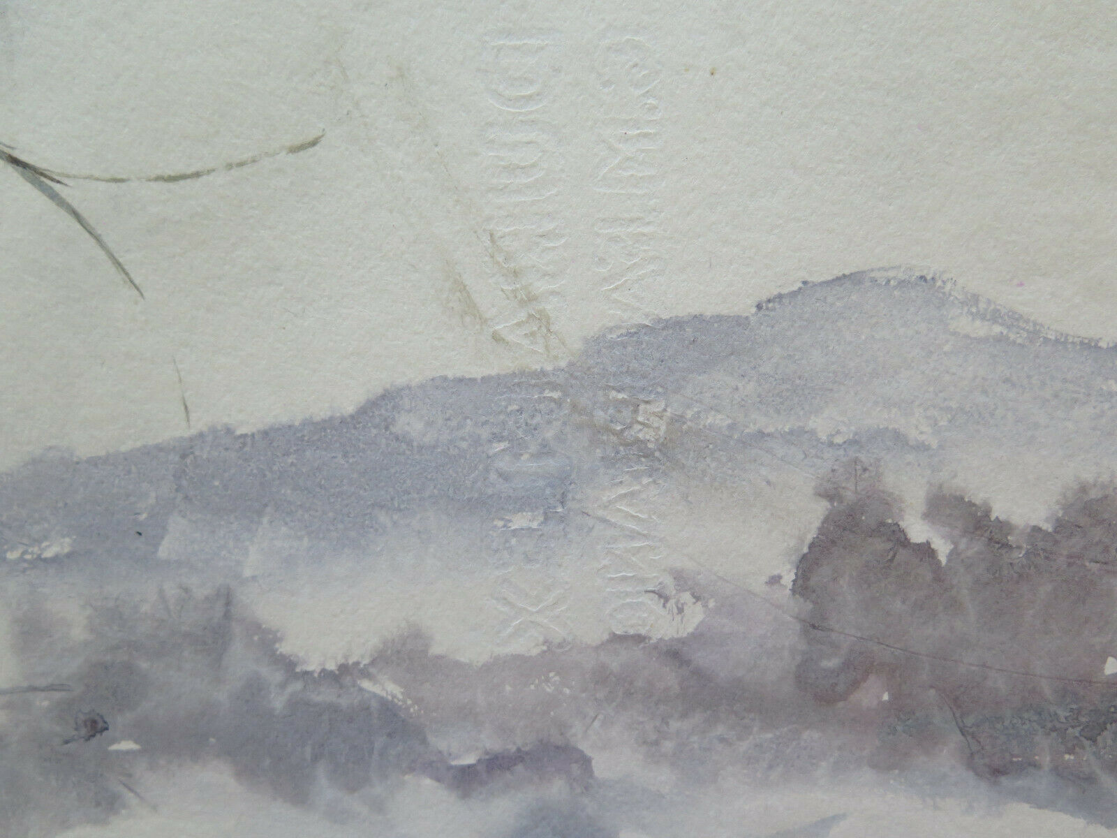 50x36 cm QUADRO VINTAGE DIPINTO ACQUERELLO CON TECNICA MISTA PAESAGGIO CAMPI P14