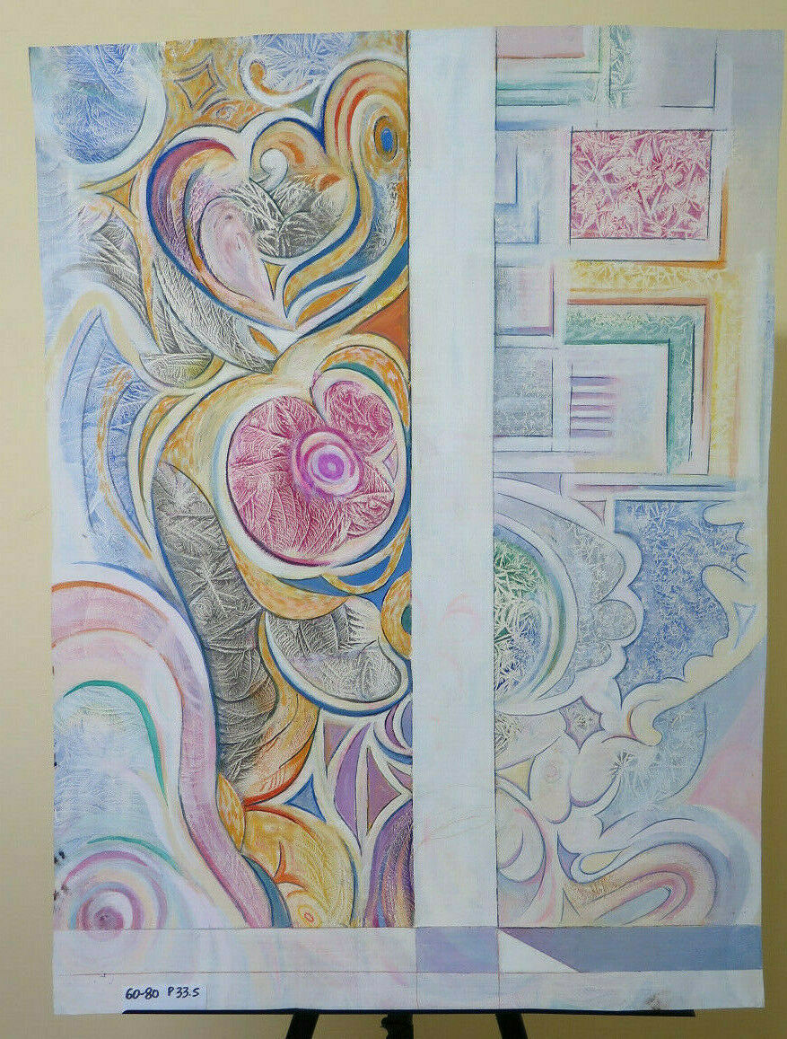 60x80 cm QUADRO ASTRATTO DIPITO VINTAGE DIPINTO CON TECNICA DEL GELO P33.5
