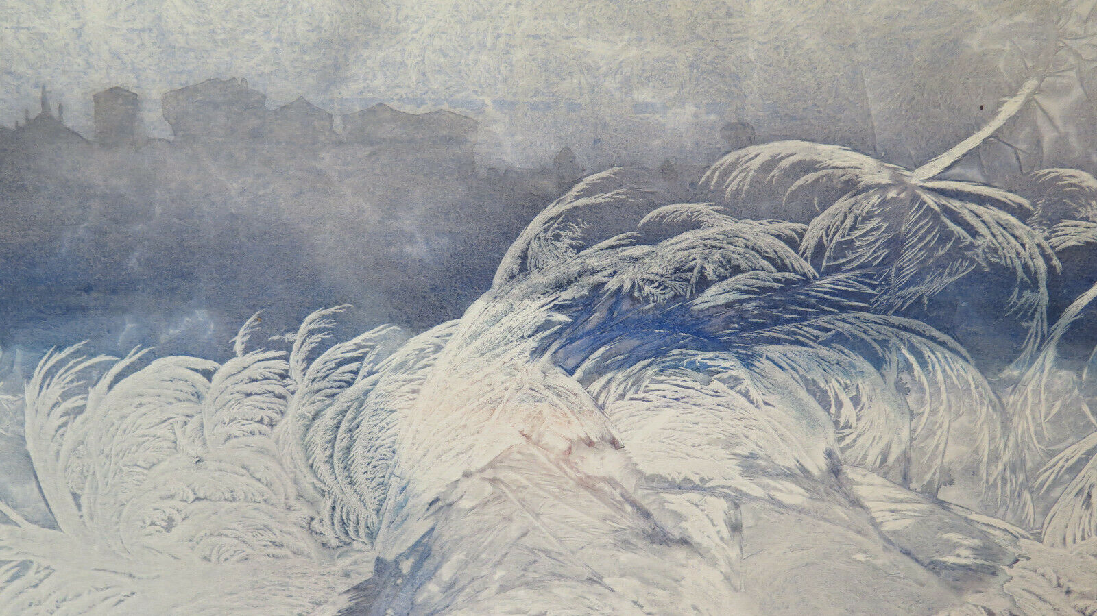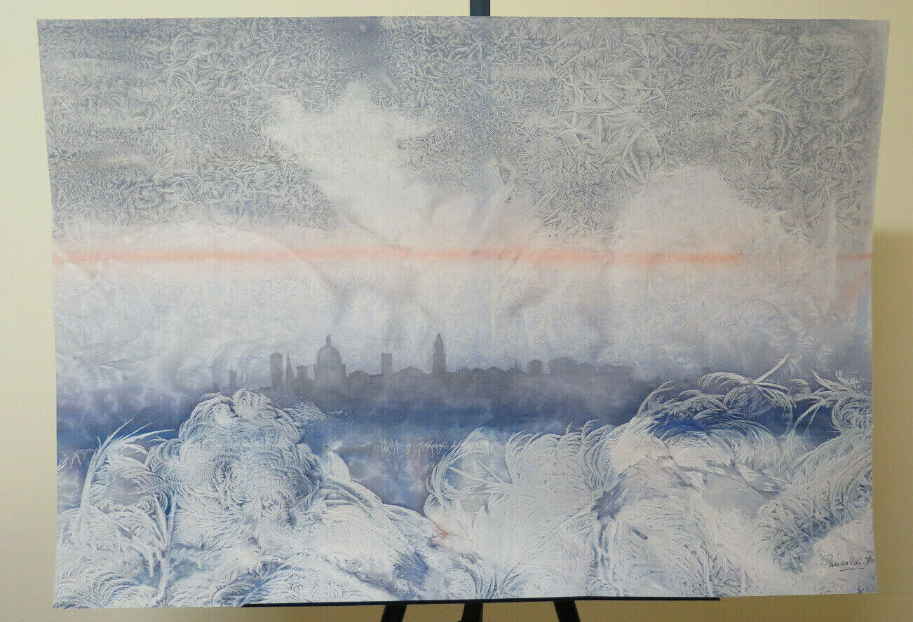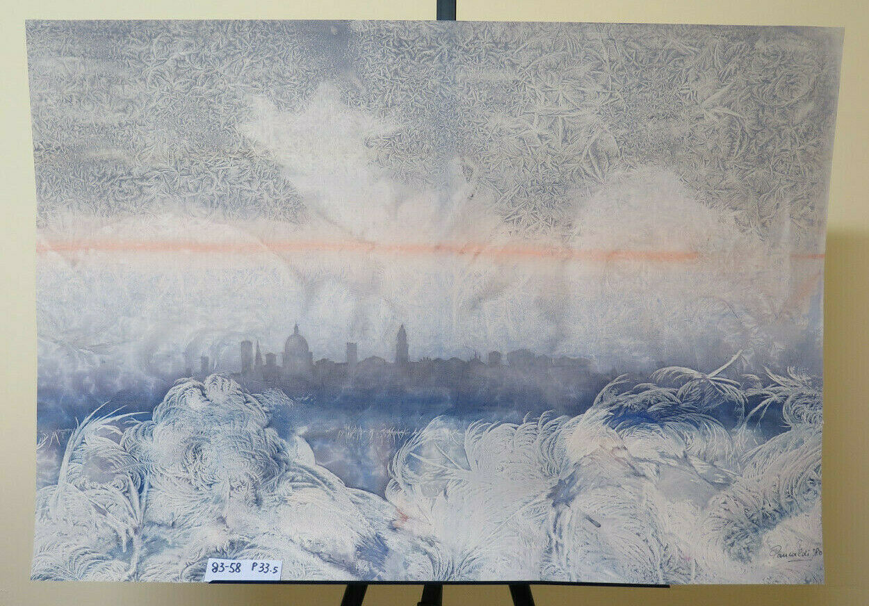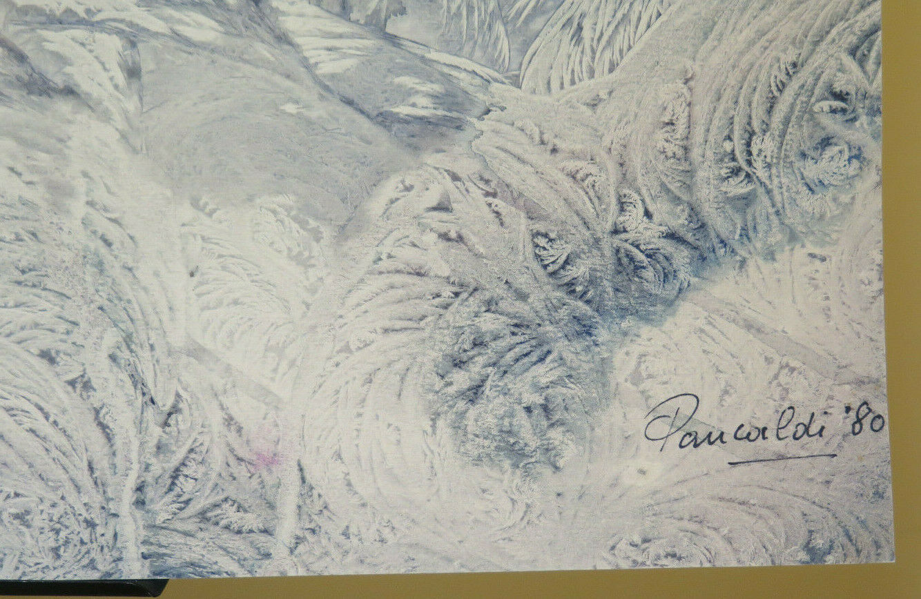 Medium and painting surface: watercolor on paper painted with "Ice technique" that was invented by Pancaldi to obtain the ice effect on some part of the painting surface, this technique consist to literally freeze the fresh wet painting and subsequently work on it again. He used this tecnique starting from the early '60's and kept working on it for all his life until the extraordinary results of the 80's and 90's ice paintings.