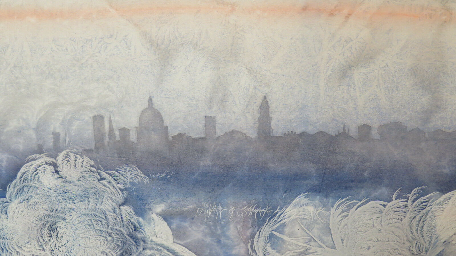 83x50 cm DIPINTO AD ACQUERELLO CON TECNICA DEL GELO VEDUTA DI MANTOVA P33.5