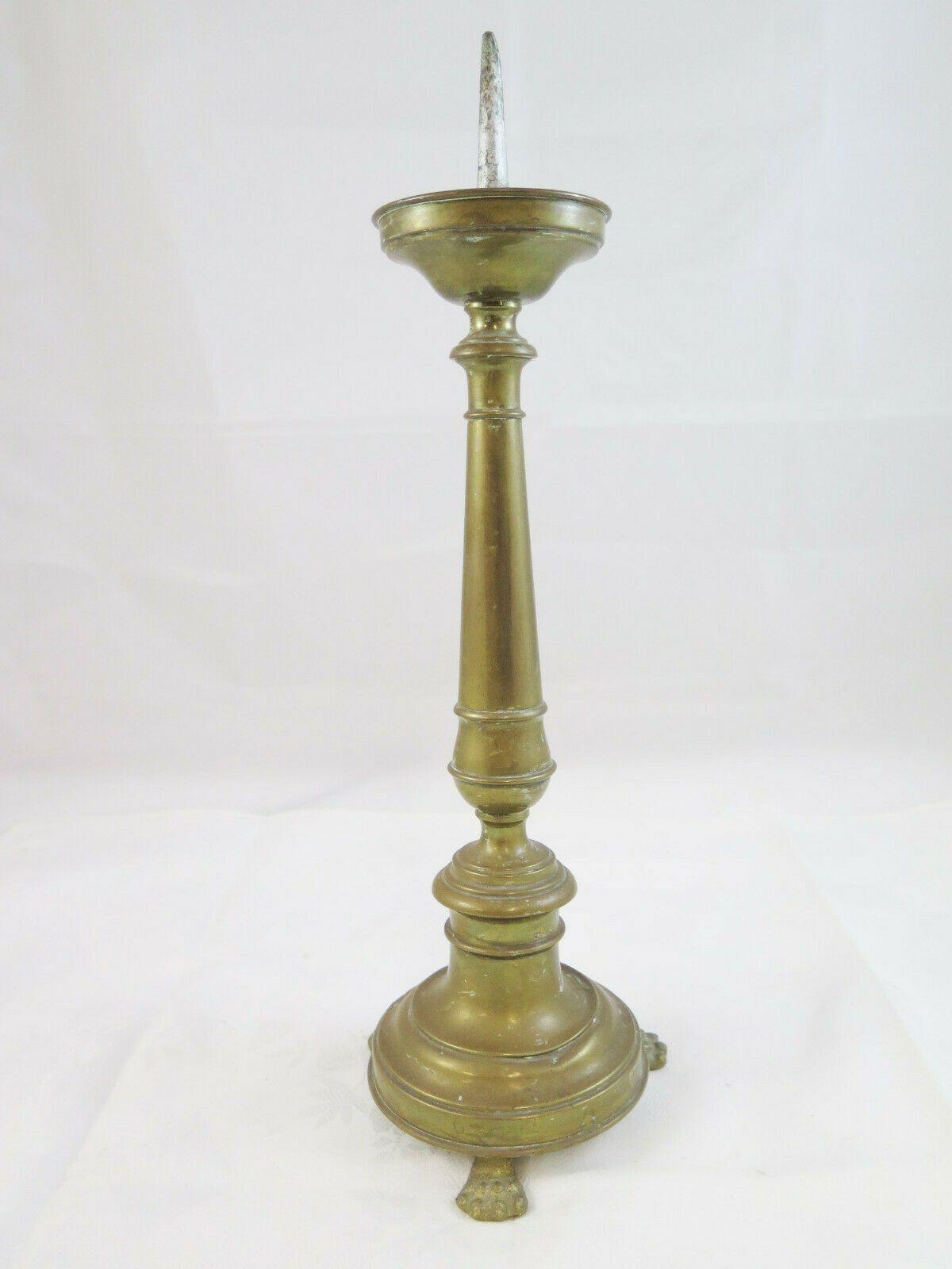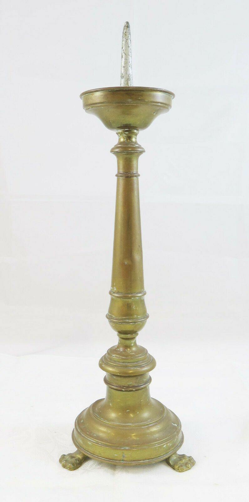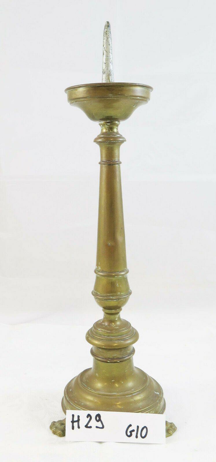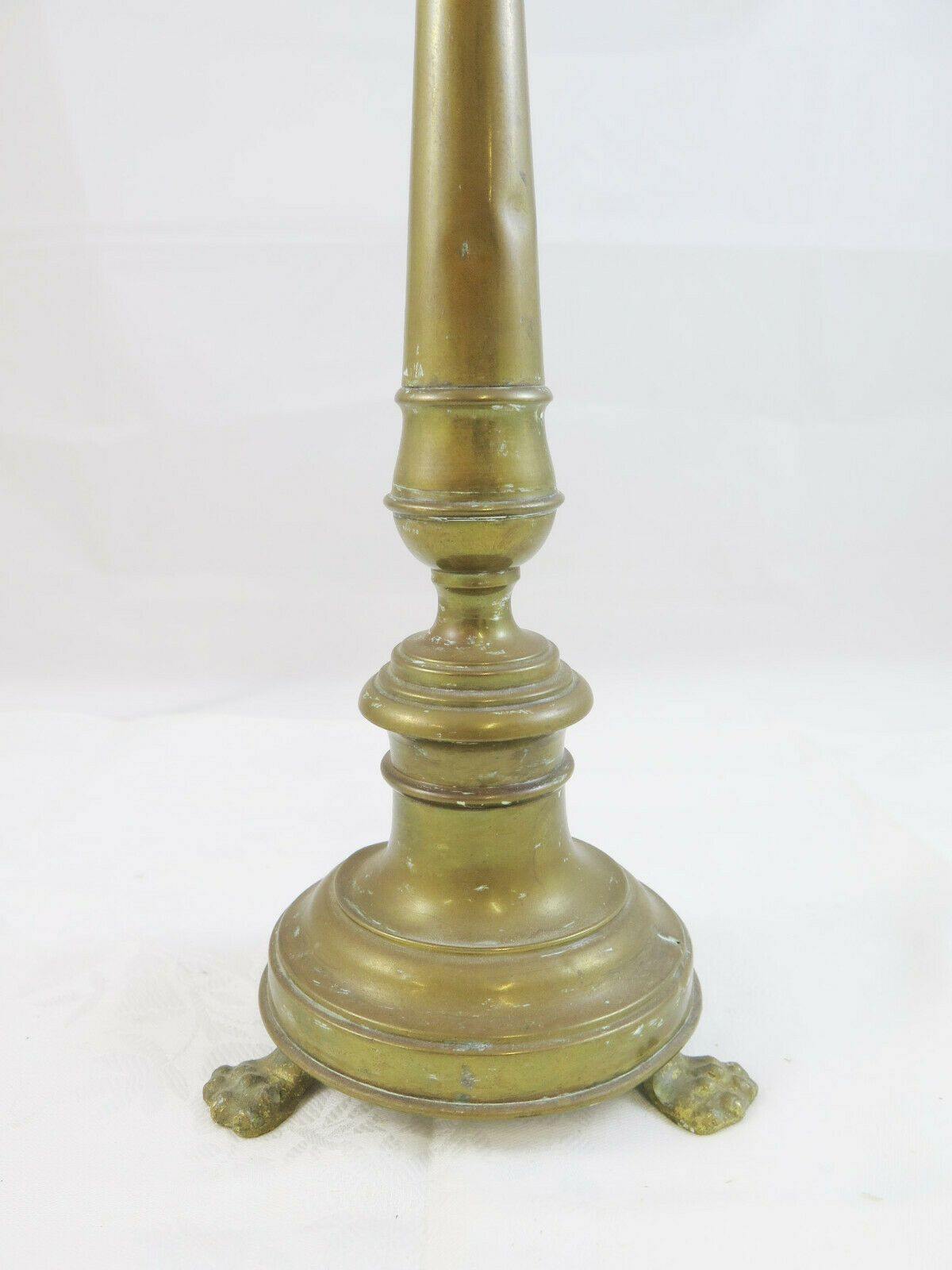 ANTICO CANDELIERE IN METALLO DORATO LAVORATO A SBALZO EPOCA '800 CANDELABRO G10