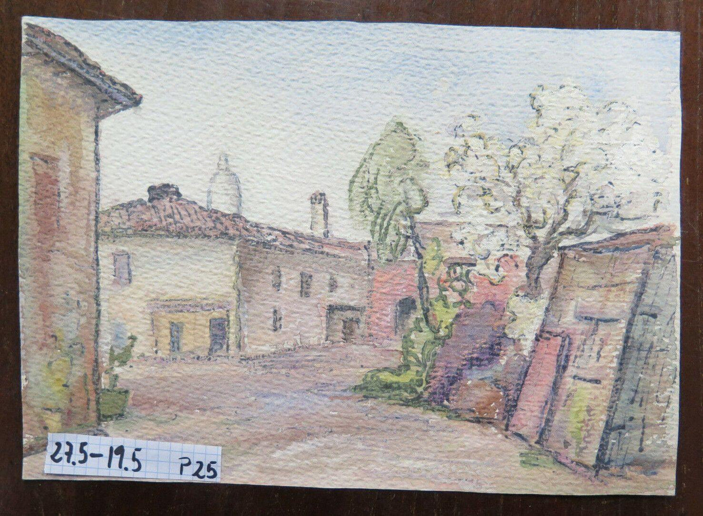 ANTICO DIPINTO AD ACQUERELLO MATITA VEDUTA PAESAGGIO DI CAMPAGNA CERTIFICATO P25