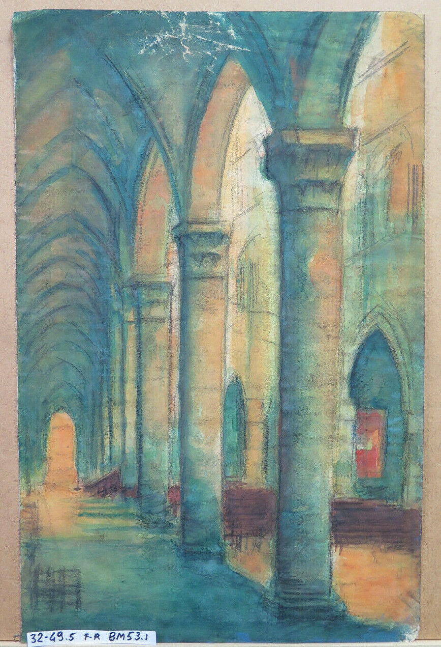 ANTICO DIPINTO INTERNO CHIESA Pierre Eugène Duteurtre DUT PITTORE FRANCIA BM53.1