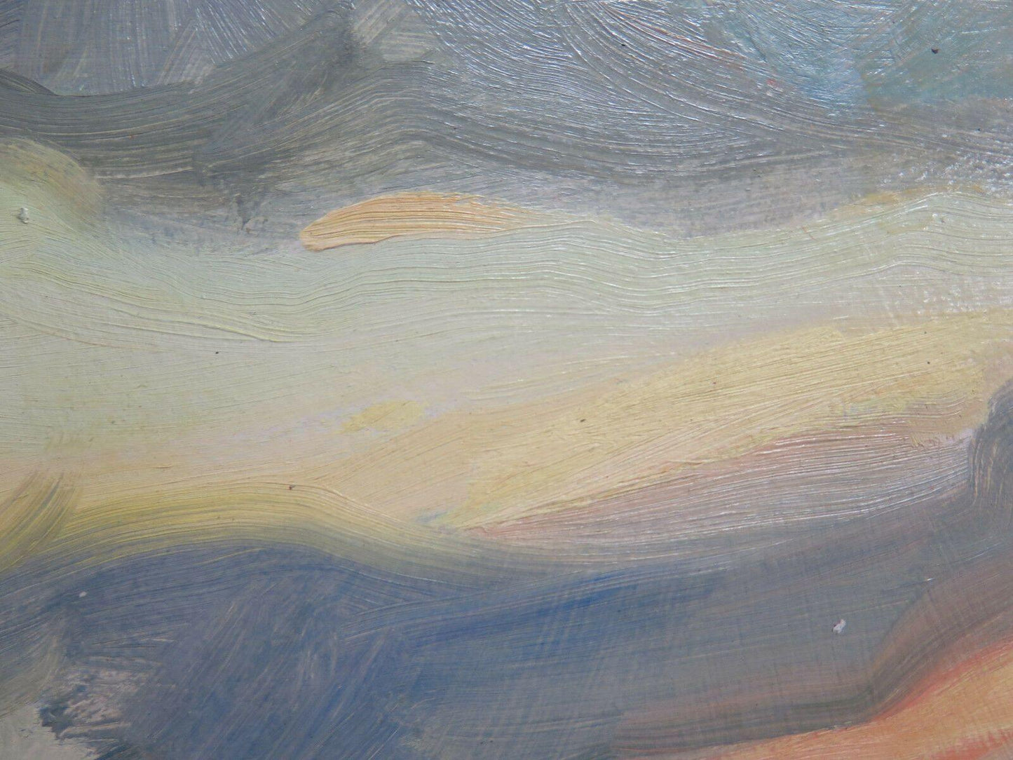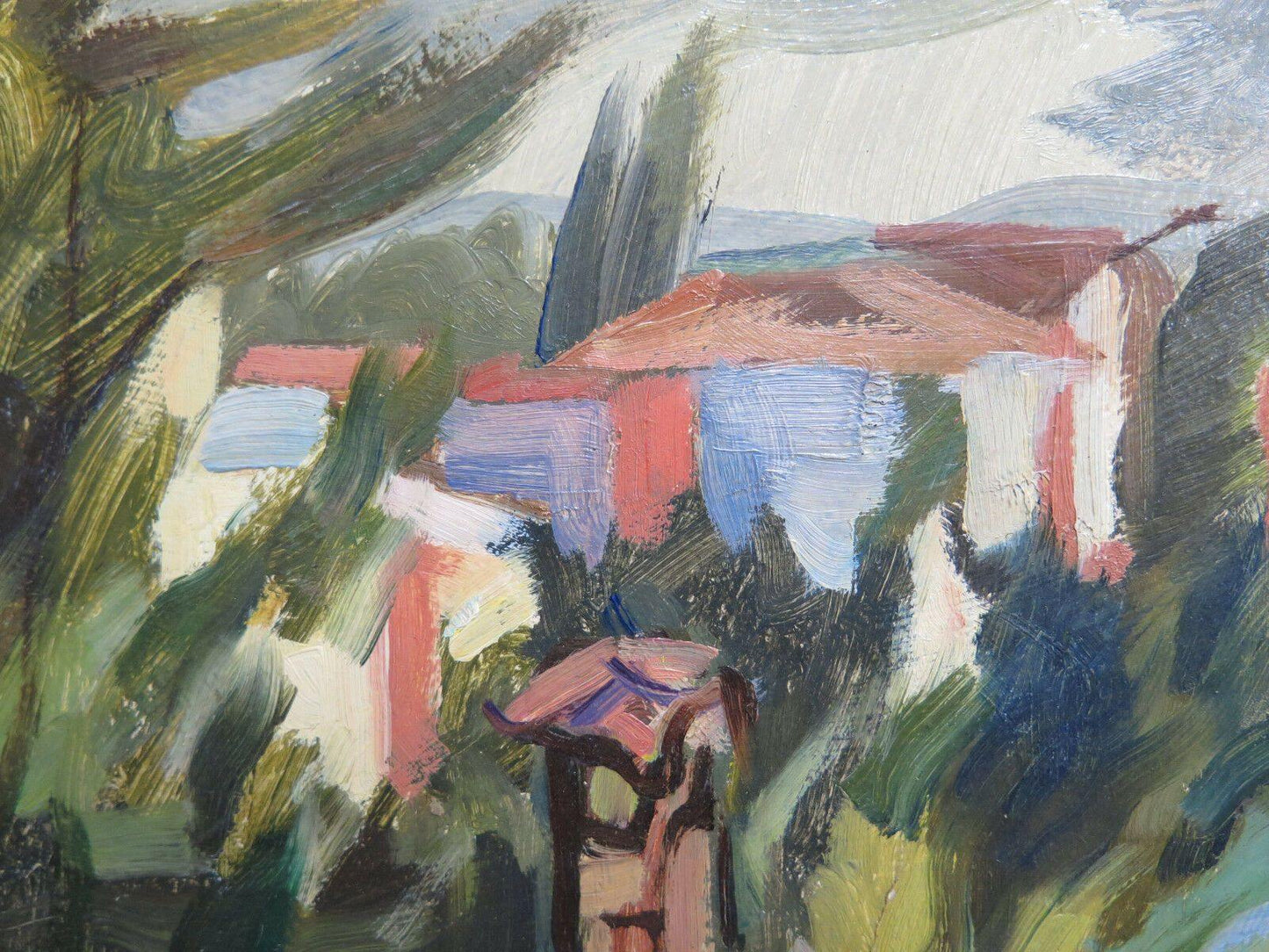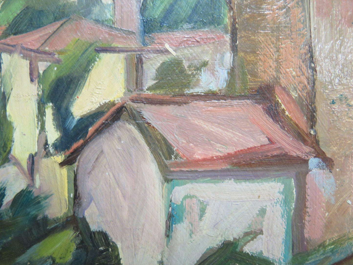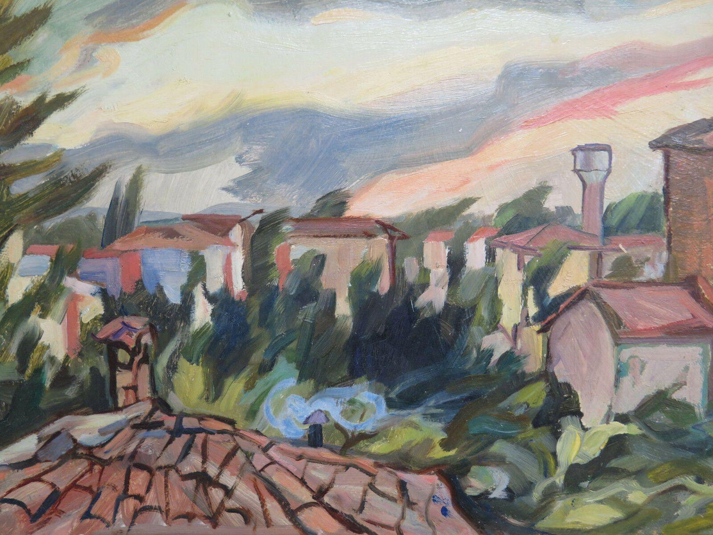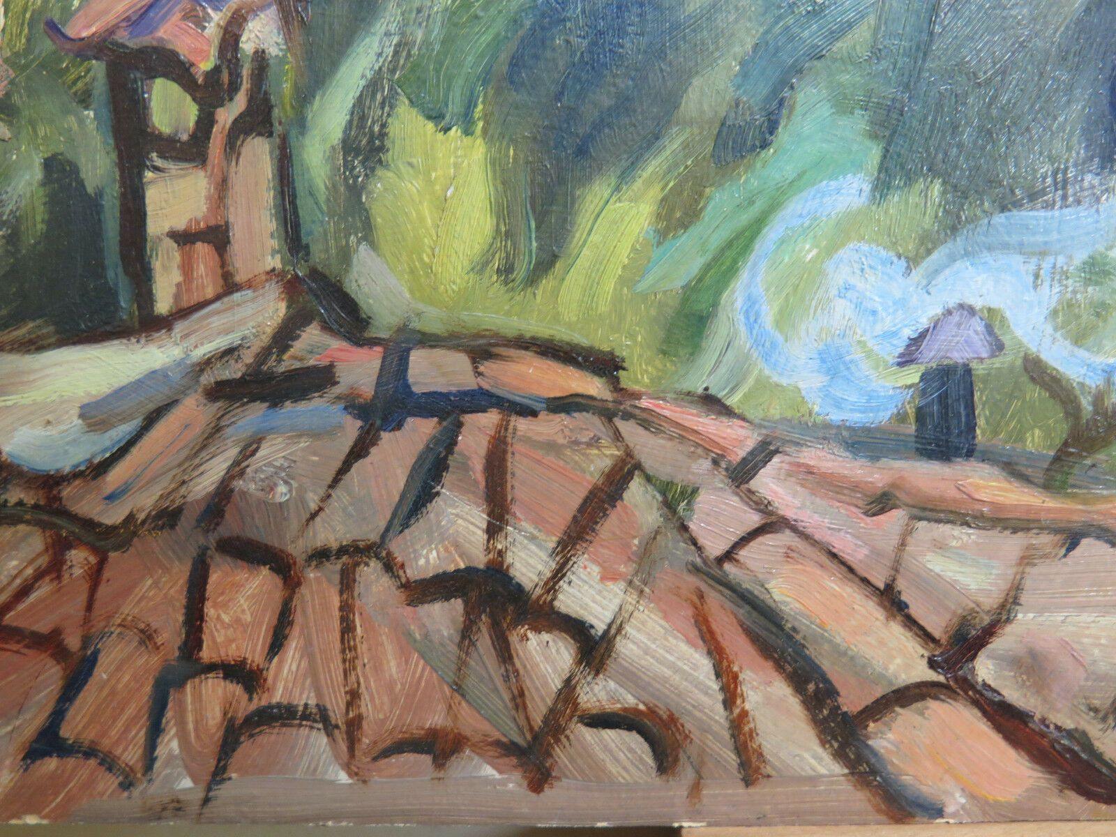 Particolare dipinto ad olio su tavola opera del pittore Gaetano Pancaldi (1922-2014) di Piumazzo di Castelfranco Emilia raffigurante la veduta dalla finestra della casa dell'artista.