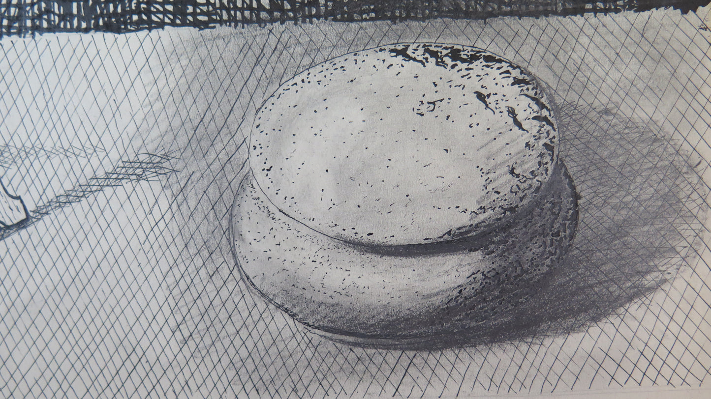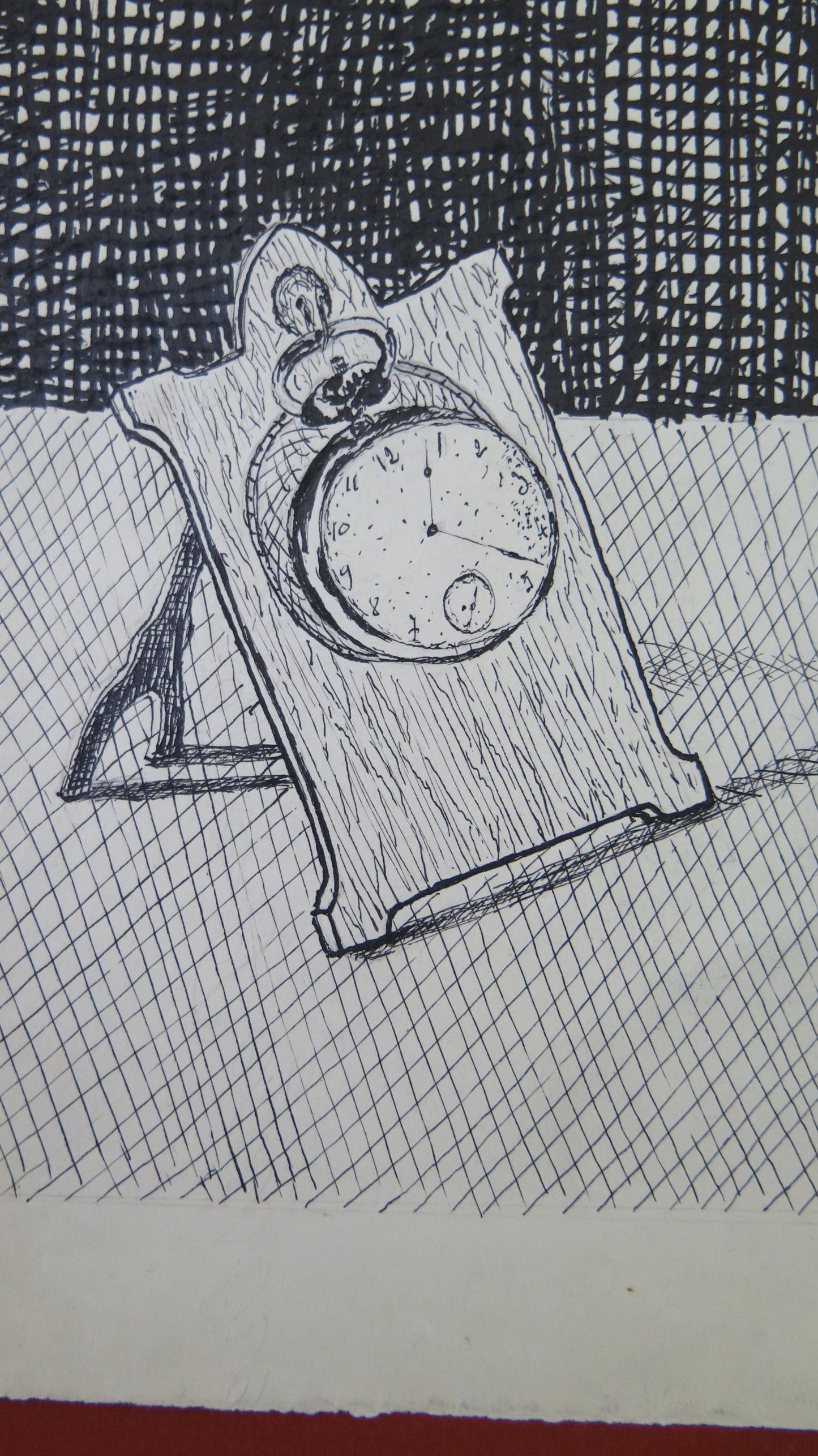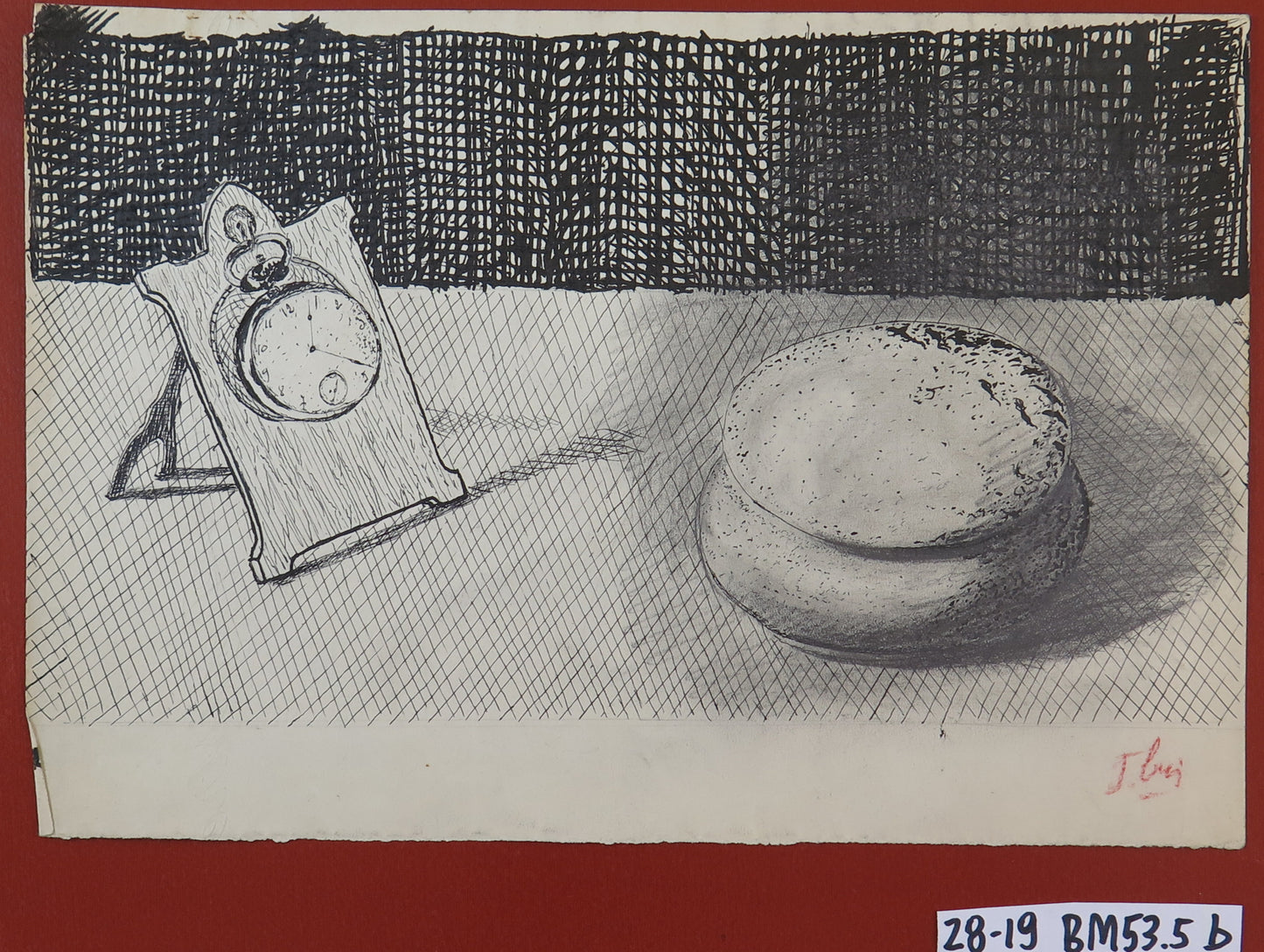 Raffinato disegno a china con oggetti su un tavolo firmato in basso a destra.