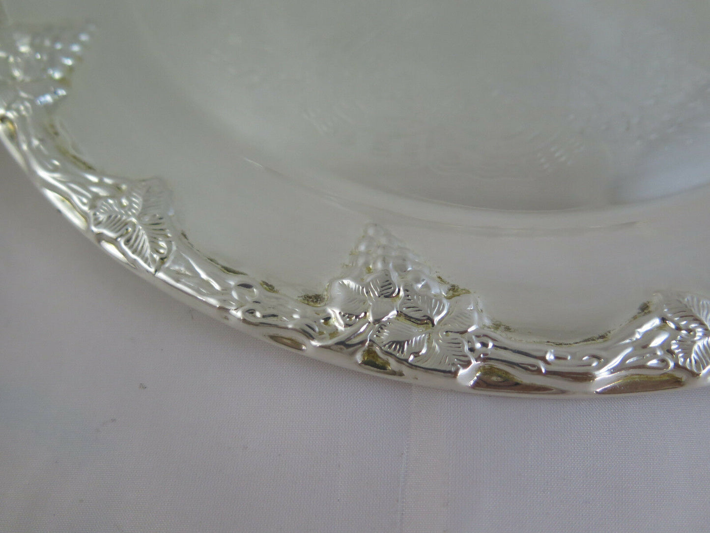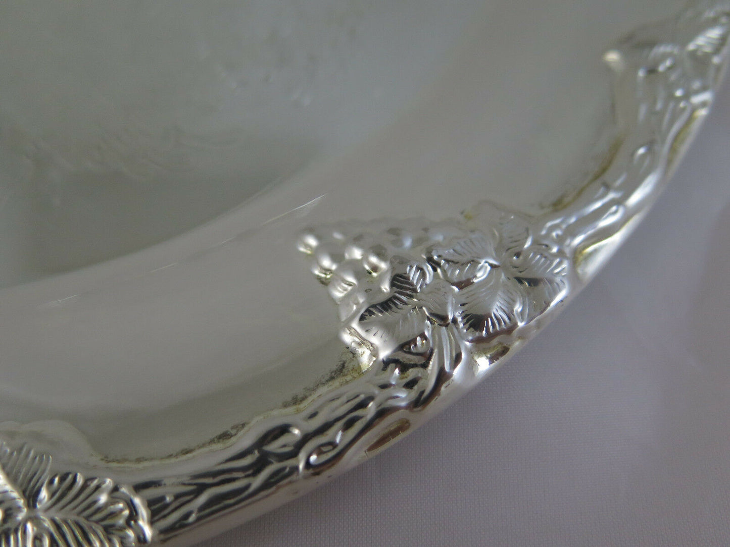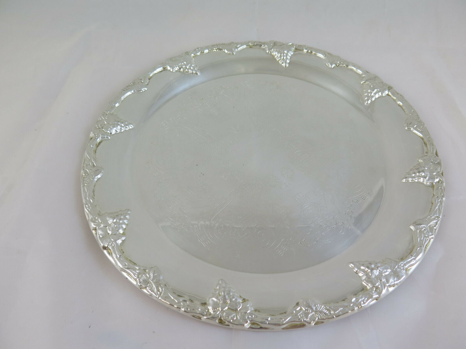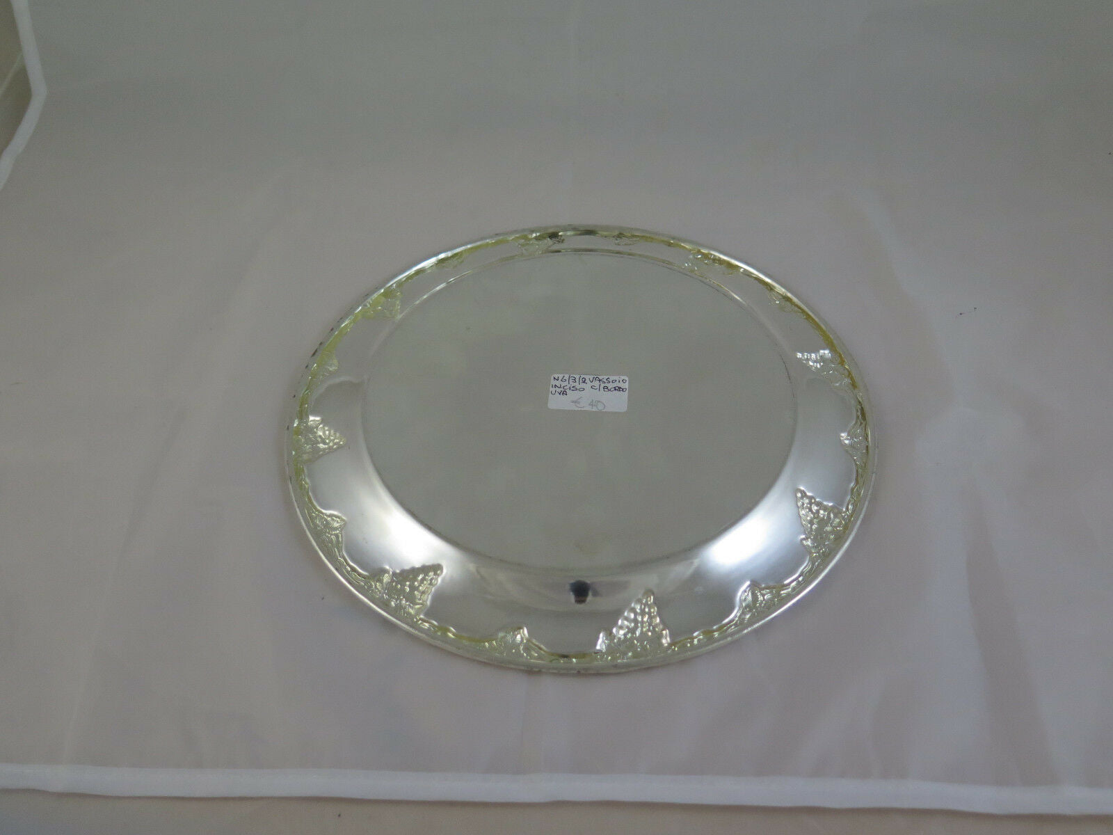 ANTICO PIATTO ARGENTATO DECORATO MOTIVI FLOREALI ART NOUVEAU TRALCI D'UVA R60