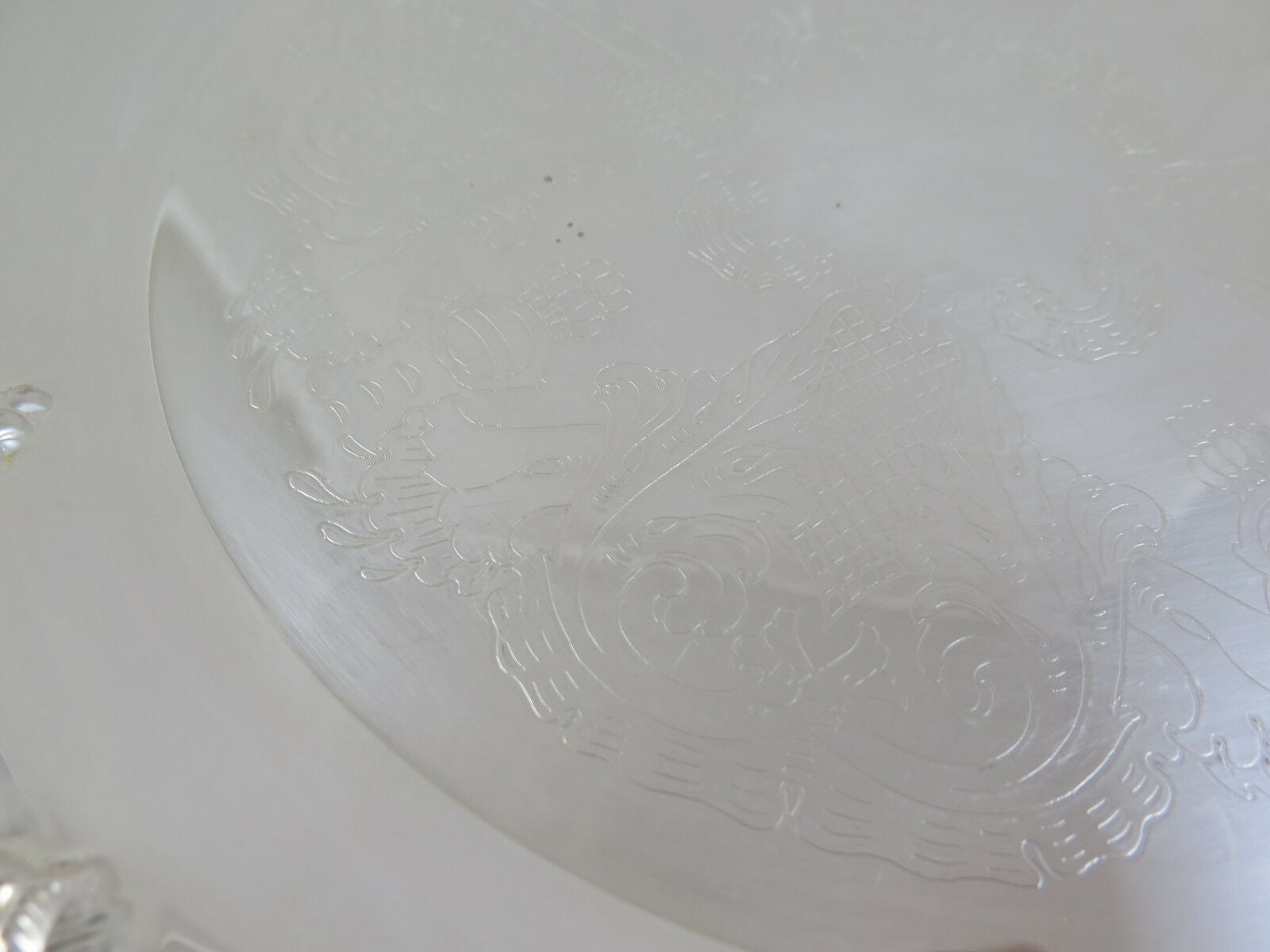 Antico piatto in solido metallo argentato primo '900 finemente lavorato a sbalzo sui bordi con motivi floreali.