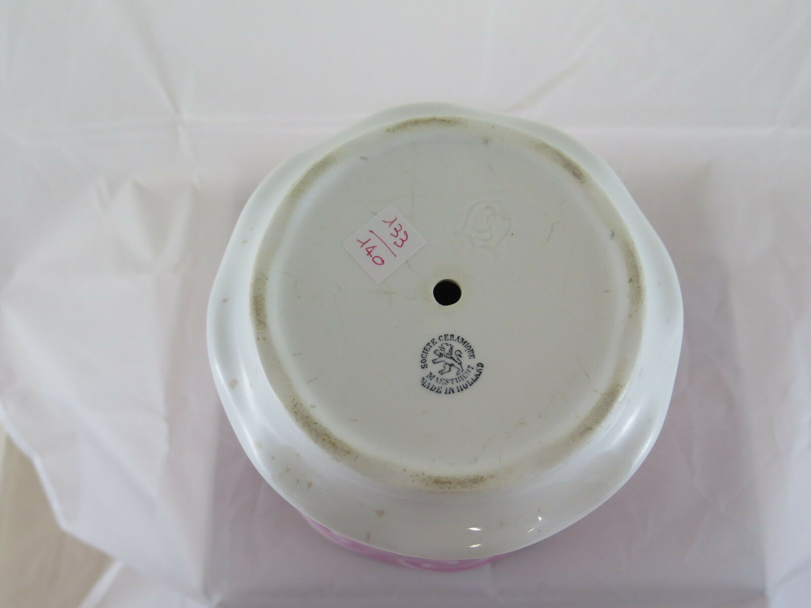 ANTICO VASO IN CERAMICA SOCIETE' CERAMIQUE MAESTRICHT CON SOTTOVASO 1900 R52