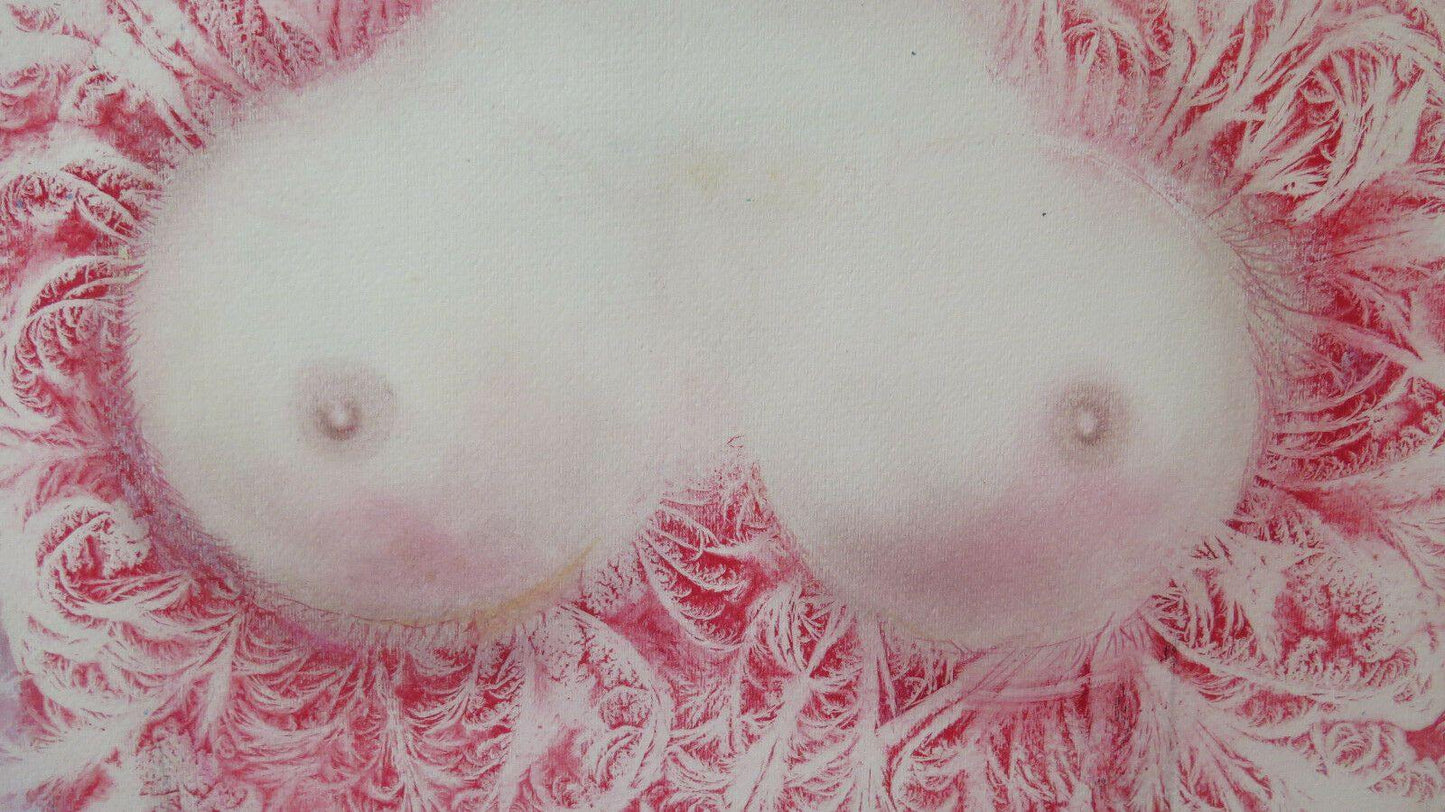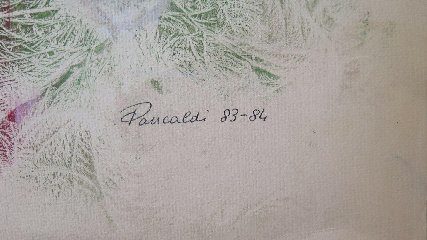 Soggetto: ritratto di giovane donna con seno nudo dagli accesi colori. Firmato Pancaldi e datato '83-'84.