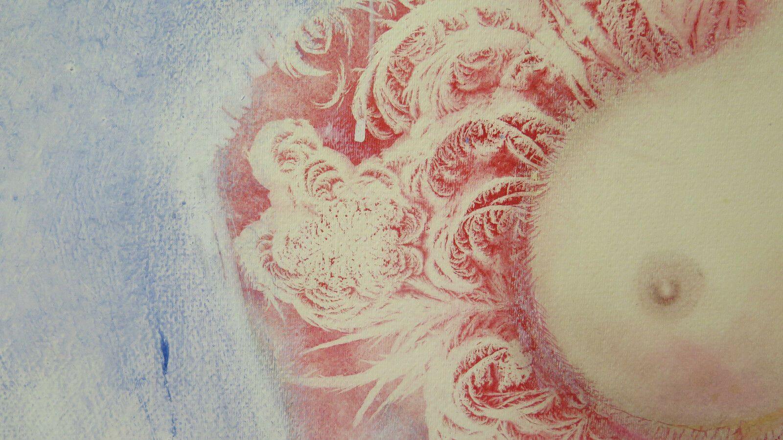 ARTE CONTEMPORANEA NEW WAVE QUADRO DIPINTO A TECNICA MISTA NUDO FEMMINILE P33.6