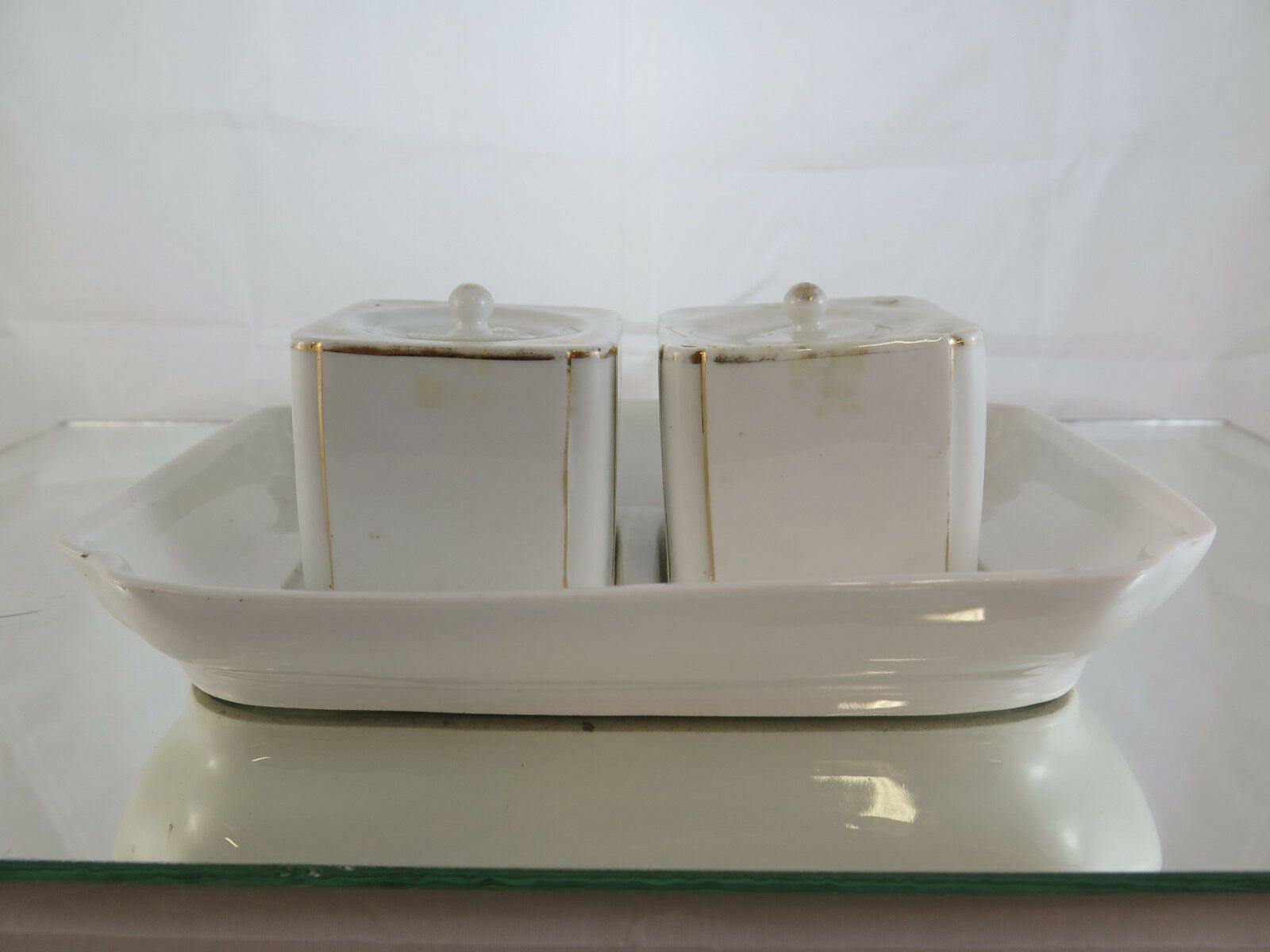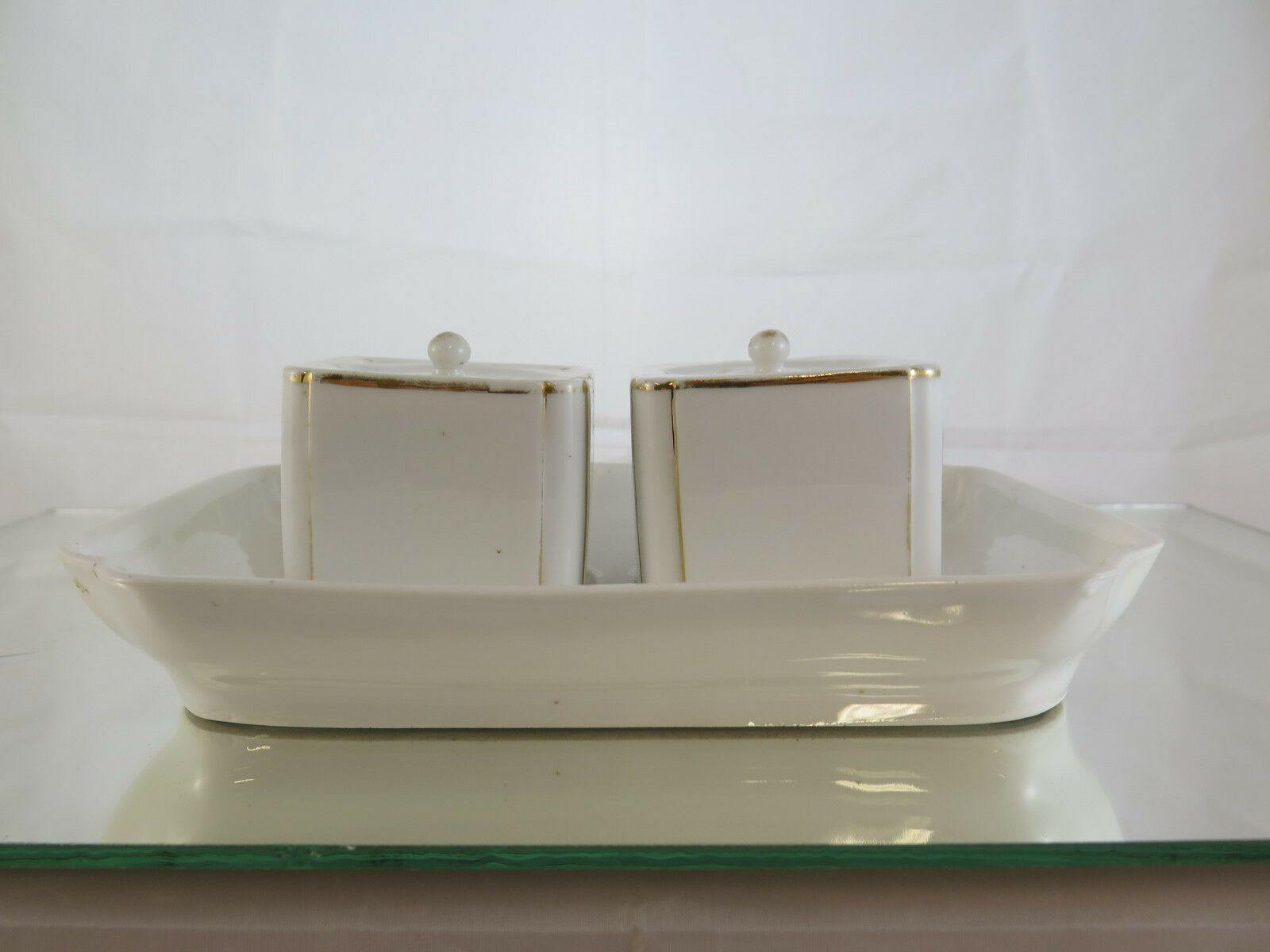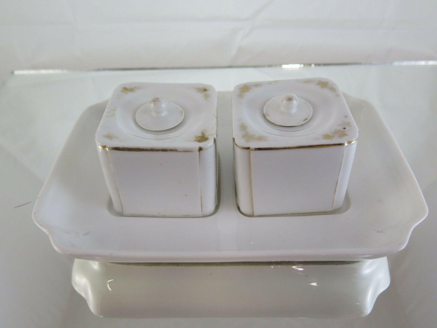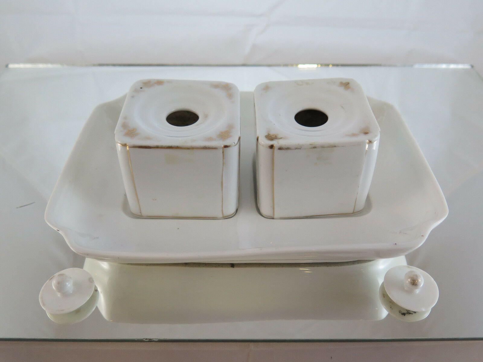 Elegante calamaio in porcellana bianca con dettagli dorati.