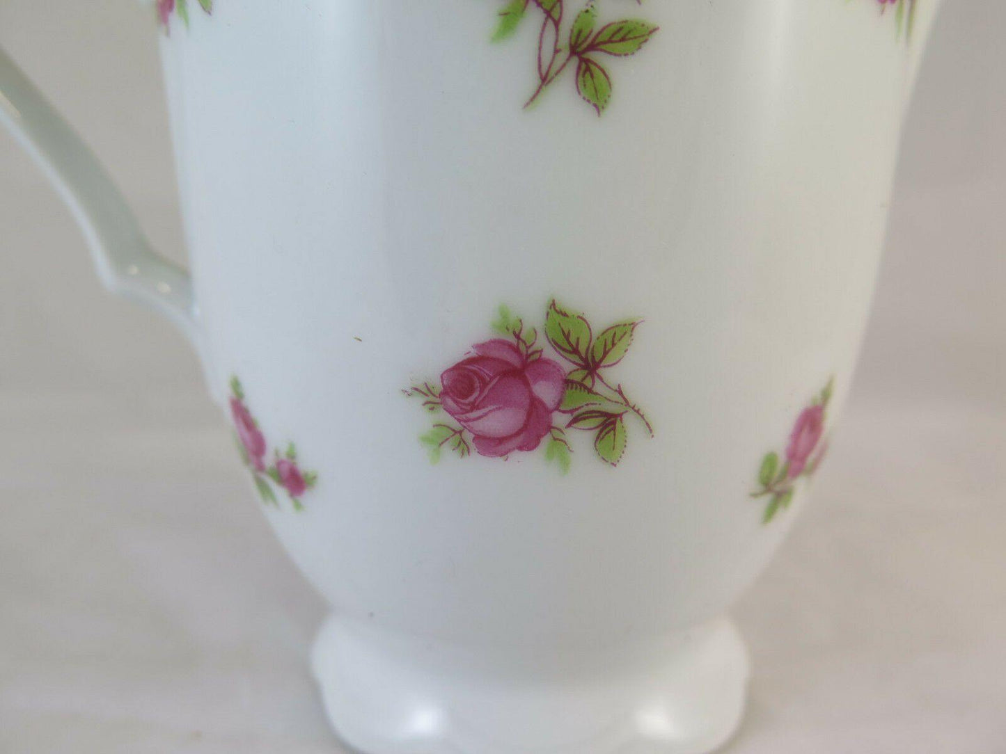 Elegante brocca in porcellana della manifattura Marie Luise Bavaria decorata con motivi floreali su base bianca.