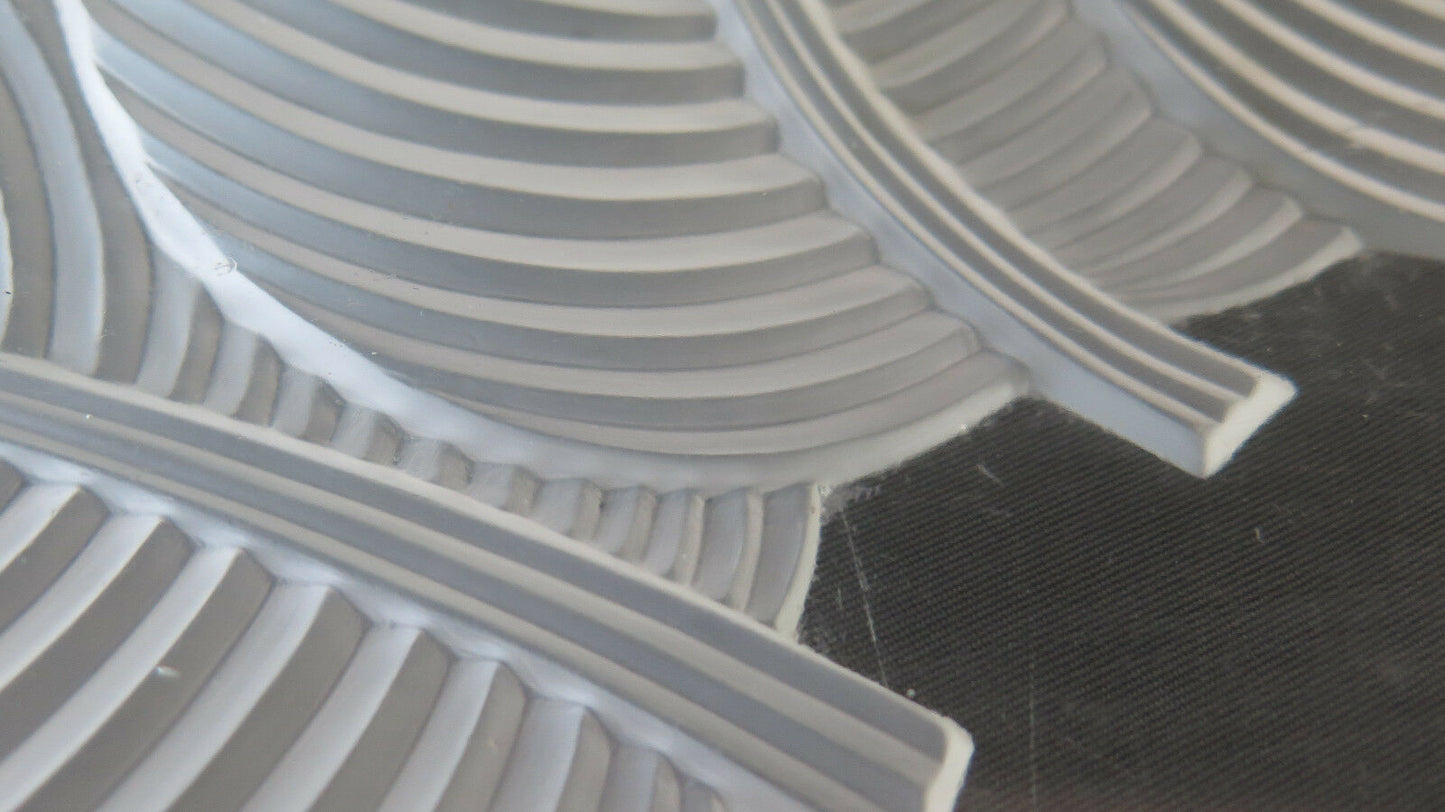 Raffinato centrotavola in vetro decorato con motivi floreali.