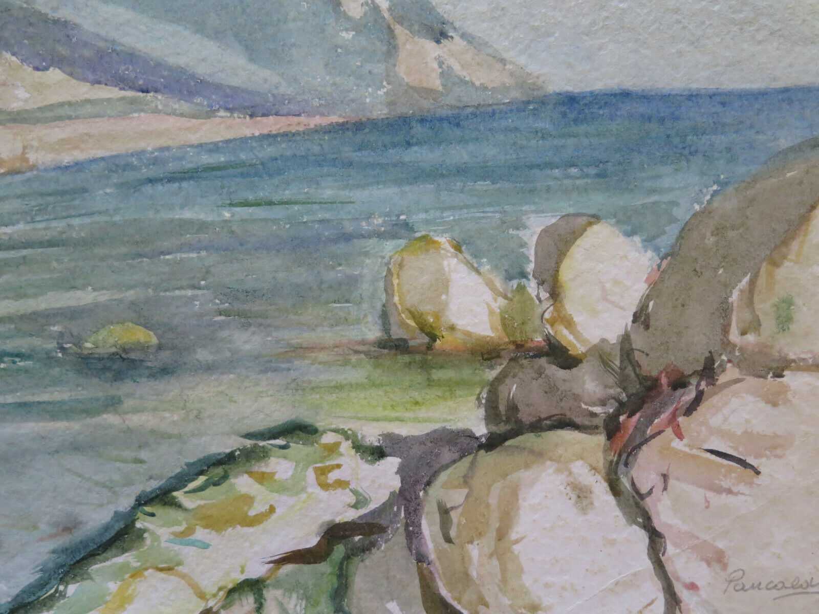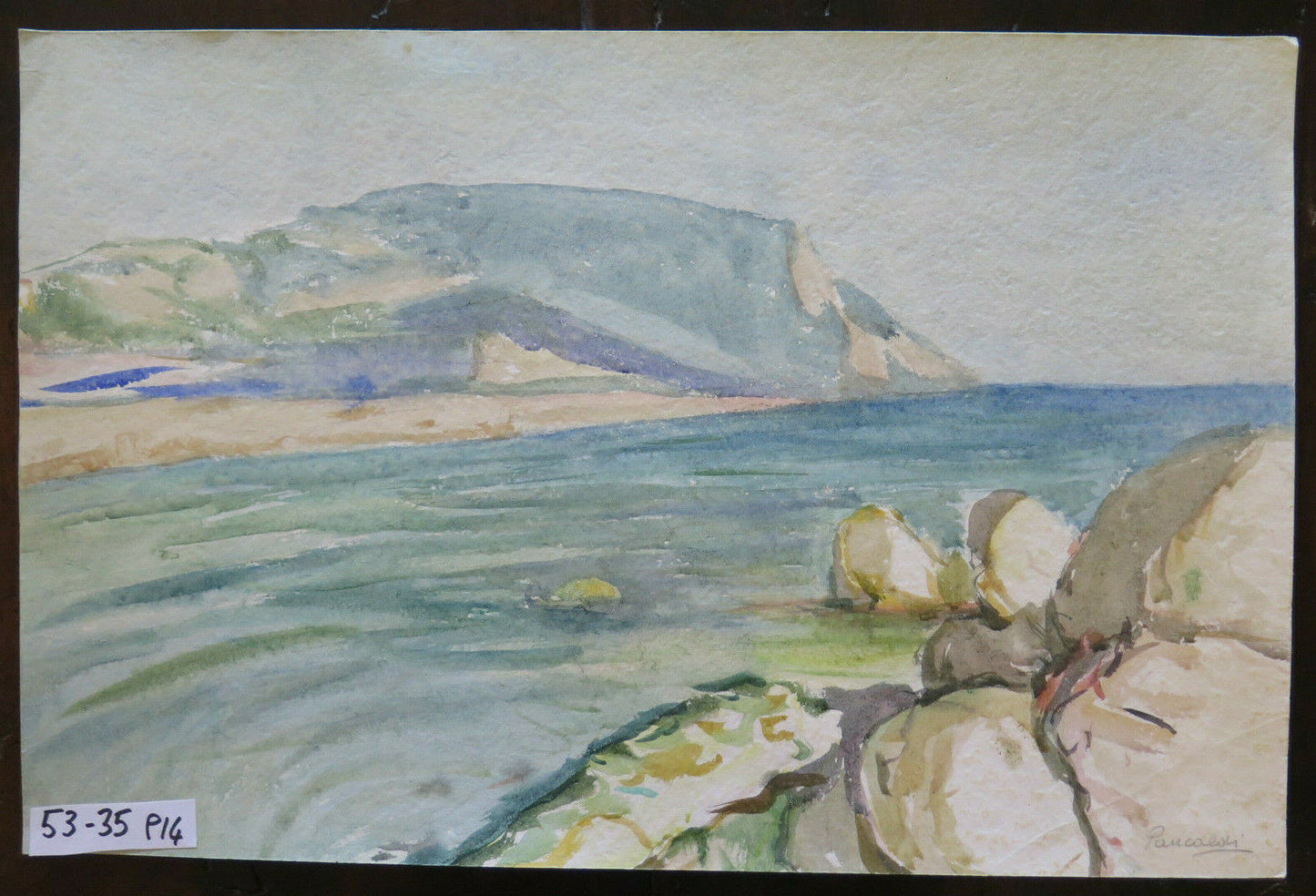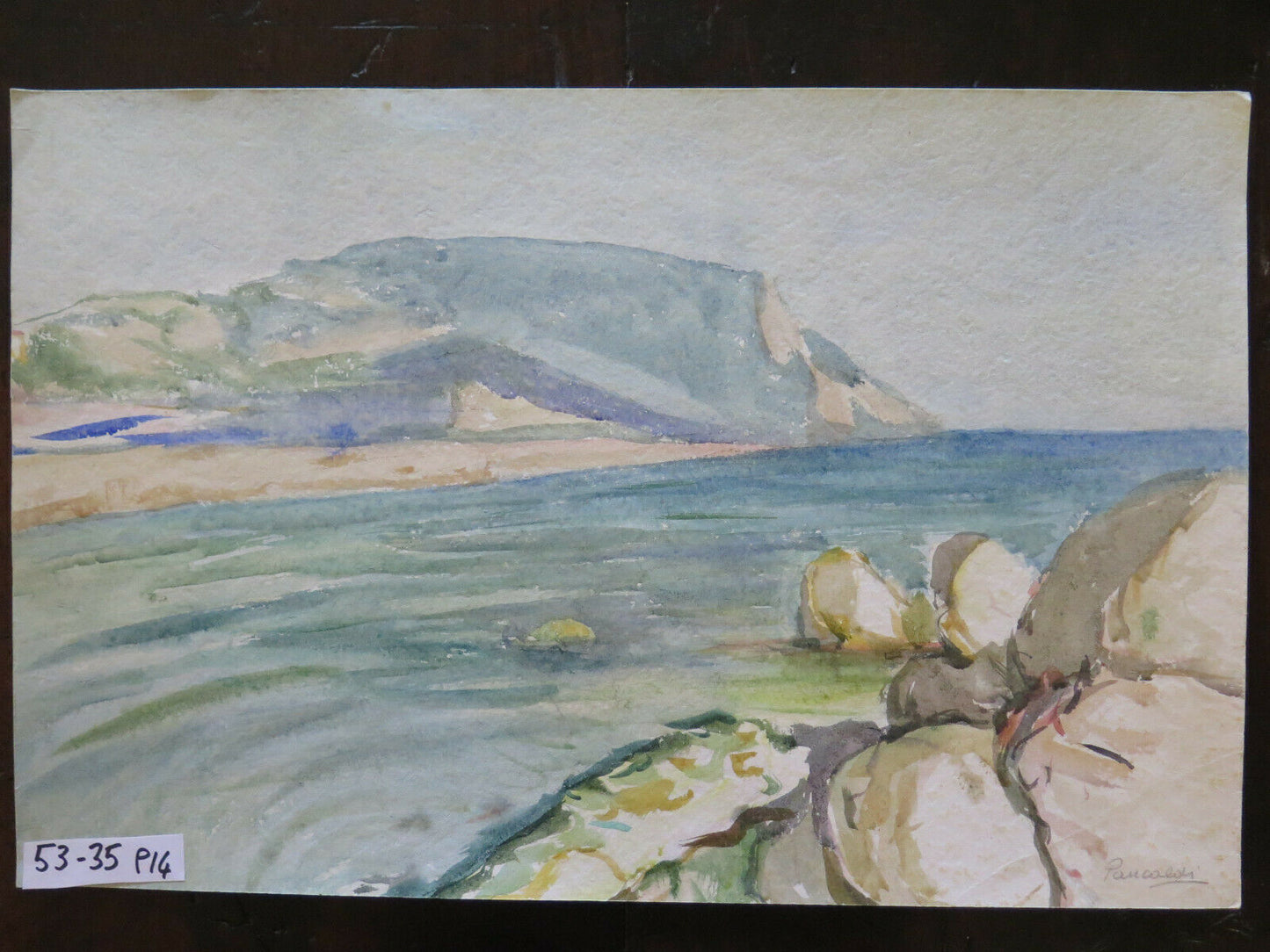 DIPINTO AD ACQUERELLO OPERA DEL PITTORE G. PANCALDI VEDUTA PAESAGGIO DI MARE P14
