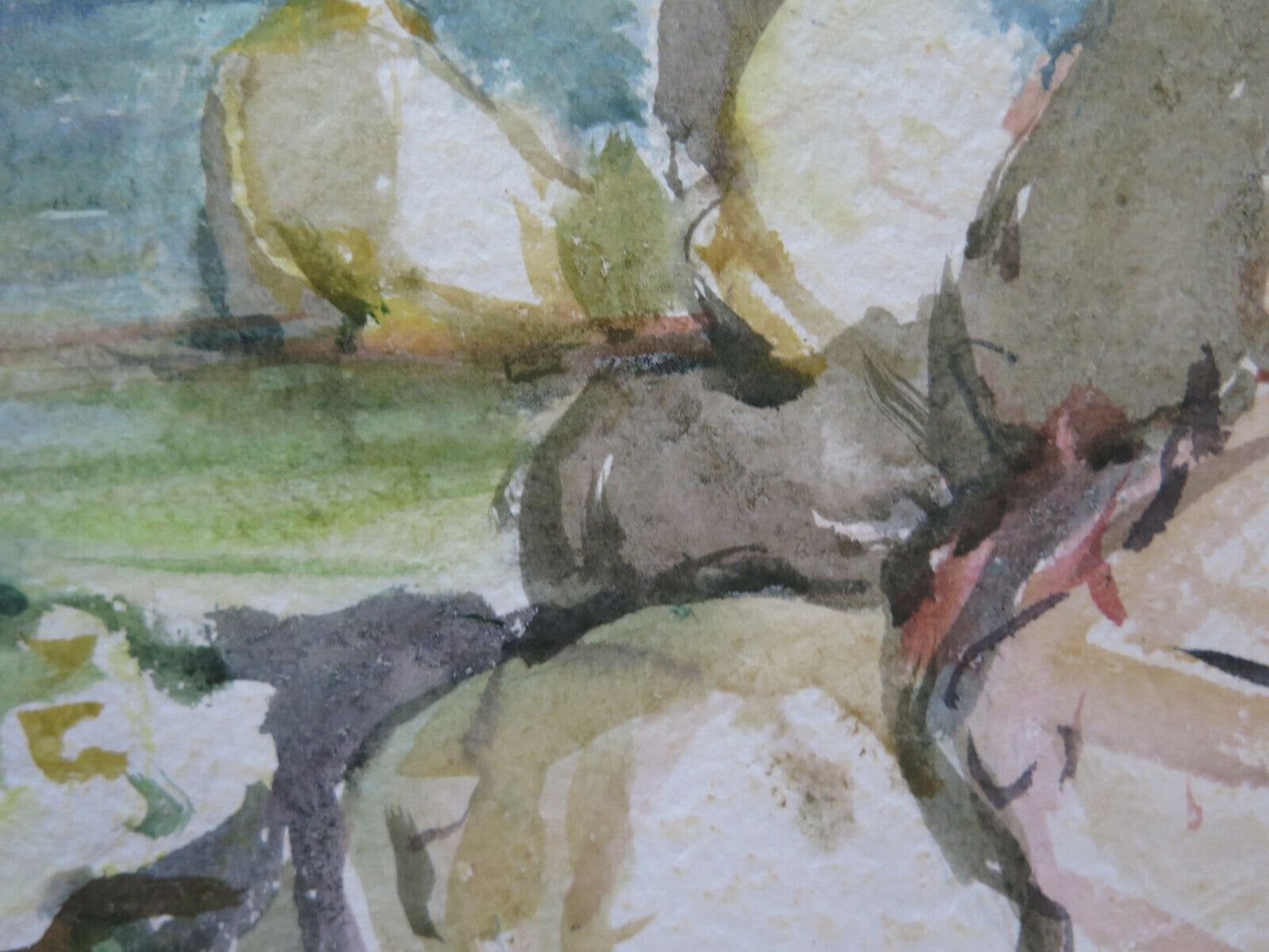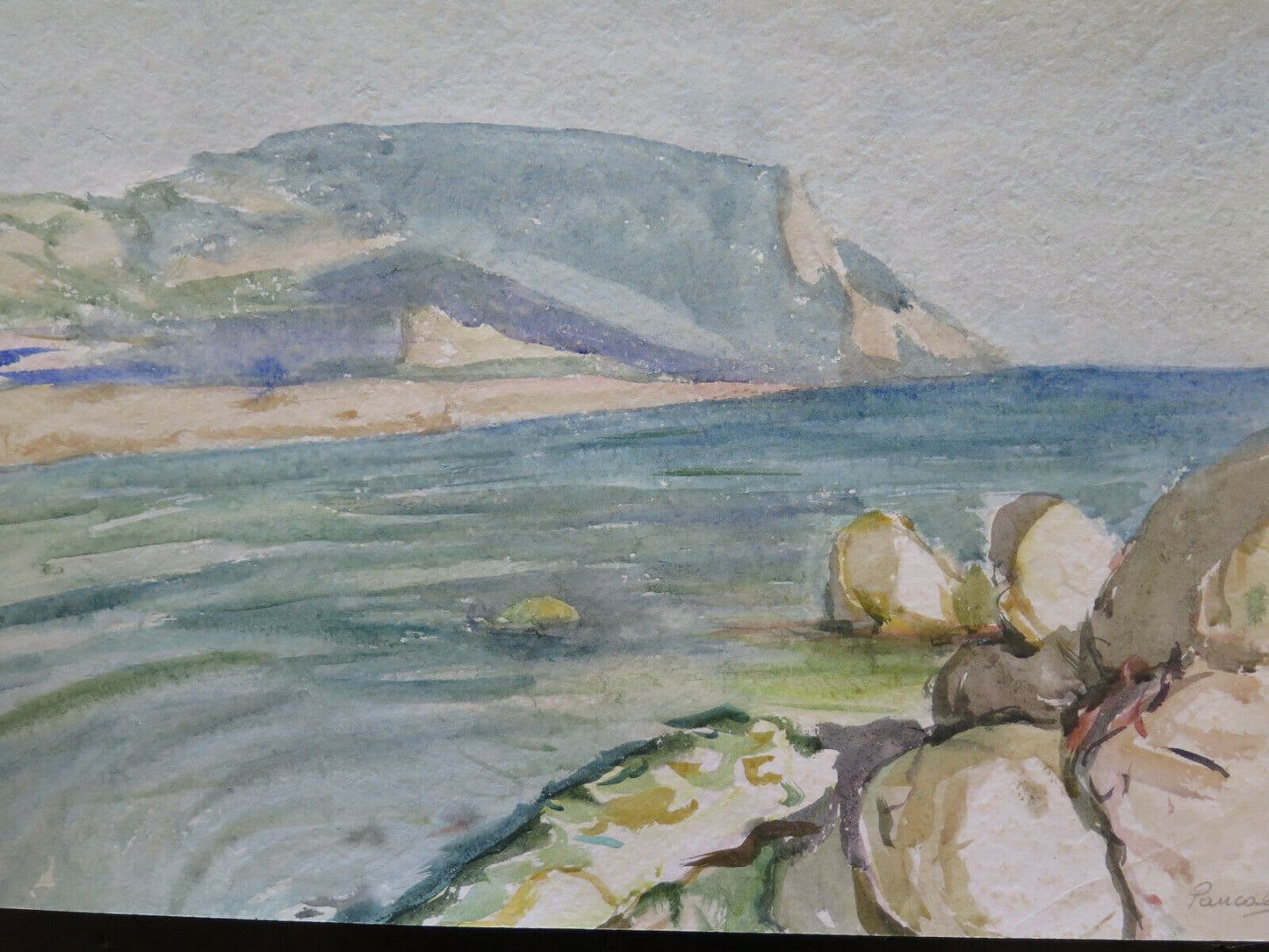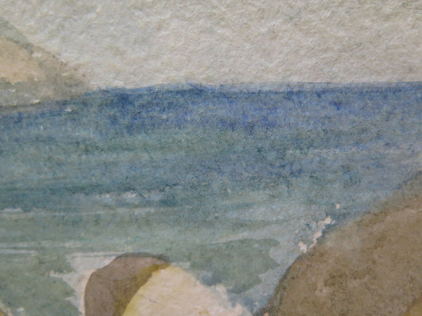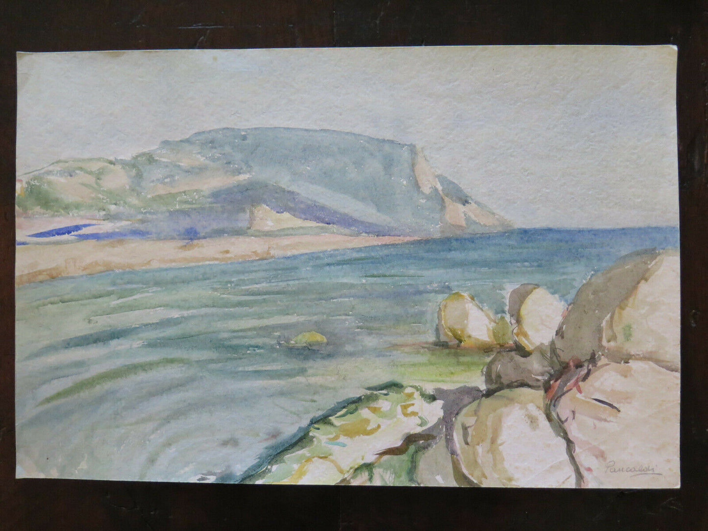 DIPINTO AD ACQUERELLO OPERA DEL PITTORE G. PANCALDI VEDUTA PAESAGGIO DI MARE P14