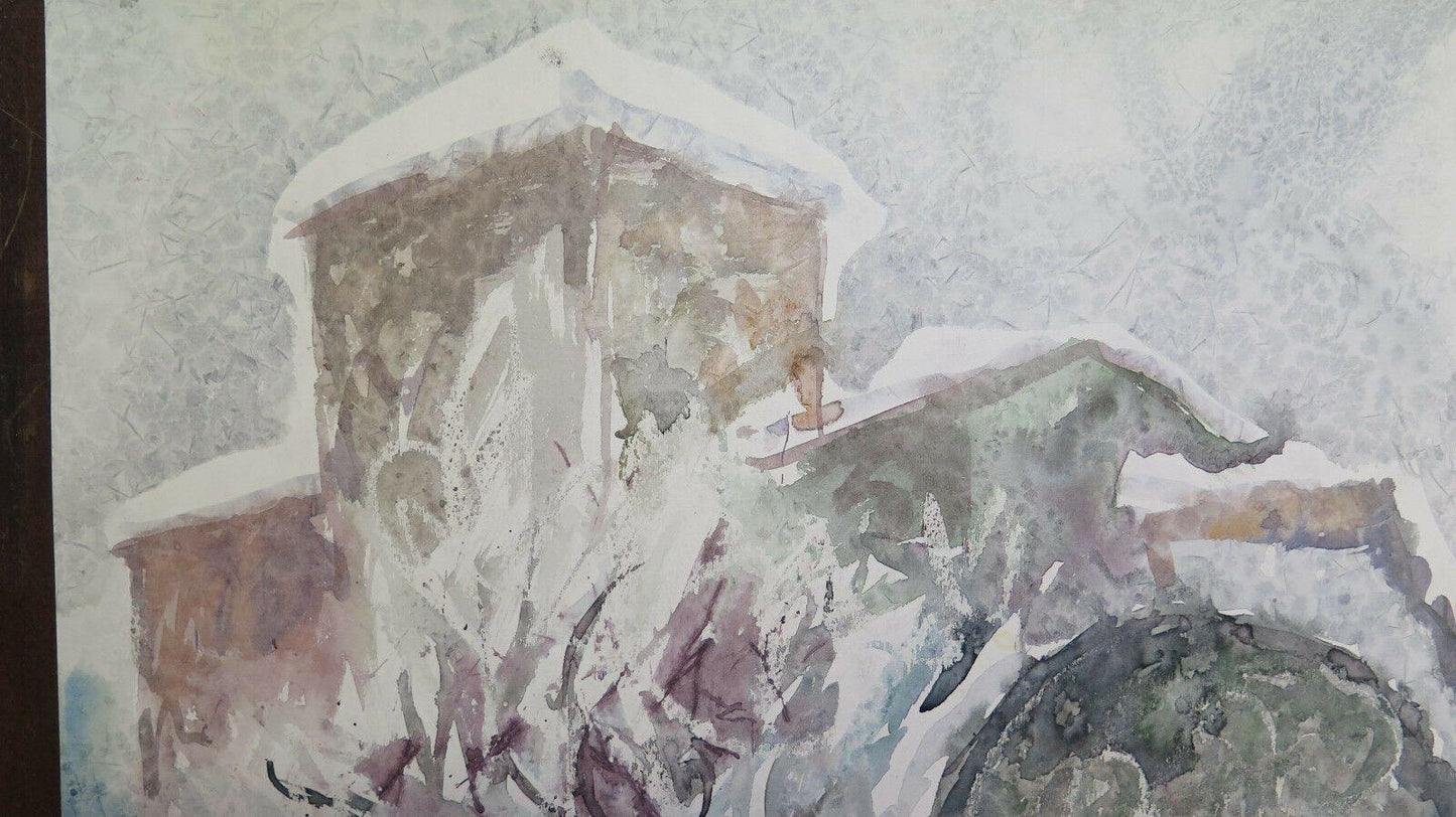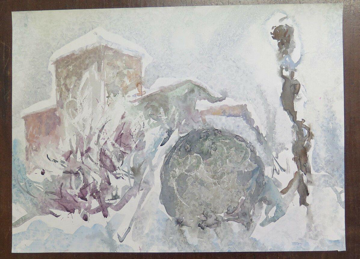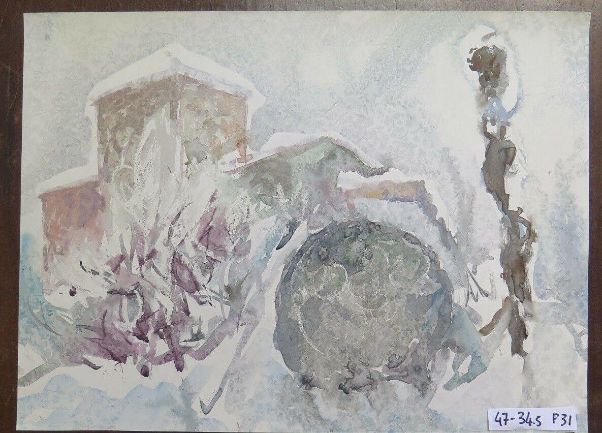 DIPINTO AD ACQUERELLO VINTAGE REALIZZATO CON TECNICA SPERIMENTALE DEL GELO P31