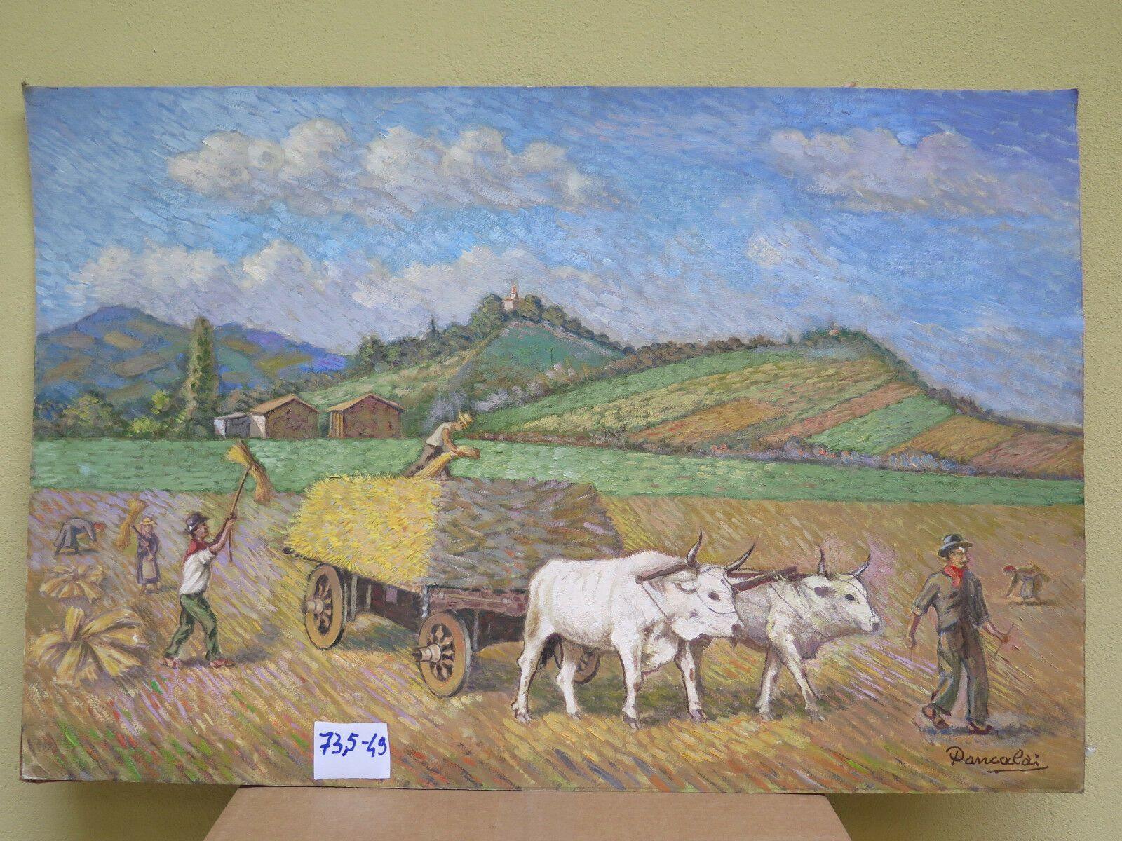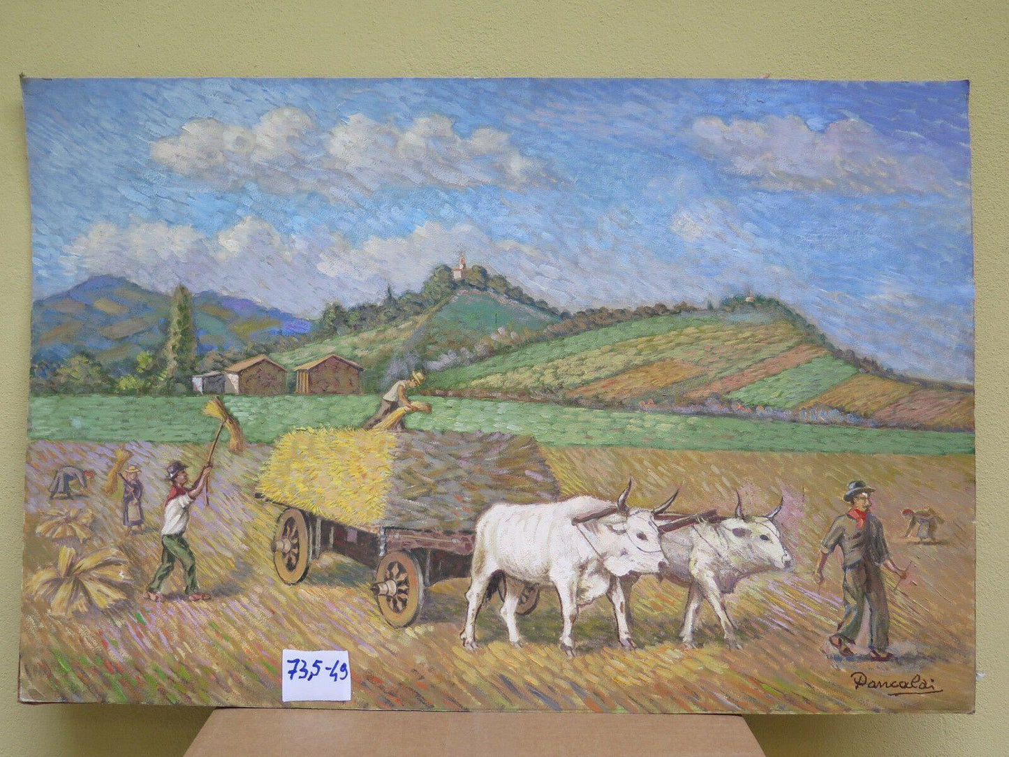 Autore: Gaetano Pancaldi (1922-2014) Piumazzo di Castelfranco Emilia (MO). La rappresentazione della natura e della vita quotidiana erano tra i soggetti preferiti dall'artista che è stato molto attivo e conosciuto nel modenese a causa della sua attività di grafico cartellonista ed alle numerose mostre realizzate. Pittore instancabile, Pancaldi ha lavorato fino agli ultimi anni con immutata passione.
