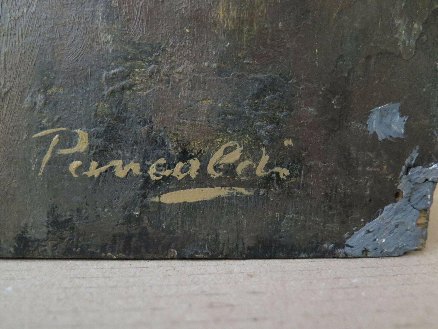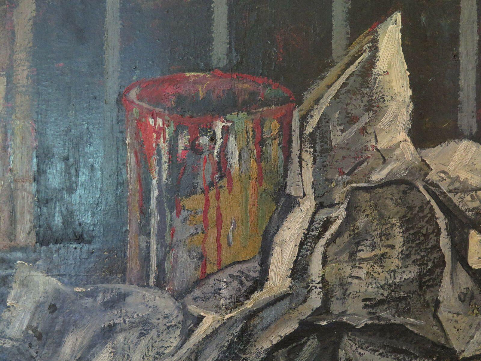 DIPINTO ANTICO OLIO SU TAVOLA 1960 CIRCA INTERNO STUDIO DEL PITTORE FIRMATO p5