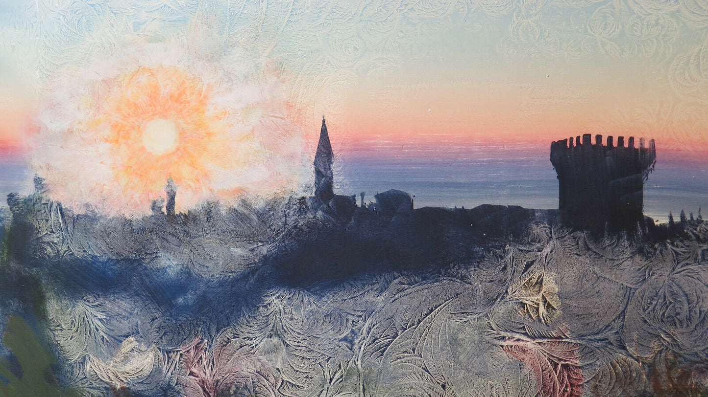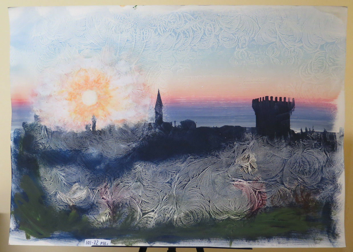 Supporto e tecnica: acquerello ed olio su carta. Realizzato con la "tecnica del gelo" per ottenere l'effetto ghiaccio in alcuni aree della superficie pittorica, tale tecnica consisteva nel porre al freddo vero e proprio il dipinto ancora fresco per poi lavorarlo successivamente. Questo effetto è stato inventato dal pittore Pancaldi e ricorre in molti suoi lavori soprattutto nella fase della maturità.