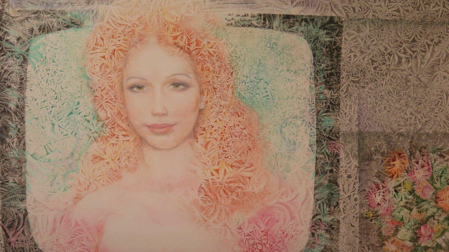 Soggetto: ritratto femminile di un'annunciatrice televisiva che "esce" dal televisore dal gusto pop.