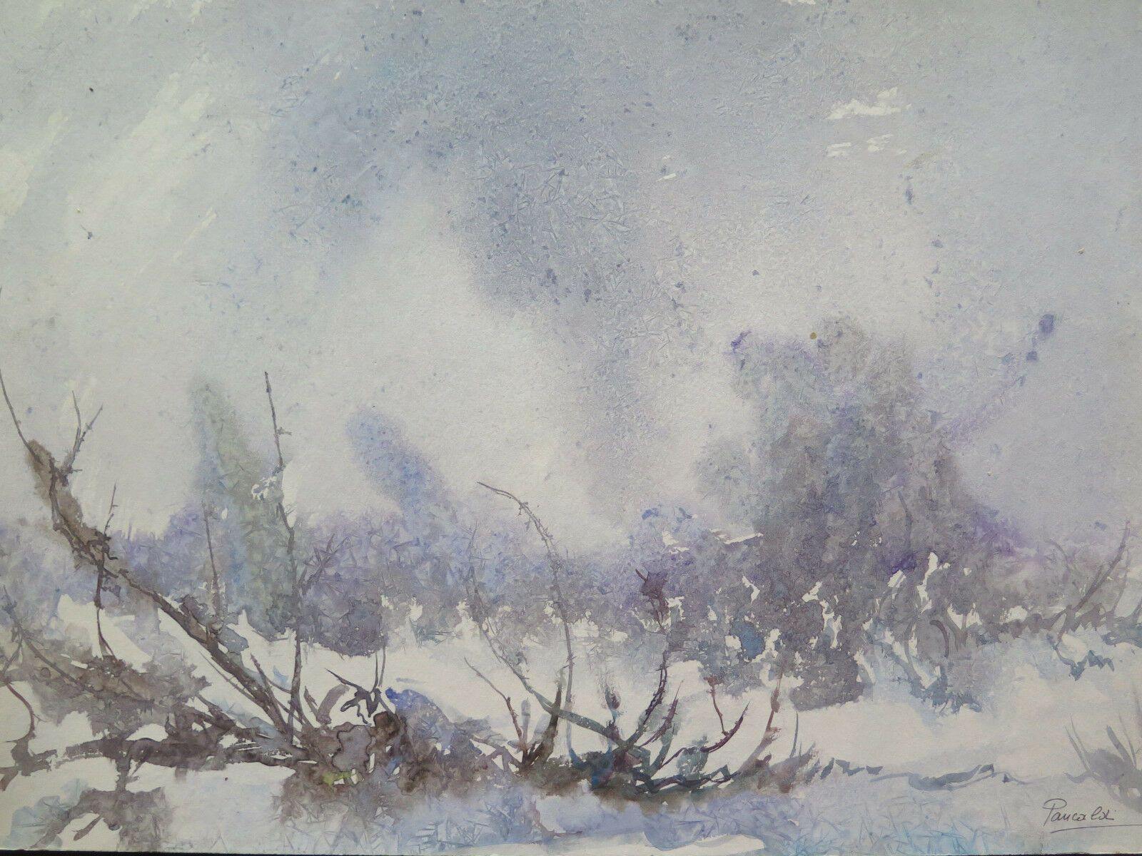 DIPINTO MODERNO SU TAVOLA PAESAGGIO INVERNALE STILIZZATO ANNI SESSANTA p16