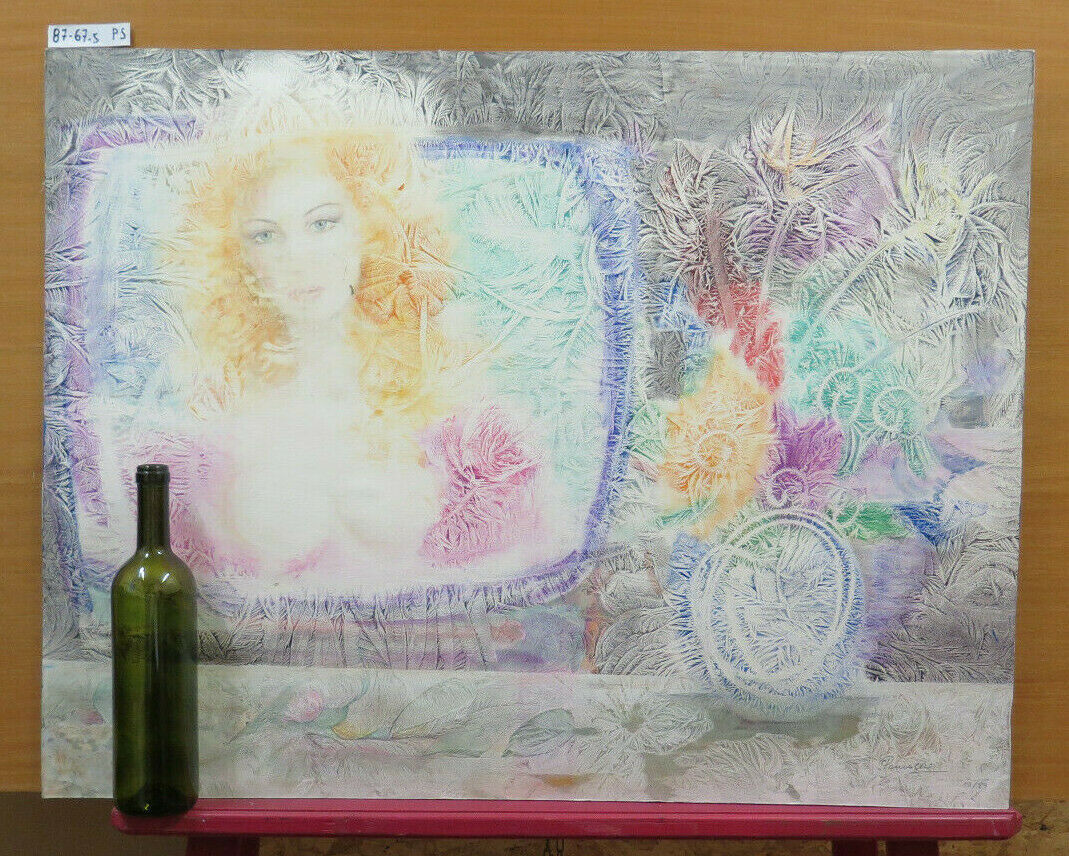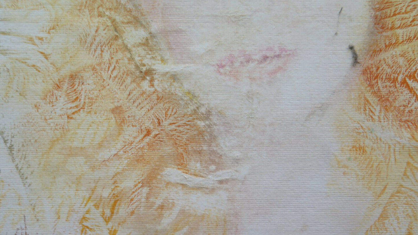 DIPINTO VINTAGE AD ACQUERELLO RITRATTO FEMMINILE DONNA IN TV QUADRO FIRMATO PS