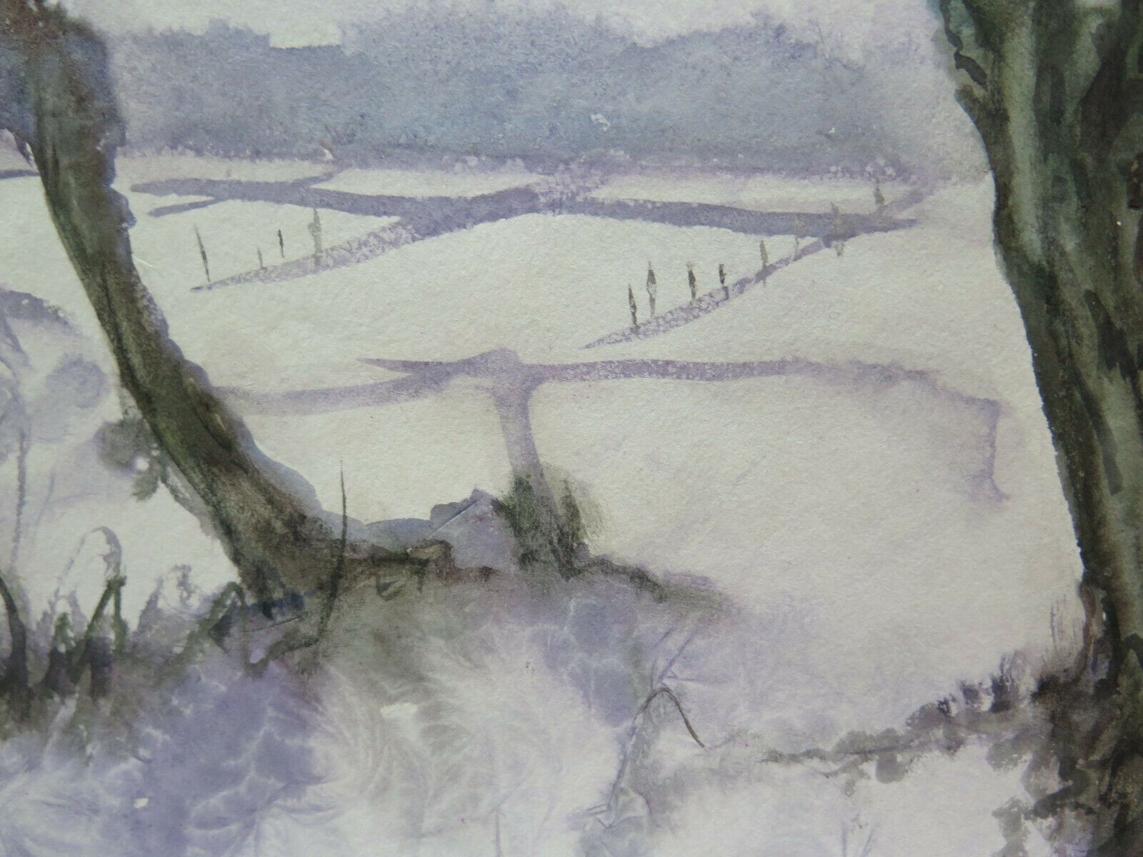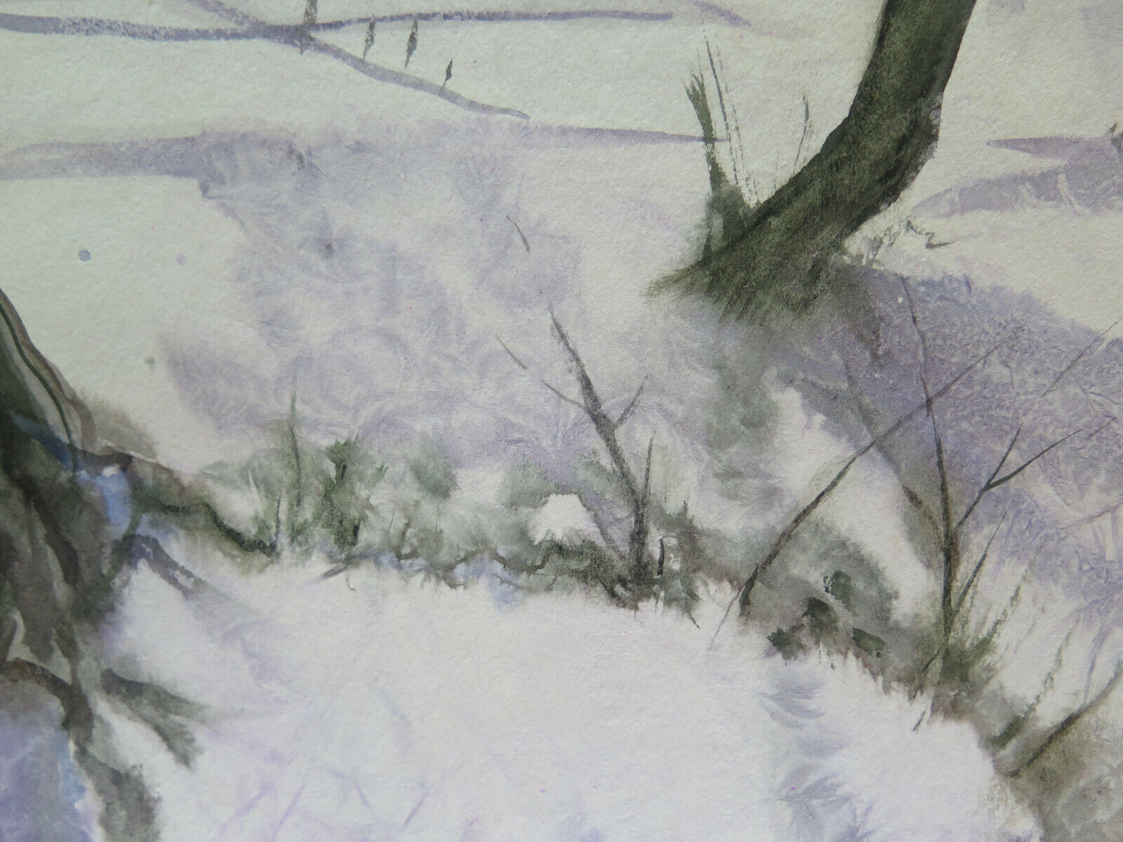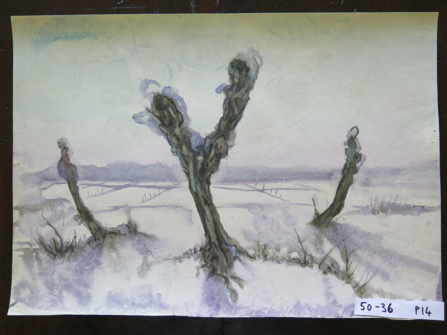 DIPINTO VINTAGE PAESAGGIO INVERNALE INNEVATO DIPINTO CON LA TECNICA DEL GELO P14