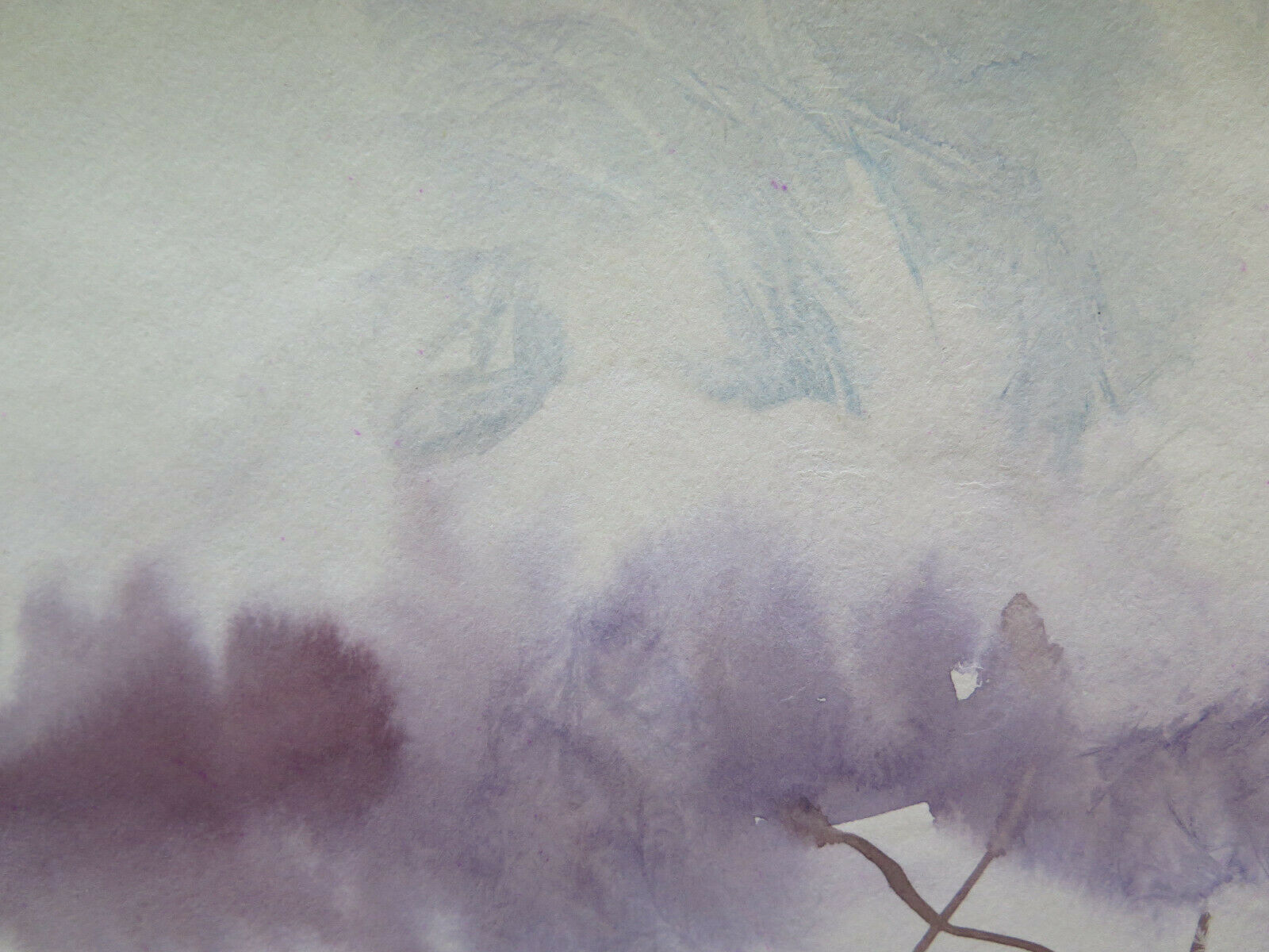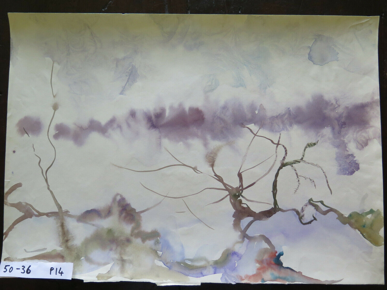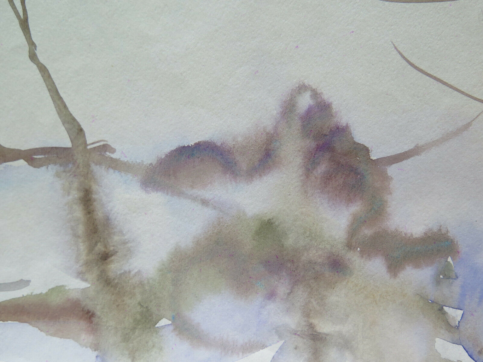 DIPINTO VINTAGE PAESAGGIO INVERNALE ONIRICO QUADRO ACQUERELLO CARTA 50x36 cm P14