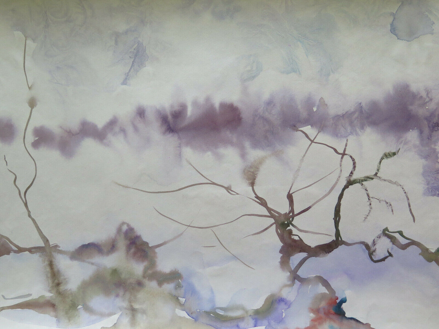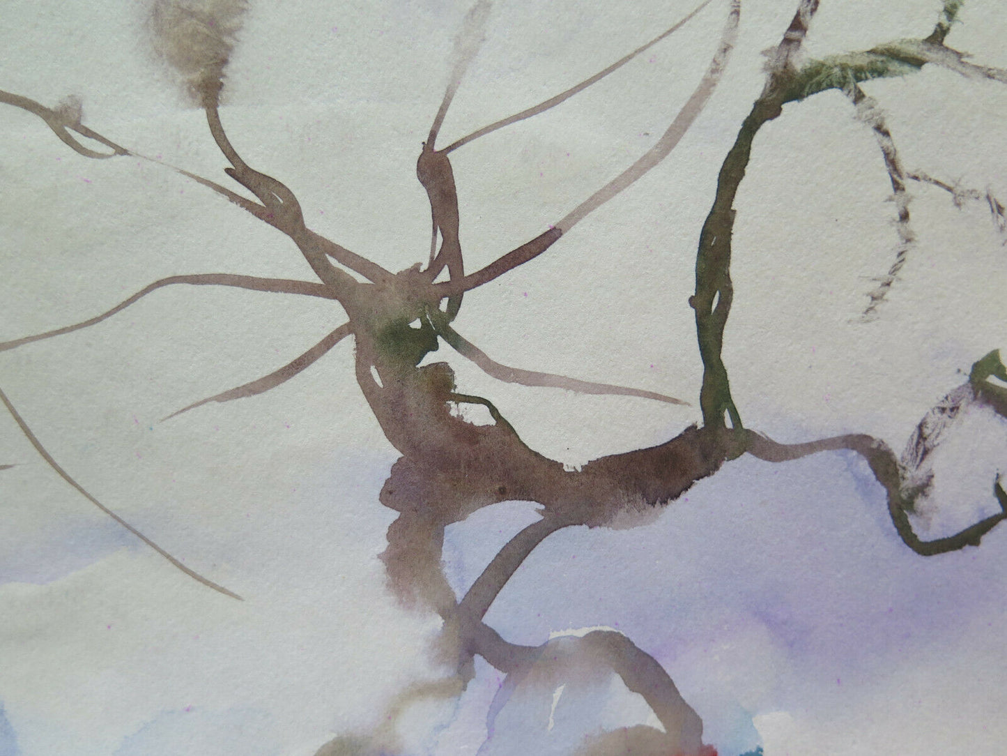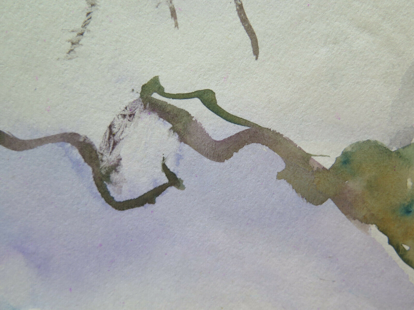 DIPINTO VINTAGE PAESAGGIO INVERNALE ONIRICO QUADRO ACQUERELLO CARTA 50x36 cm P14