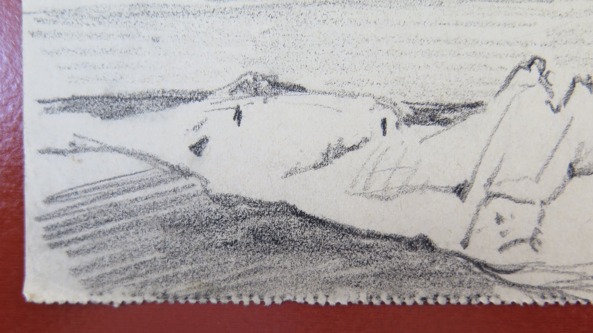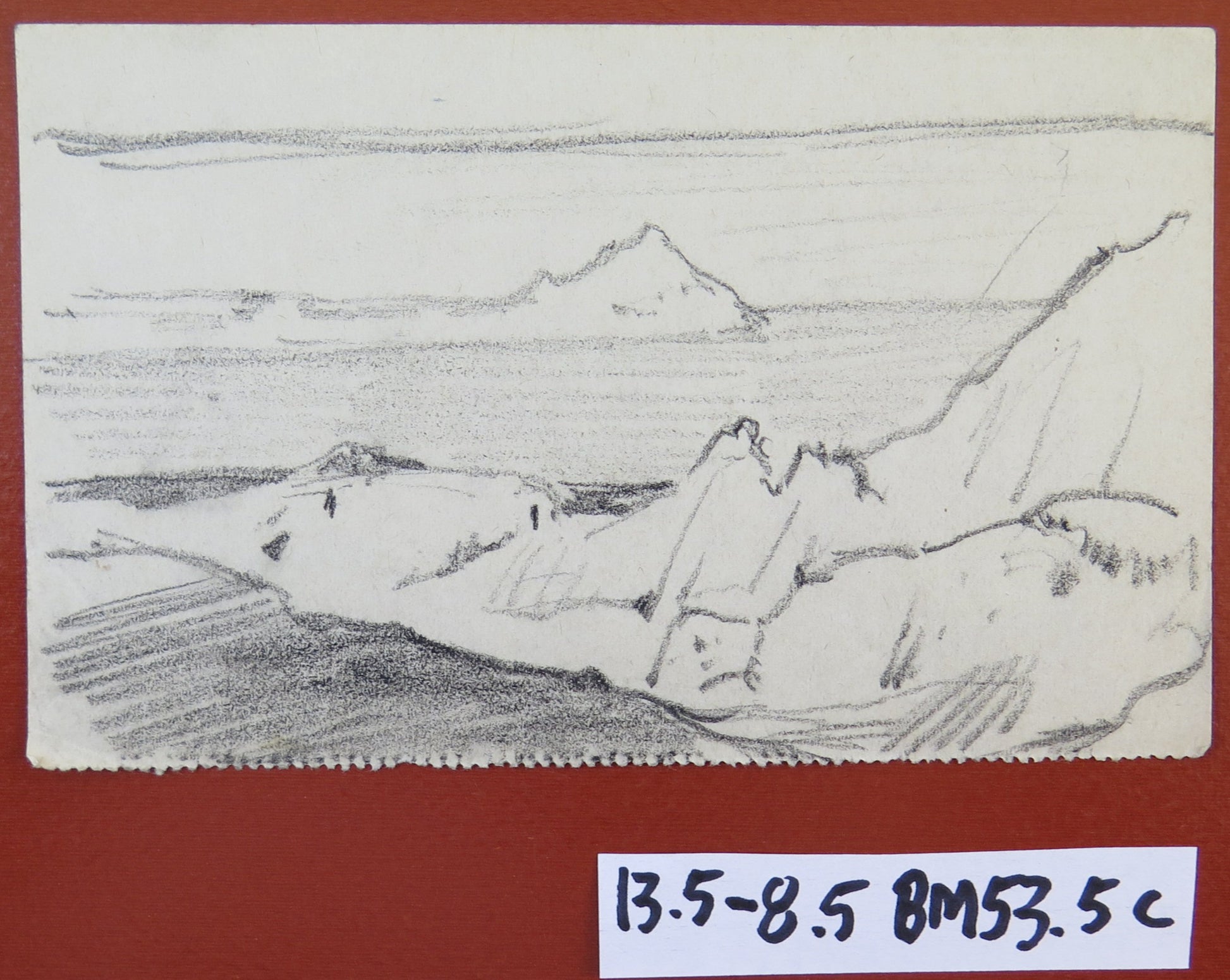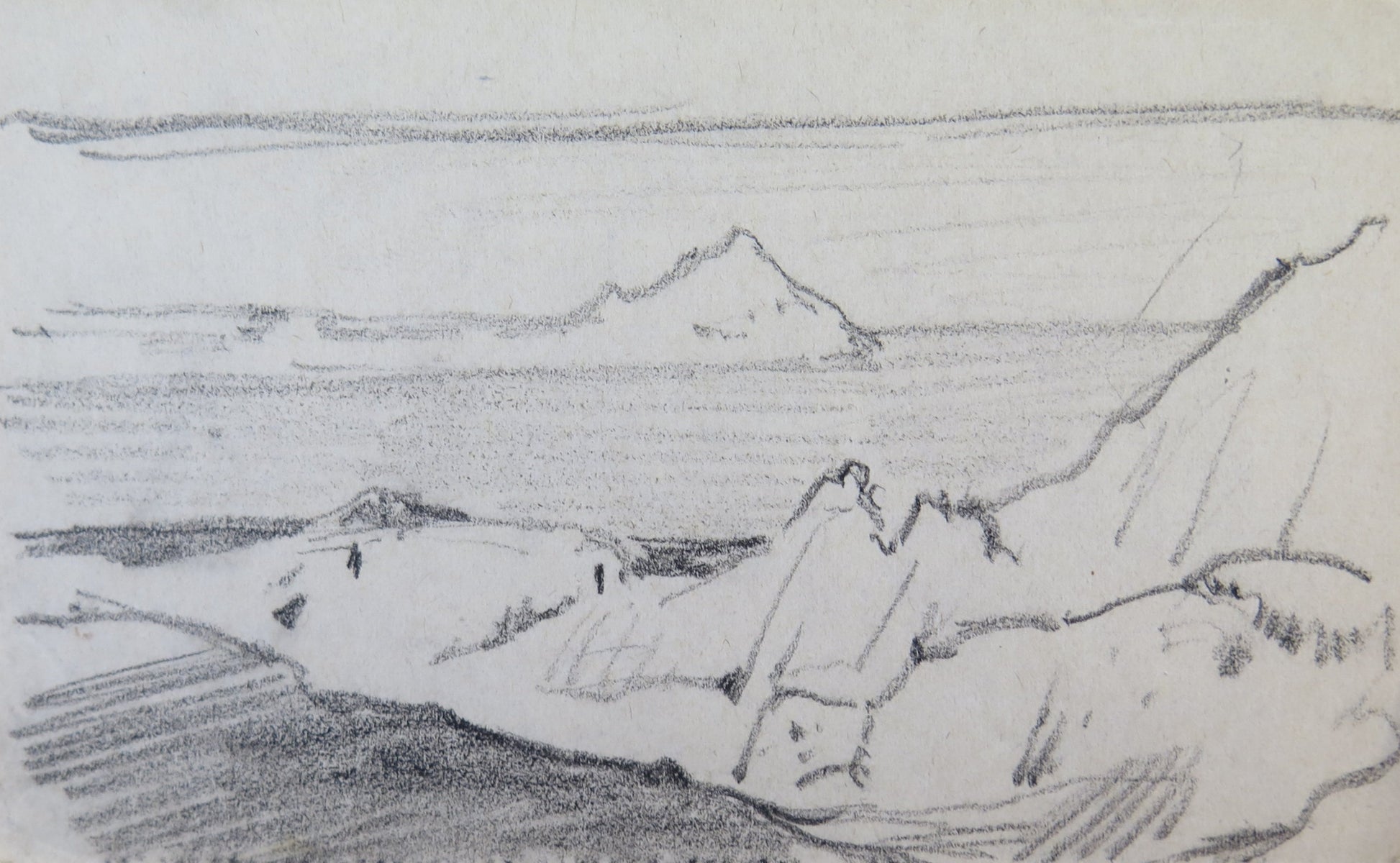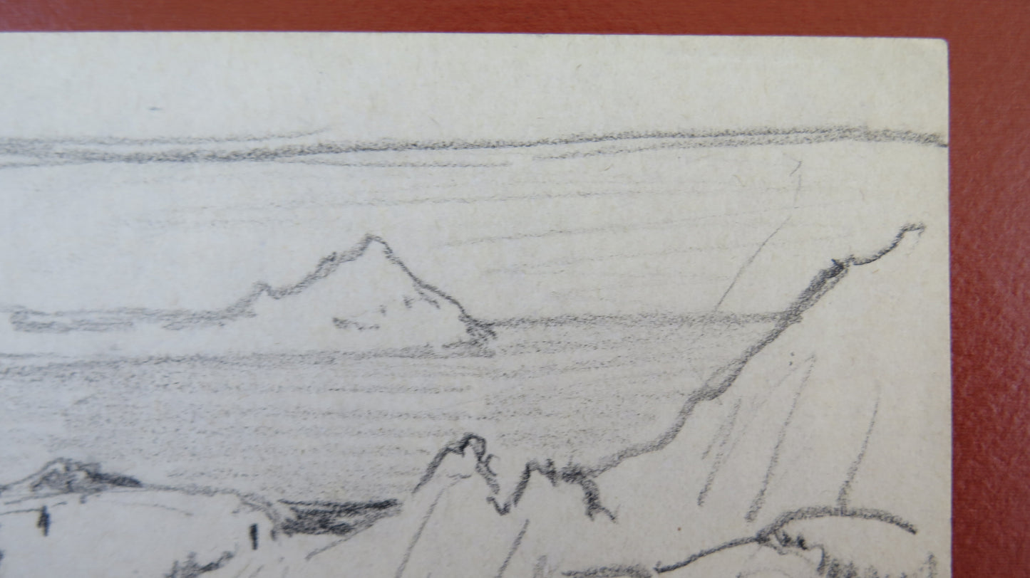 DISEGNO ANTICO BOZZETTO SCHIZZO PAESAGGIO VEDUTA MARE MARINA BM53.5C