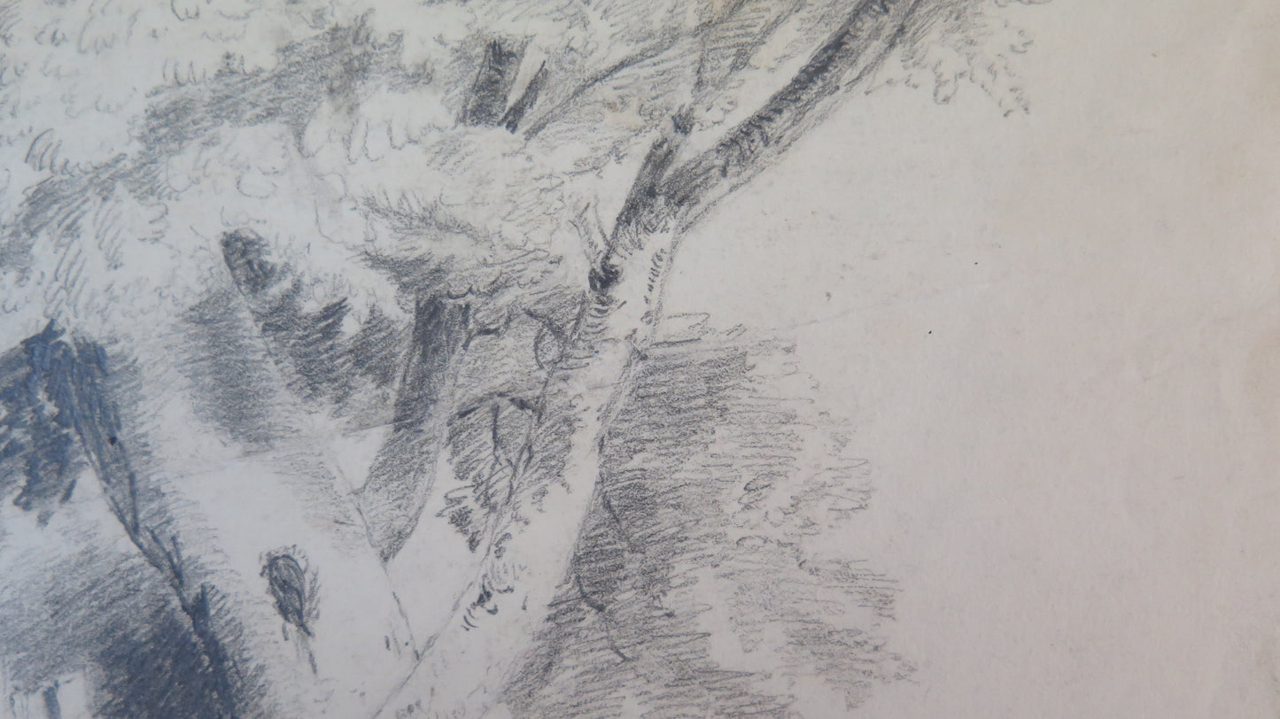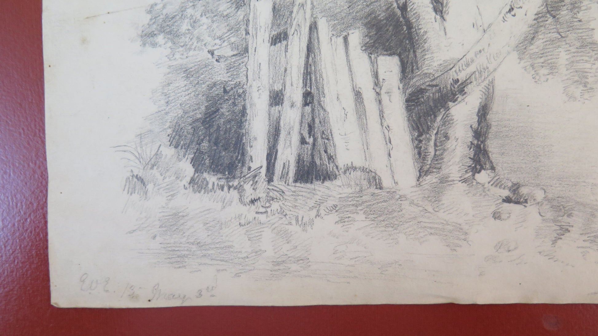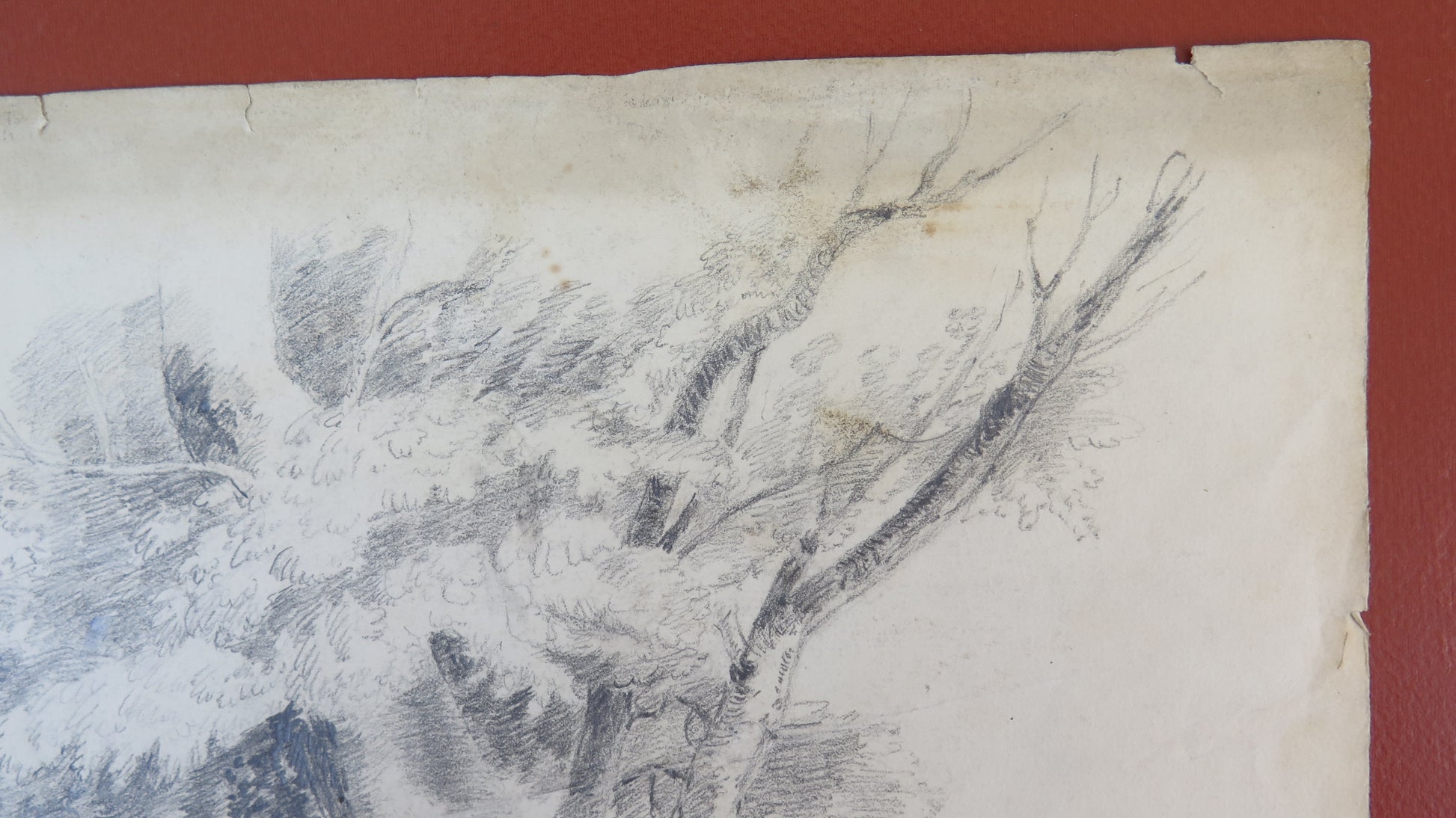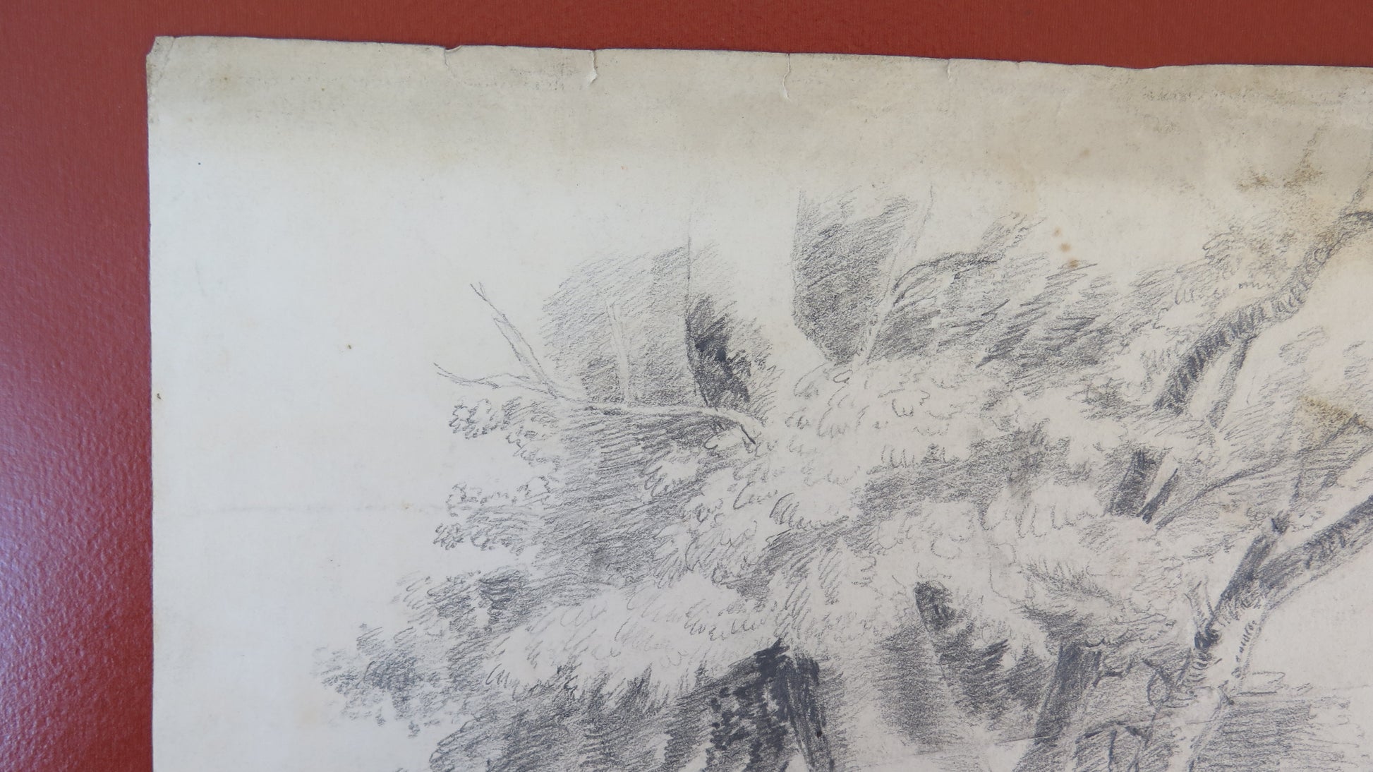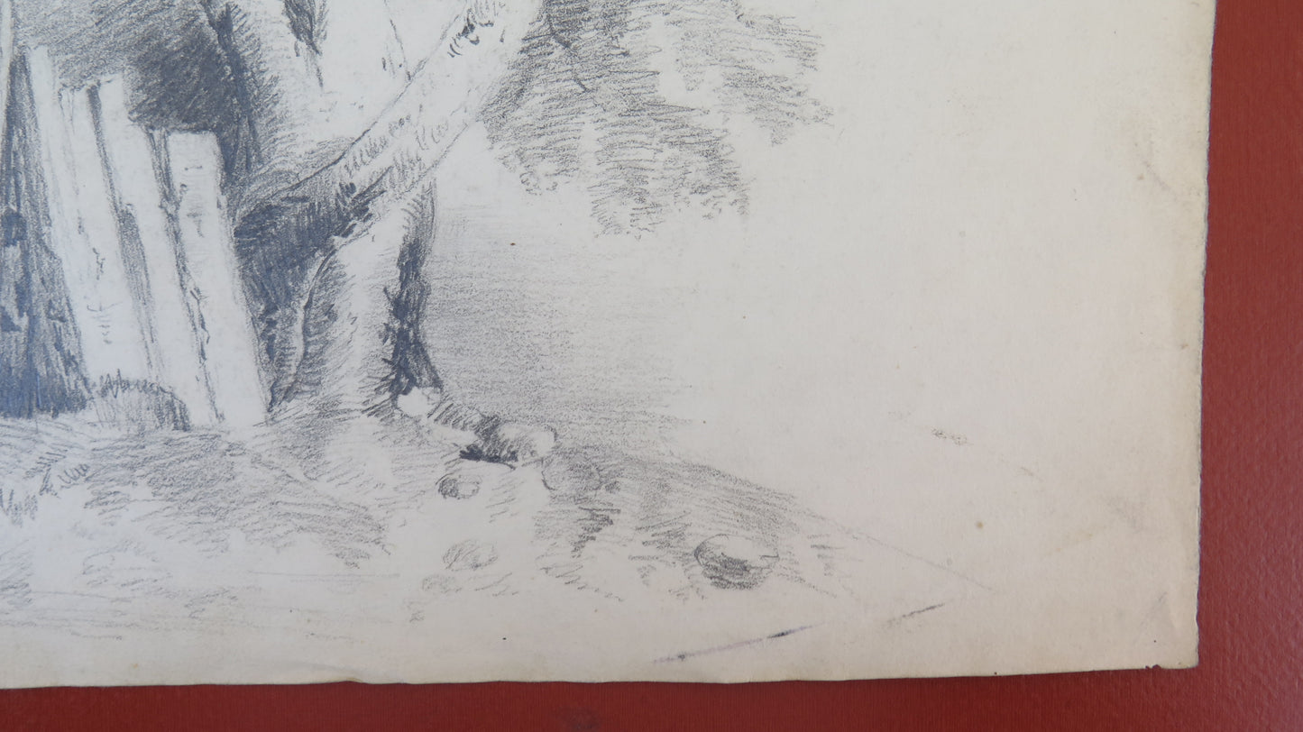 DISEGNO ANTICO MATITA SU CARTA FIRMATO PAESAGGIO BOSCO FRANCIA PRIMO 900 BM53.5F