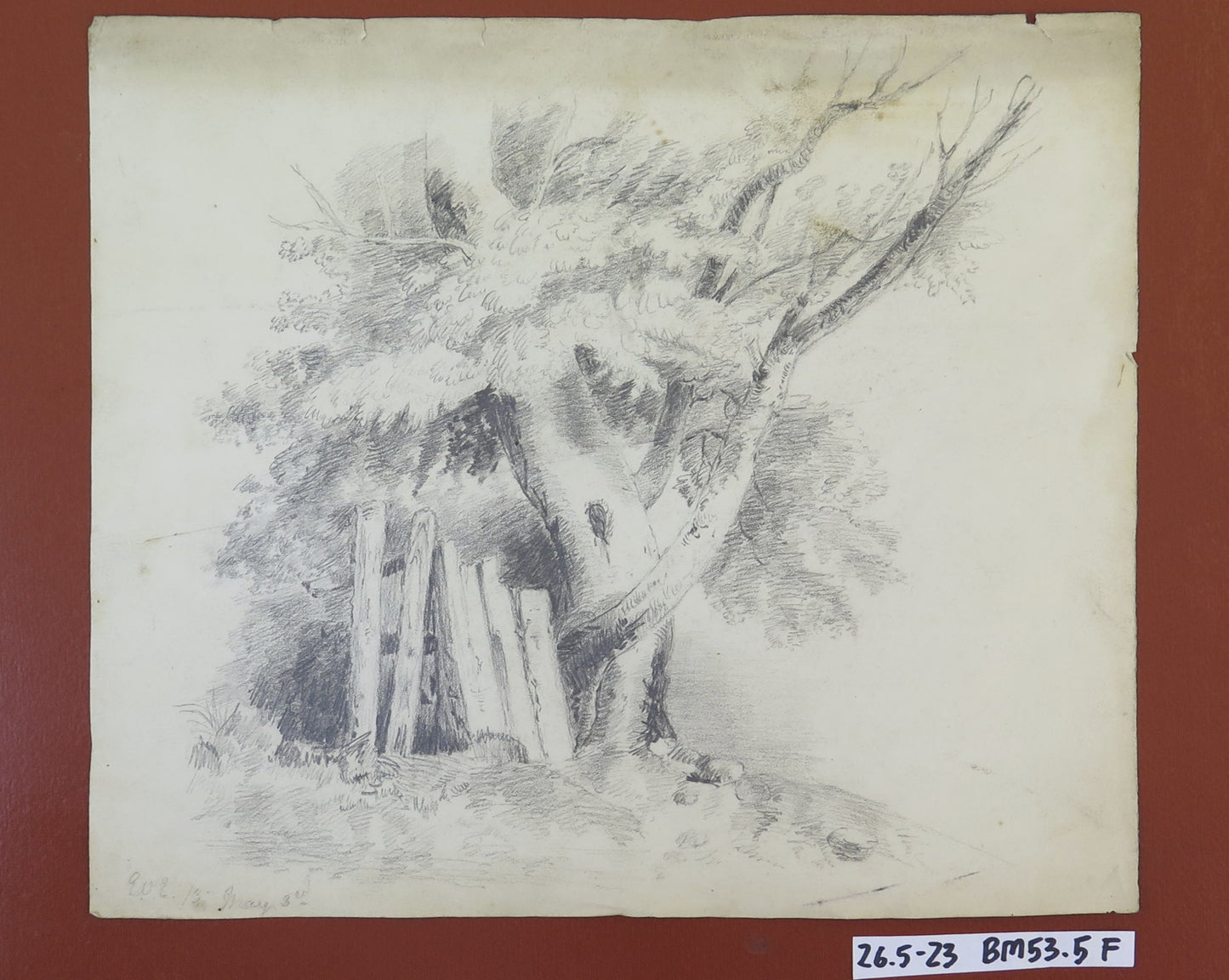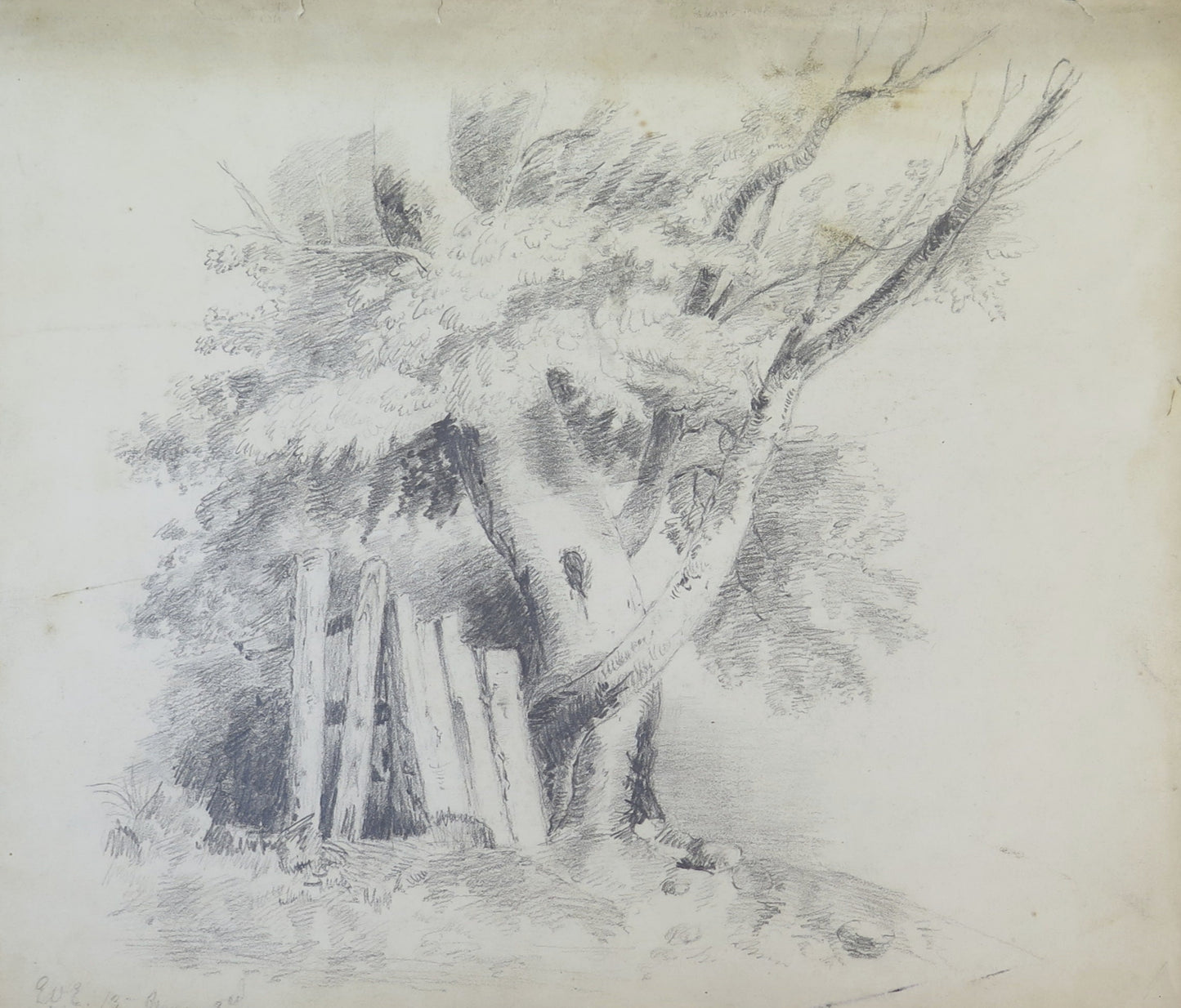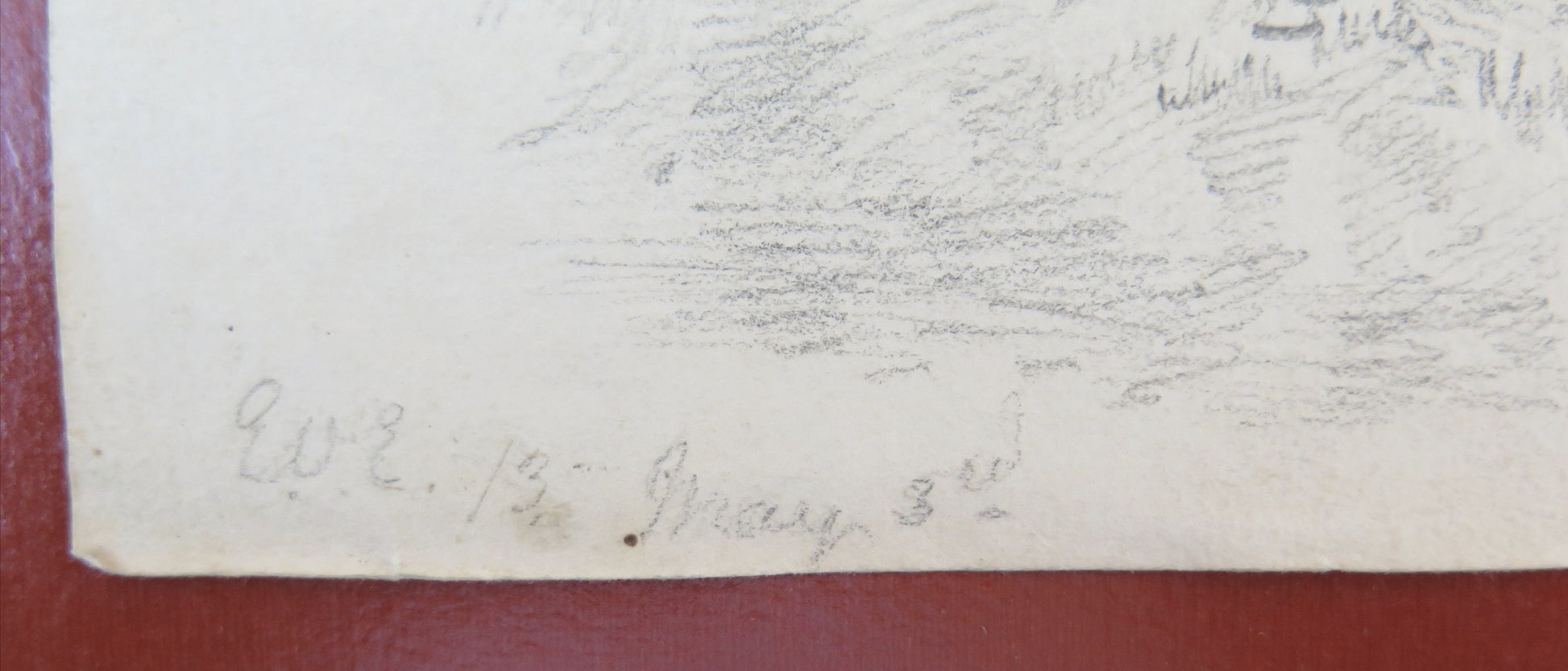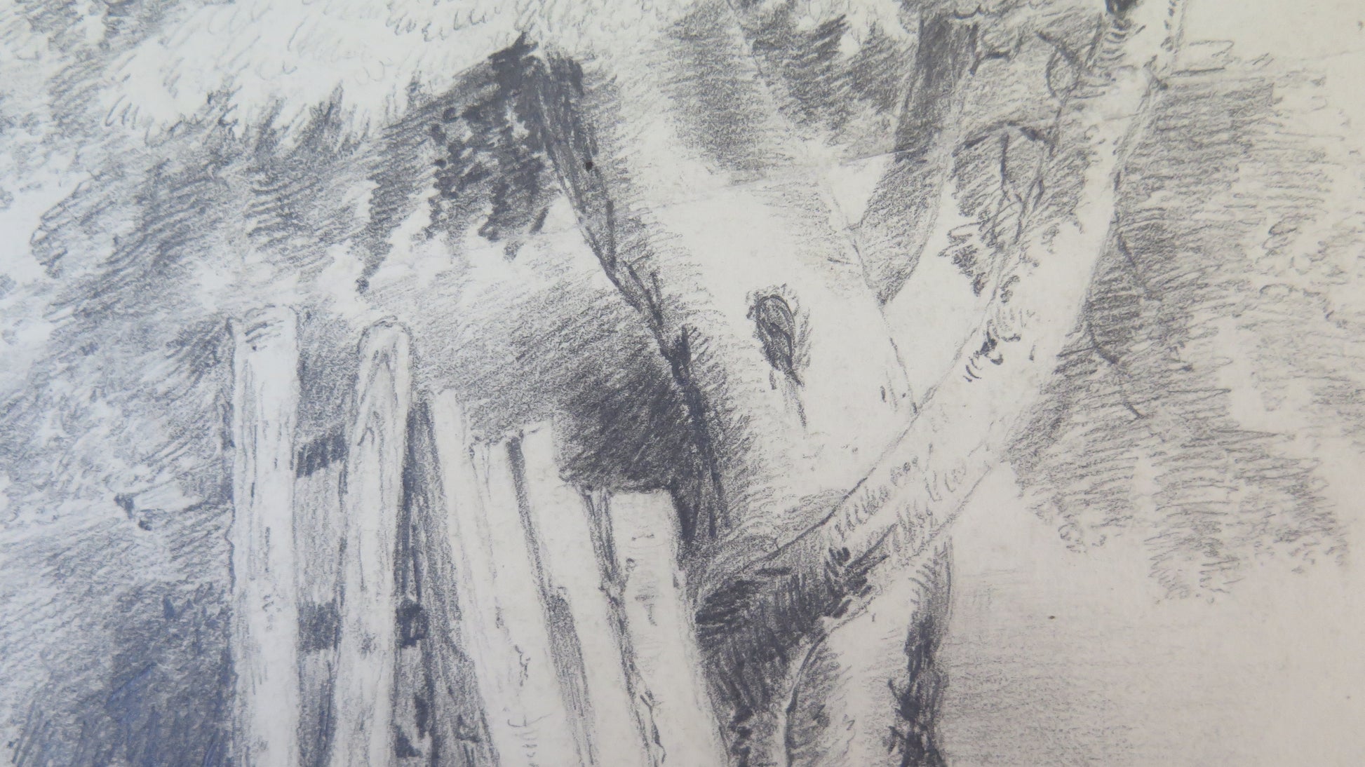DISEGNO ANTICO MATITA SU CARTA FIRMATO PAESAGGIO BOSCO FRANCIA PRIMO 900 BM53.5F