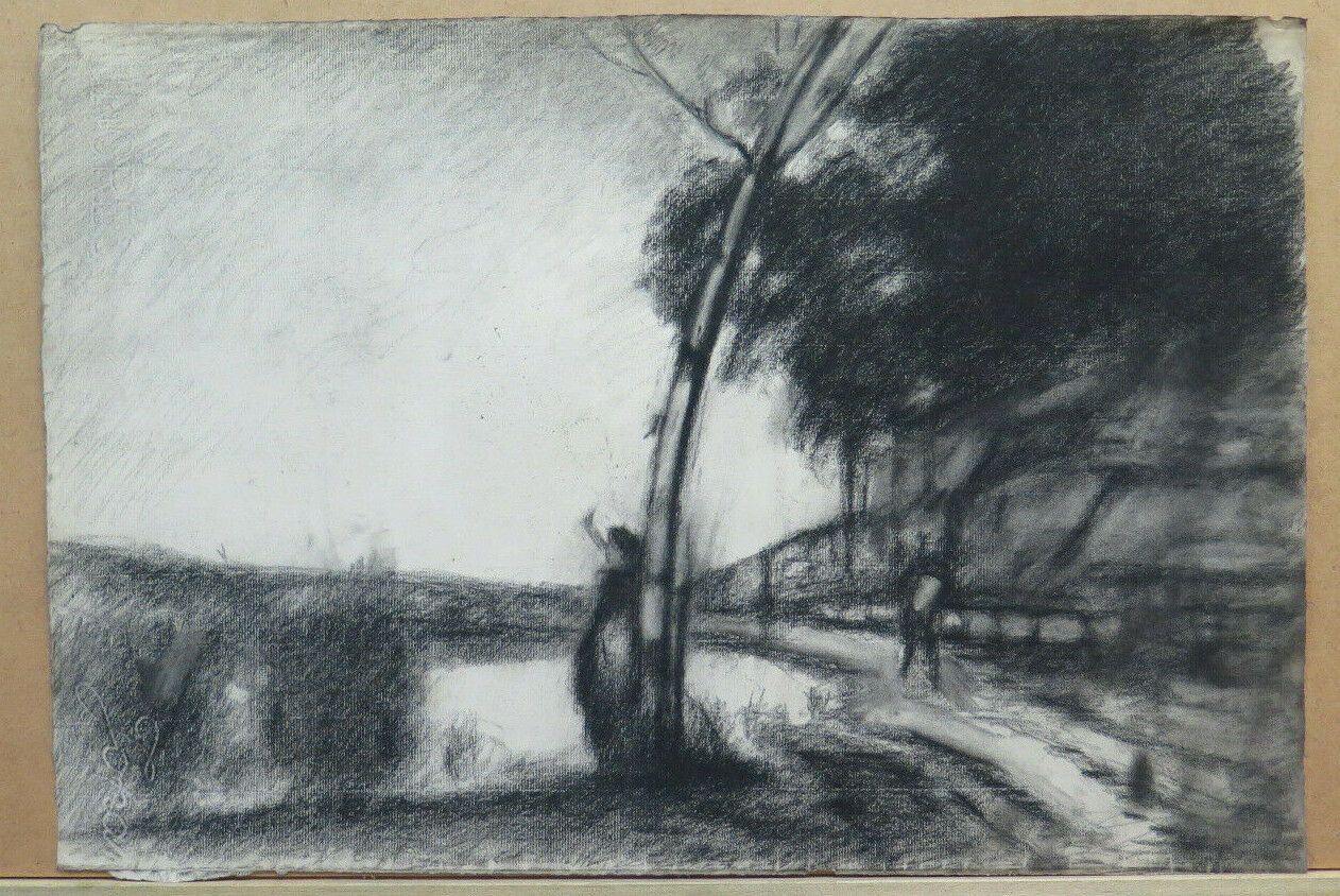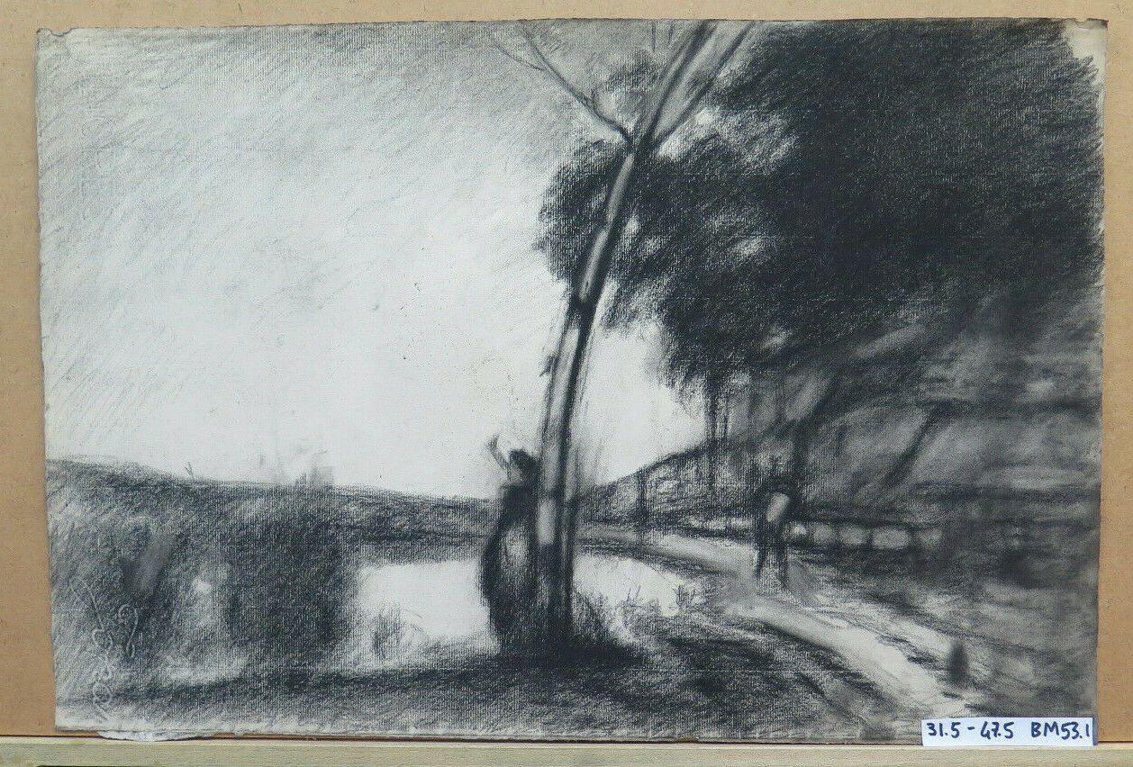 DISEGNO ANTICO PAESAGGIO CAMPAGNA PITTORE FRANCESE Pierre Duteurtre DUT BM53.1