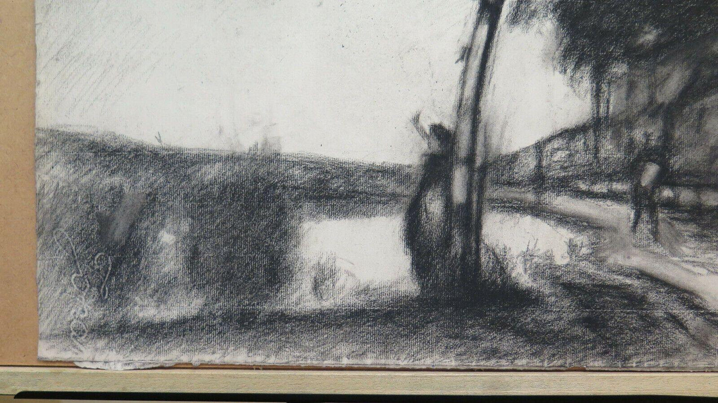 Medium and painting surface: charcoal on paper