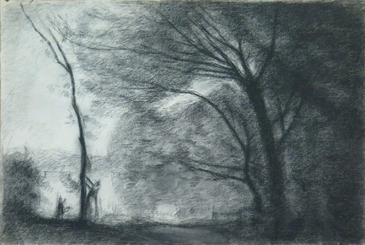Cupo paesaggio di campagna, probabilmente uno studio realizzato in età giovanile ispirato ad un dipinto antico.